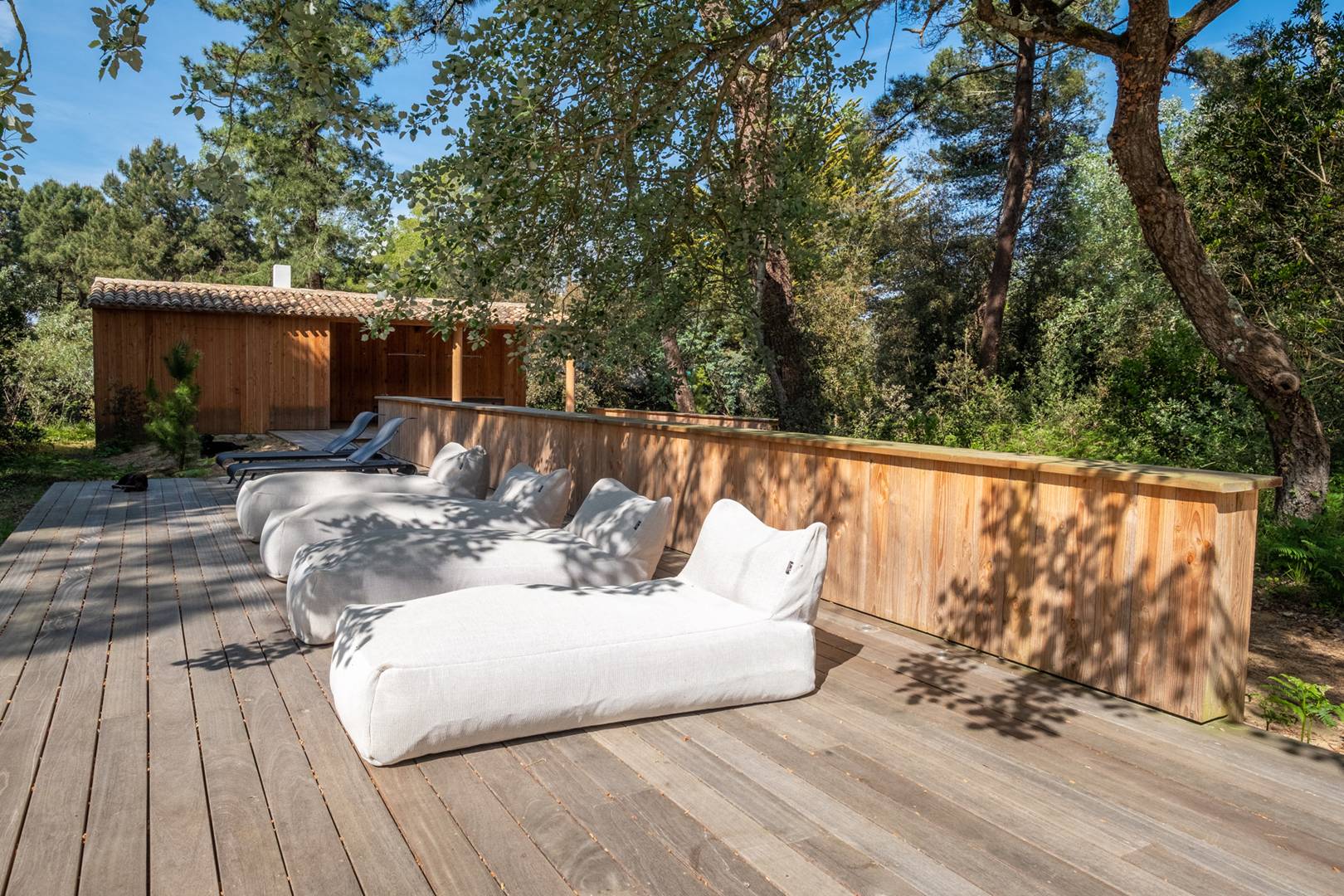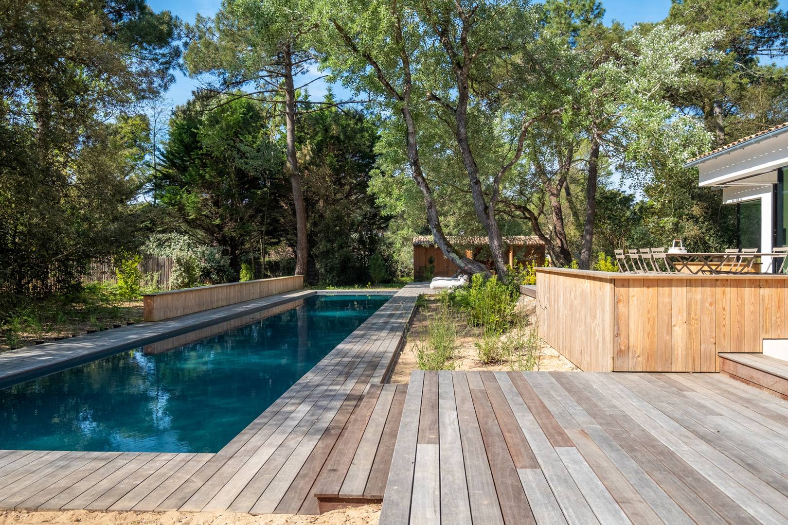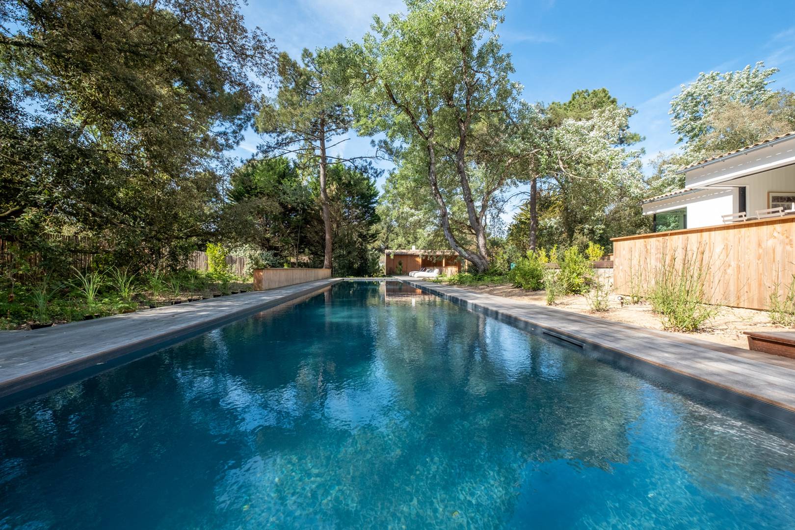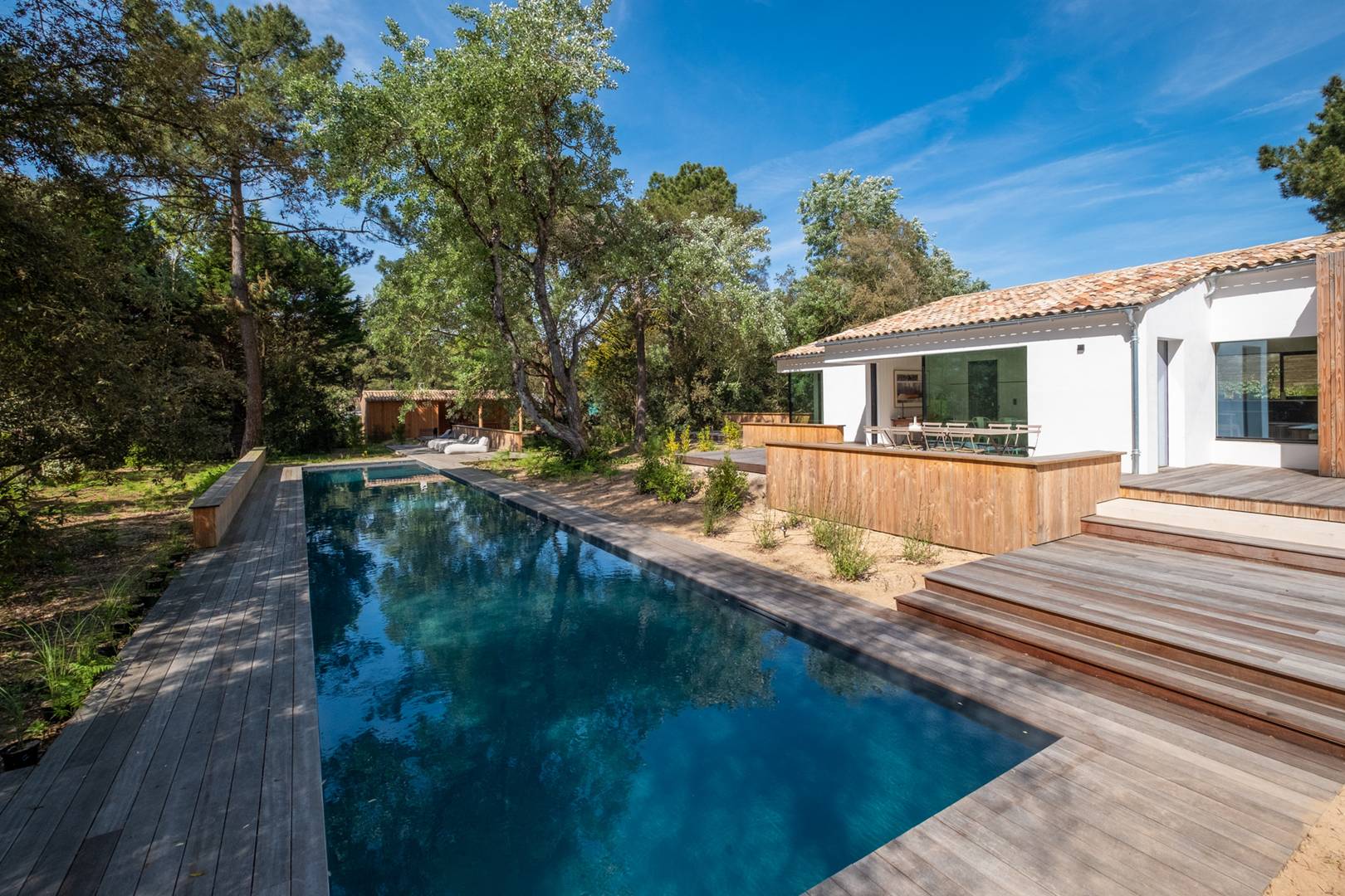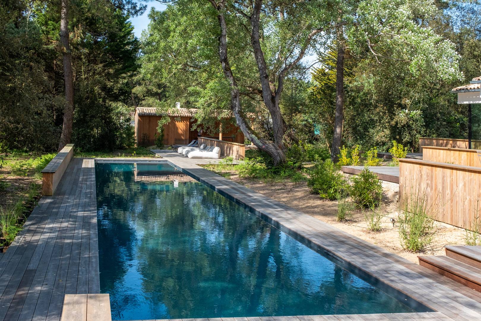 In a green setting close to the shops and the beach, this new family house of 450m2 on a plot of 4,600m2 is an architectural treasure. Designed by its owners and the architect Christophe Ducharme, it is a house with exceptional materials chosen within the framework of a refined and uncluttered decoration always for the greatest comfort of its guests. Organized around a 25-meter swimming pool, it will enchant its guests.