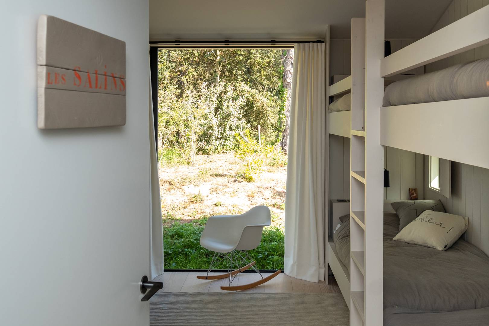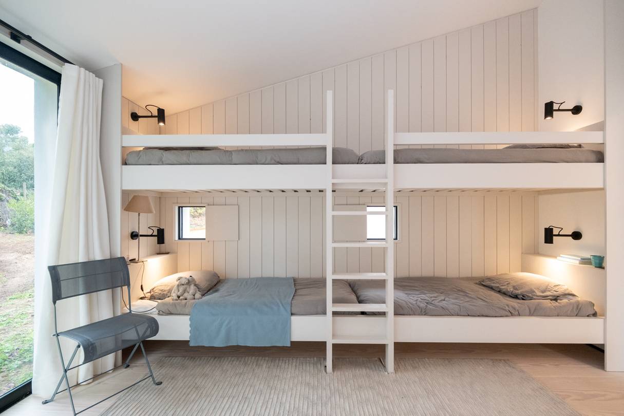 * Bedroom 3: Child dormitory with 4 single beds (2 bunk beds) with adjoining bathroom (shower and bath), separate WC