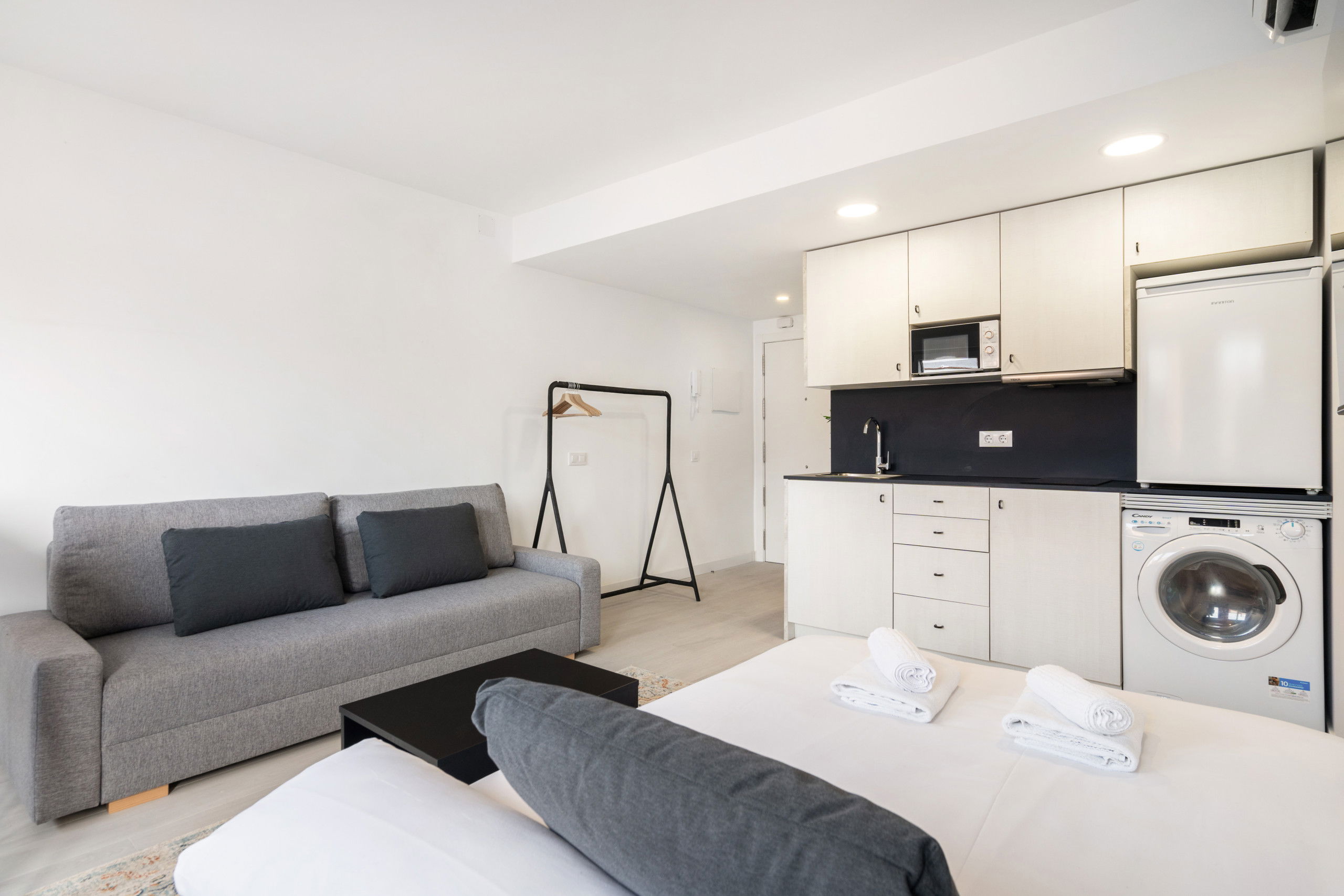 Welcome to our charming, fully renovated temporary rental studio, located next to the picturesque Madrid Río park and just a few steps from the Urgel metro station! If you're looking for comfort, modernity, and a parking space included, you've found the perfect place! This apartment is ideal for up to 4 people, offering a comfortable and convenient stay in an unbeatable location.