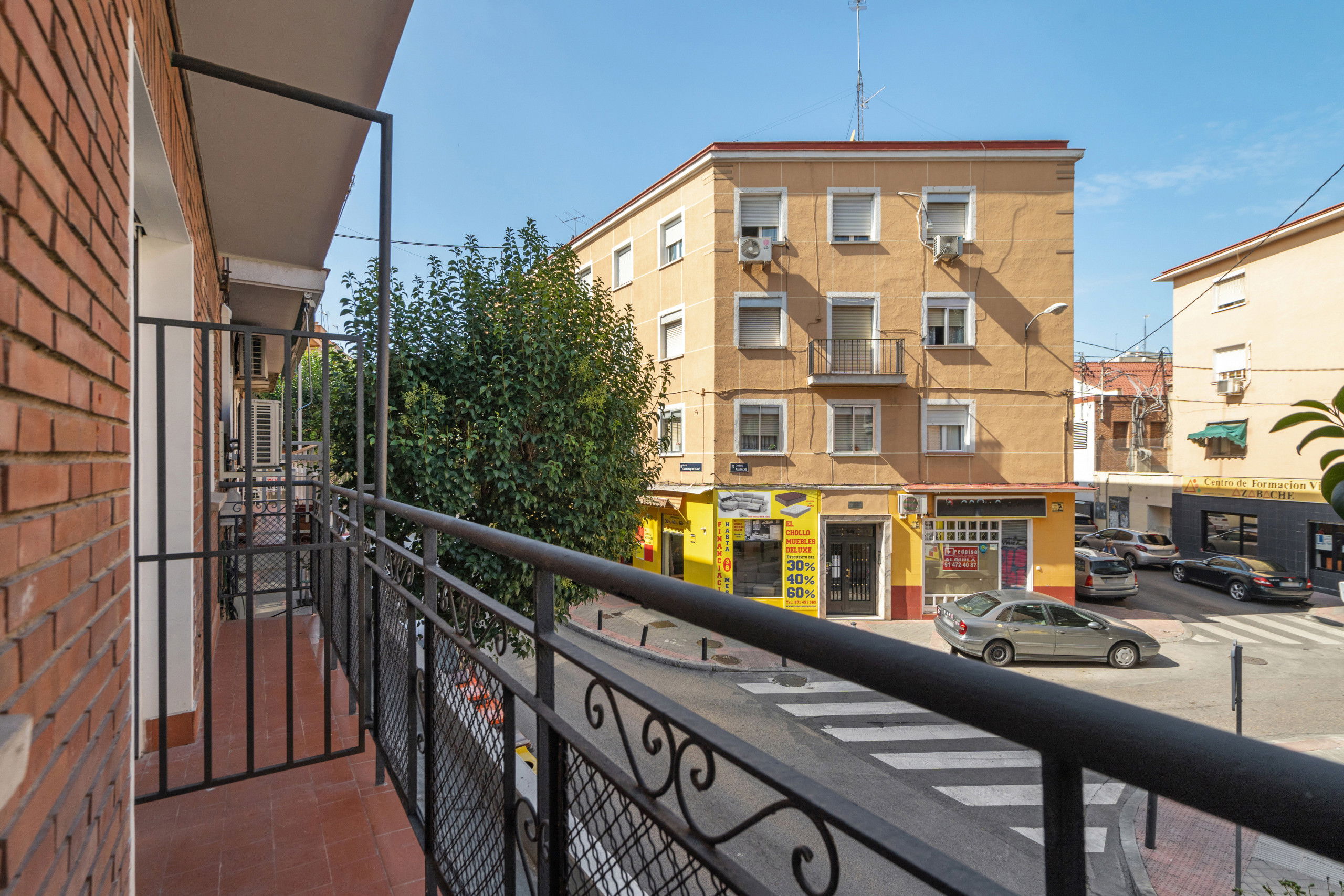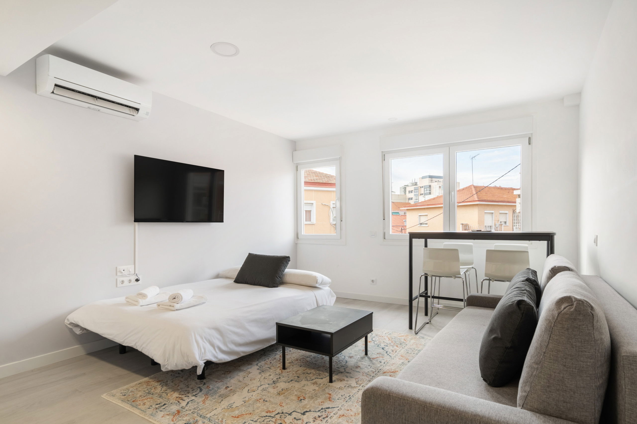 Bright living room: A cozy space where you can relax after a day of exploring Madrid.
