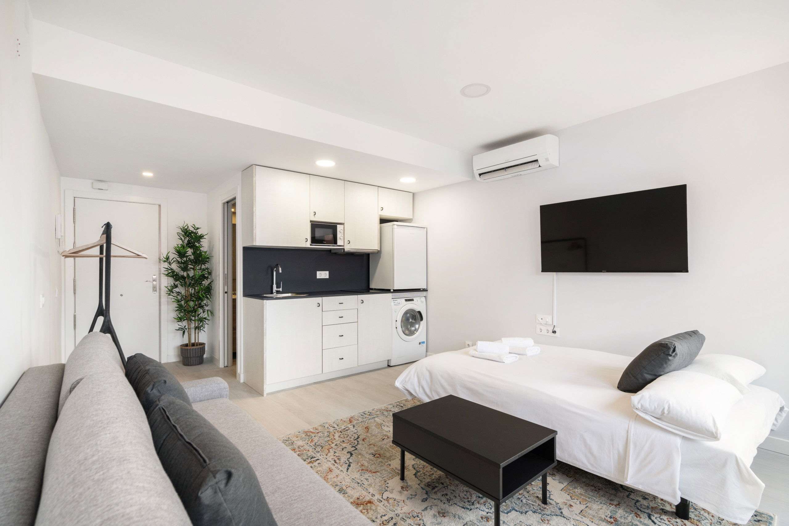 Welcome to our charming, fully renovated temporary rental studio, located next to the picturesque Madrid Río park and just a few steps from the Urgel metro station! If you're looking for comfort, modernity, and a parking space included, you've found the perfect place! This apartment is ideal for up to 4 people, offering a comfortable and convenient stay in an unbeatable location.