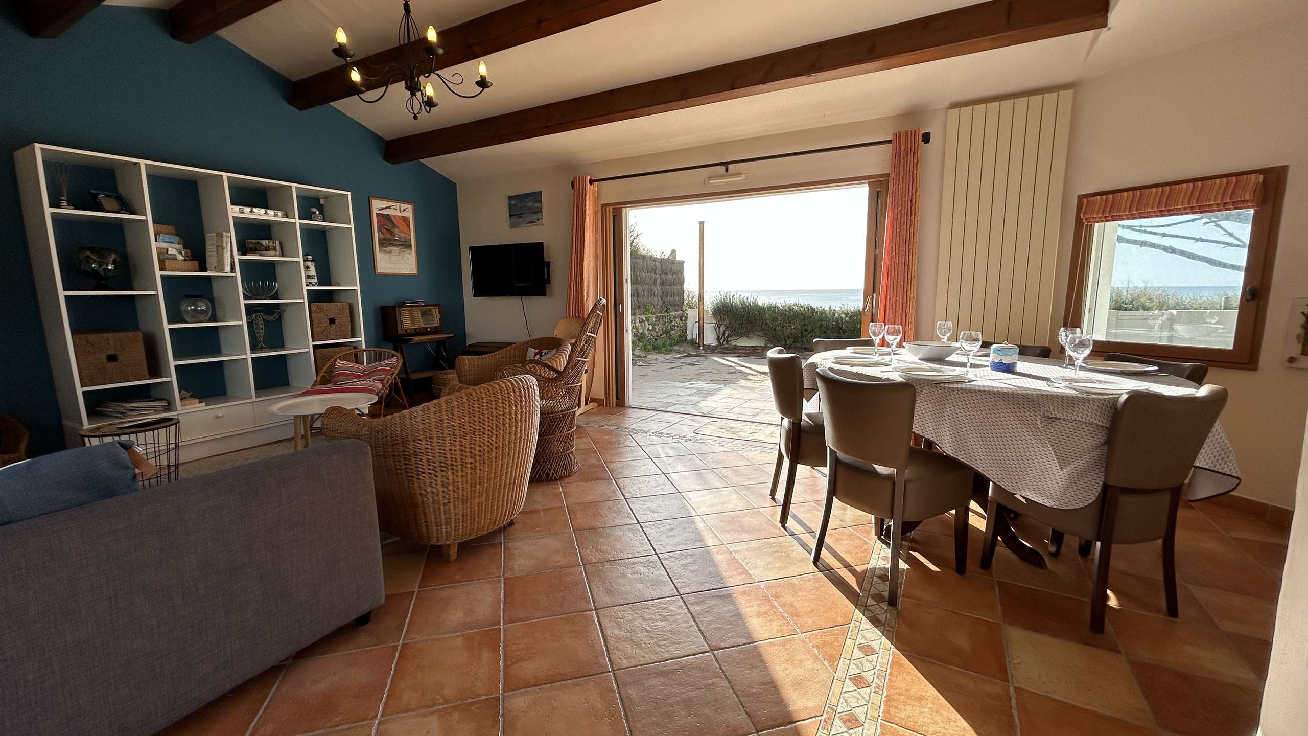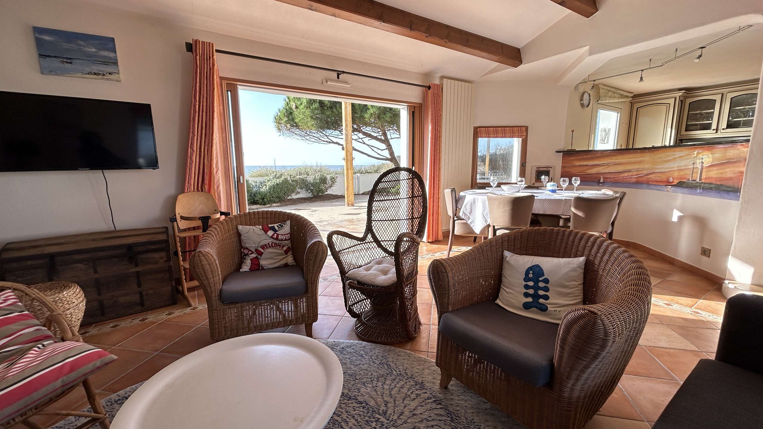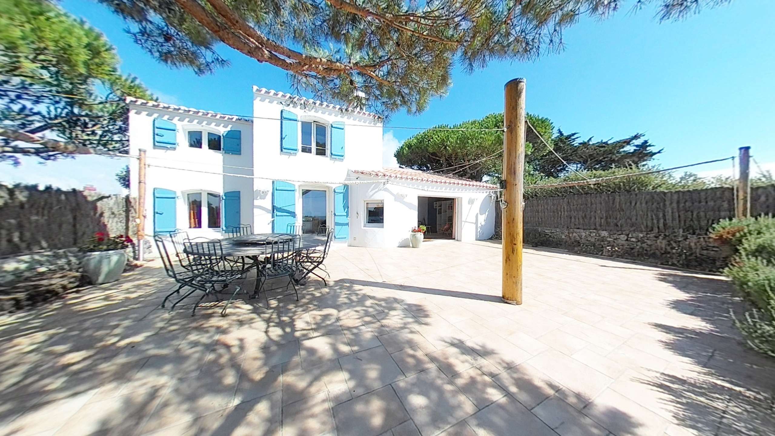 This house benefits from an exceptional location, beautiful terrace facing the sea with garden furniture and shade sails, outdoor shower. Courtyard side: large covered terrace with summer kitchen. Wifi available. Parking for two vehicles.