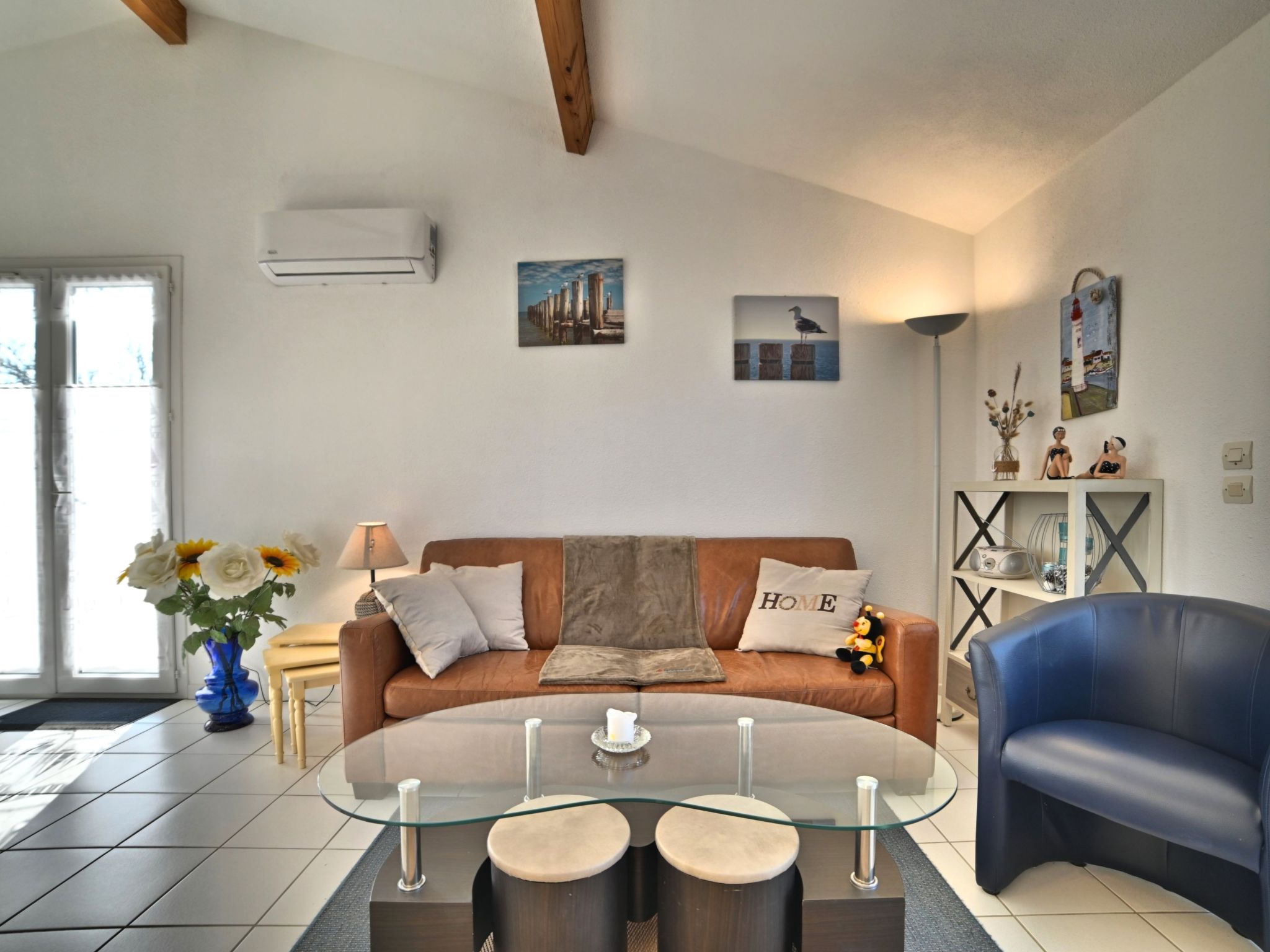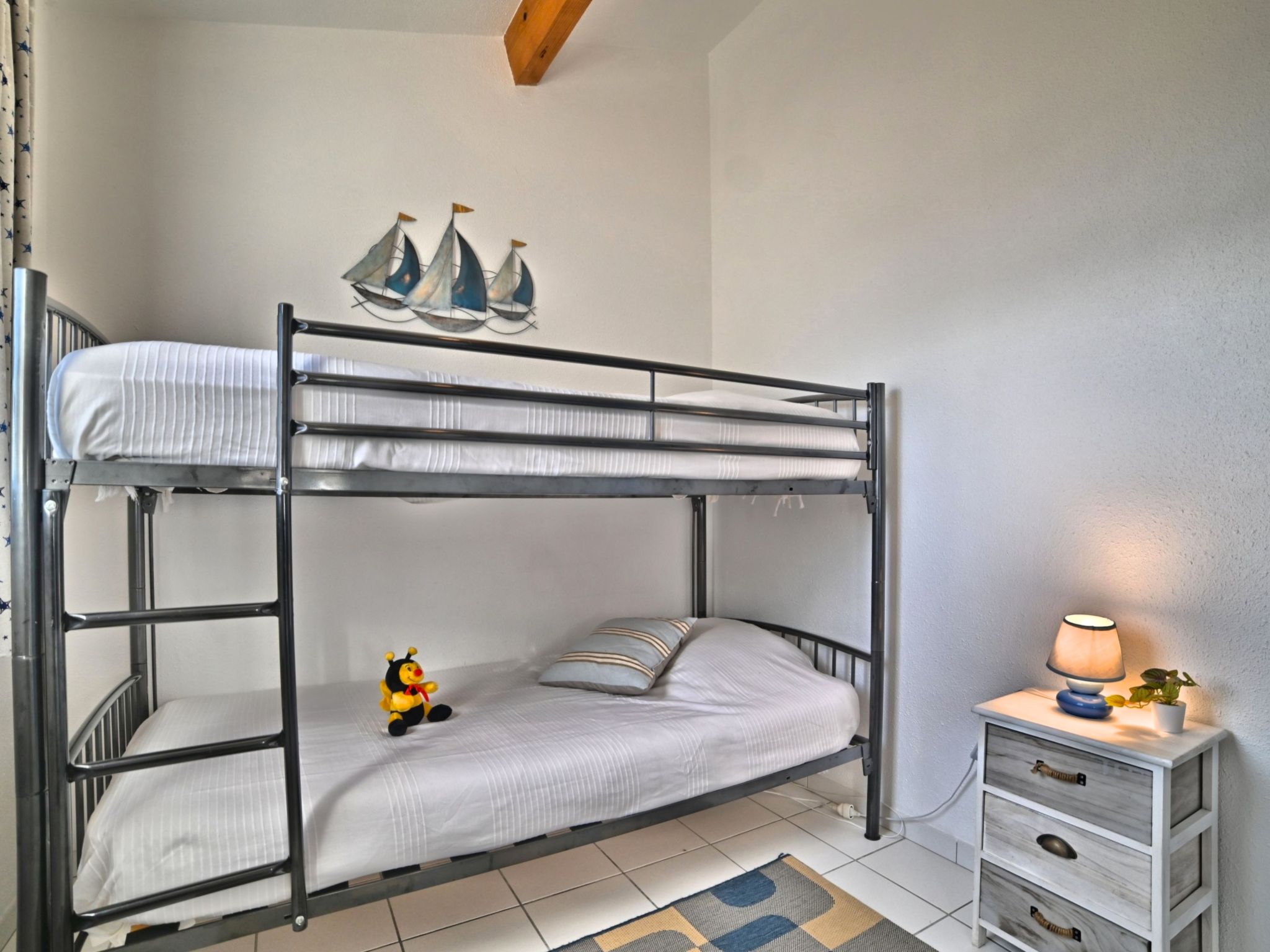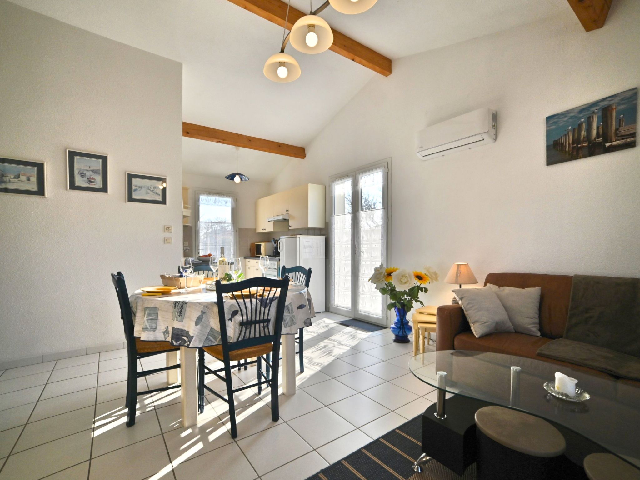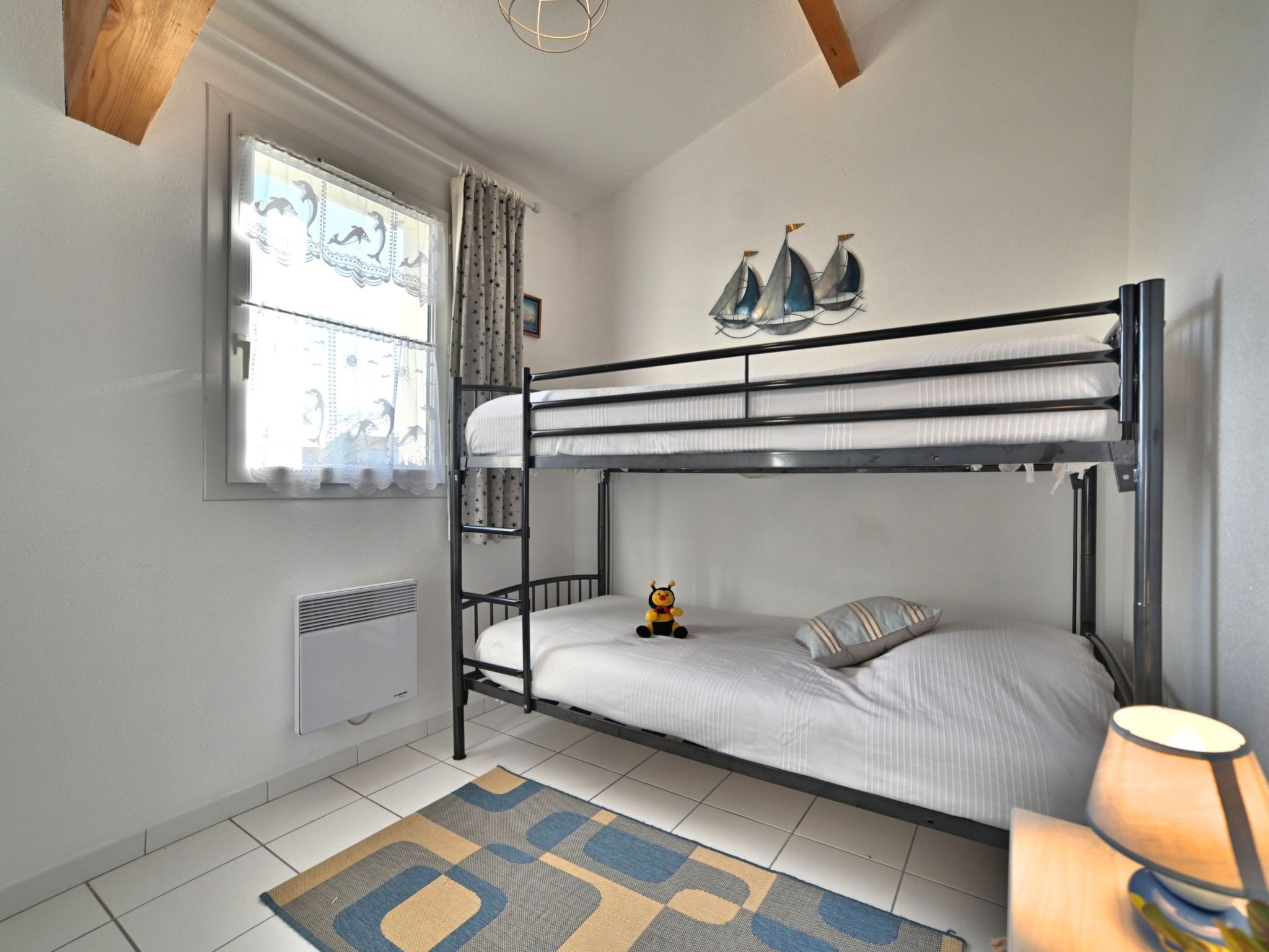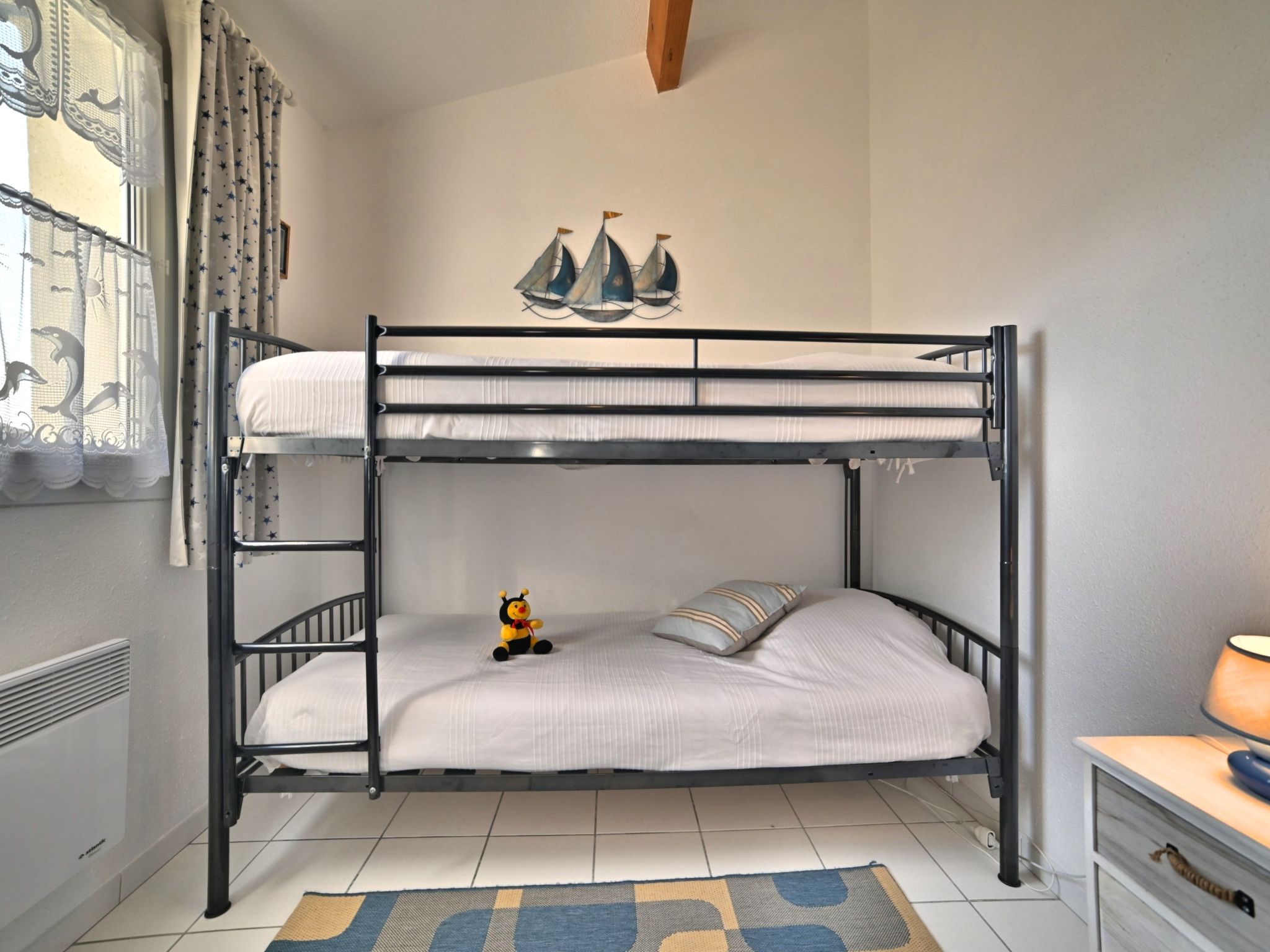 4-room house 90 m2. Comfortable and beautiful furnishings: living/dining room with TV (flat screen). Exit to the garden, to the terrace. 1 room with 1 french bed (1 x 140 cm, length 190 cm). 1 room with 1 french bed (1 x 140 cm, length 190 cm). 1 room with 1 x 2 bunk beds (90 cm, length 190 cm). Open kitchen (oven, dishwasher, 3 gas rings, toaster, kettle, microwave, electric coffee machine). Bathroom, sep. WC. Electric heating. Terrace 24 m2, east facing position and south facing position terrace 15 m2, west facing position and south-west facing position, large garden 500 m2. Terrace furniture, barbecue. Facilities: washing machine, hair dryer. Internet (WiFi, free). Please note: suitable for families. Non-smoking house. Smoke alarm. Offer by a private individual according to Art. 155, IV of CGI. FR1YVN3J
