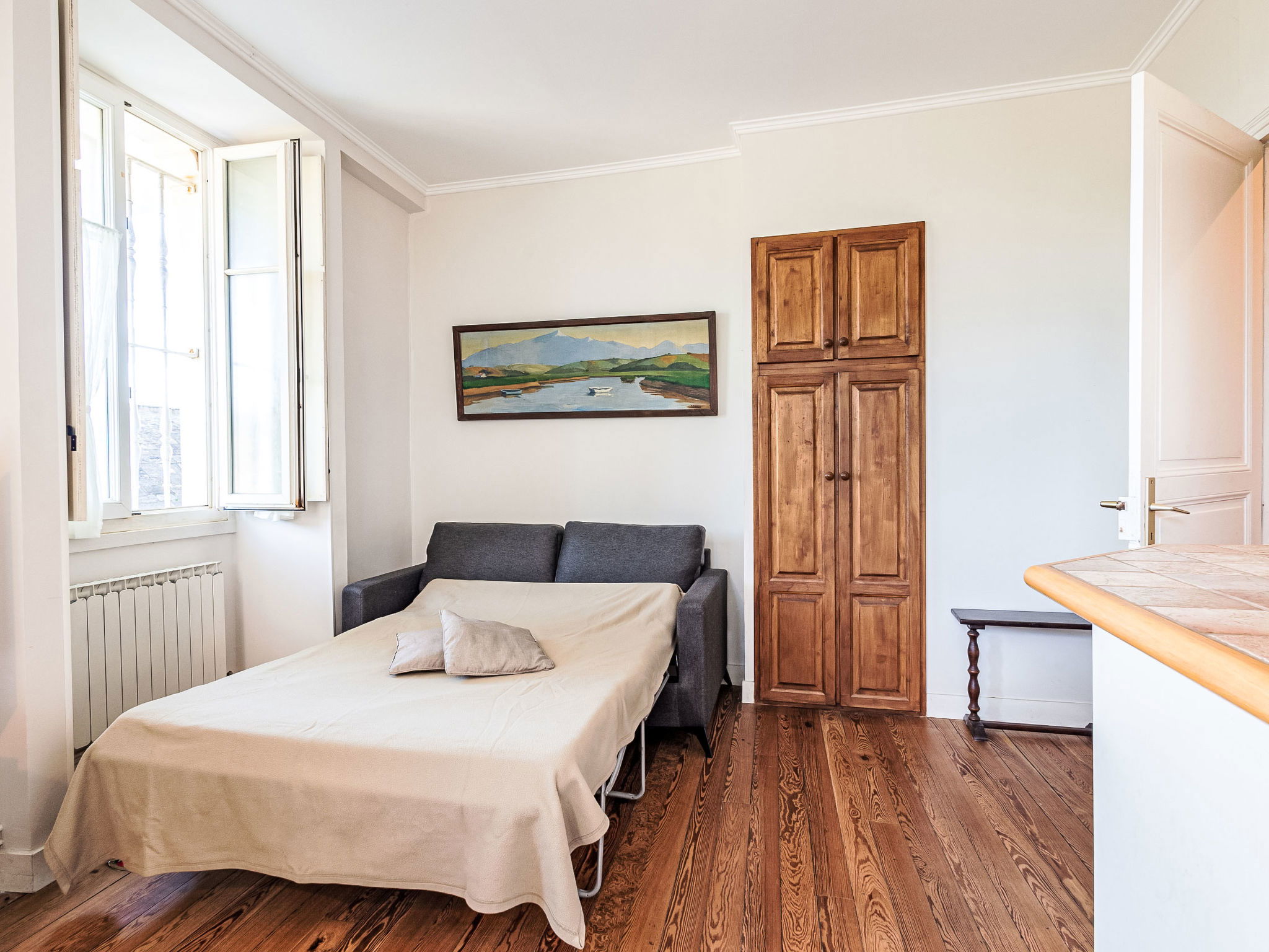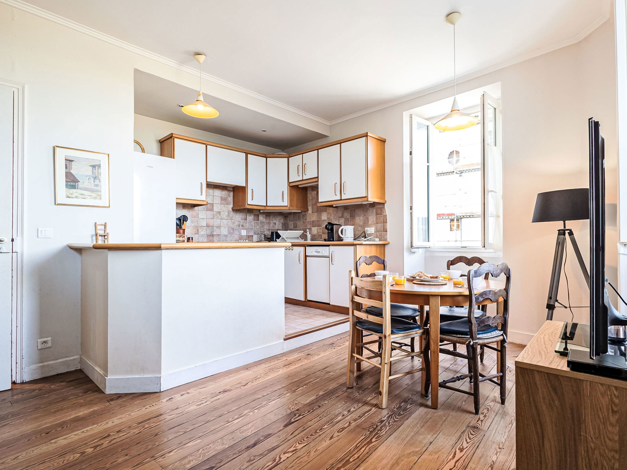 2-room apartment 45 m2, on the ground floor. Simple and comfortable furnishings: living/dining room with 1 double sofabed (140 cm, length 190 cm), TV (flat screen). 1 room with 2 beds (90 cm, length 190 cm). Open kitchen (oven, dishwasher, 3 induction hot plates, toaster, kettle, electric coffee machine, Capsules for coffee machine (Nespresso)). Shower/WC. Electric heating. Facilities: washing machine, iron, hair dryer. Internet (WiFi, free). Please note: 1 small pet/ dog allowed. Smoke alarm. Offer by a private individual according to Art. 155, IV of CGI. 6448300250700