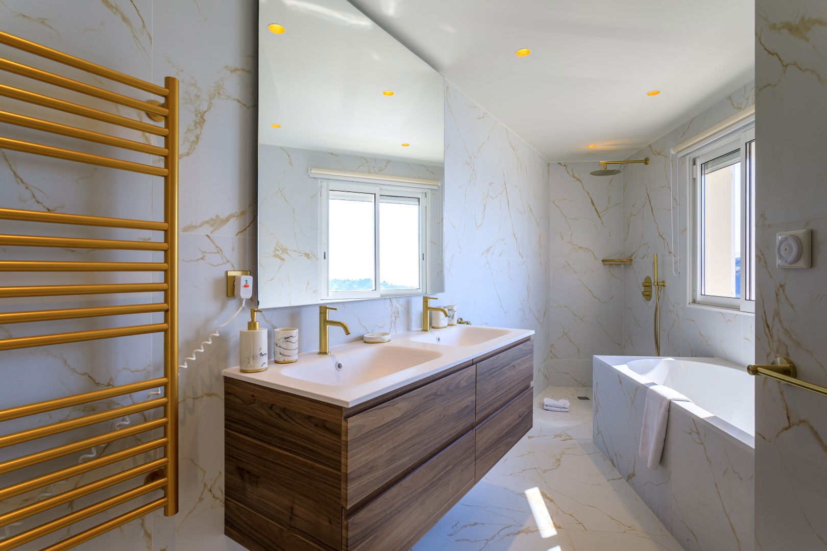 3 bathrooms, (including 2 with shower and WC, and 1 with bath, shower and WC) 1 separate WC