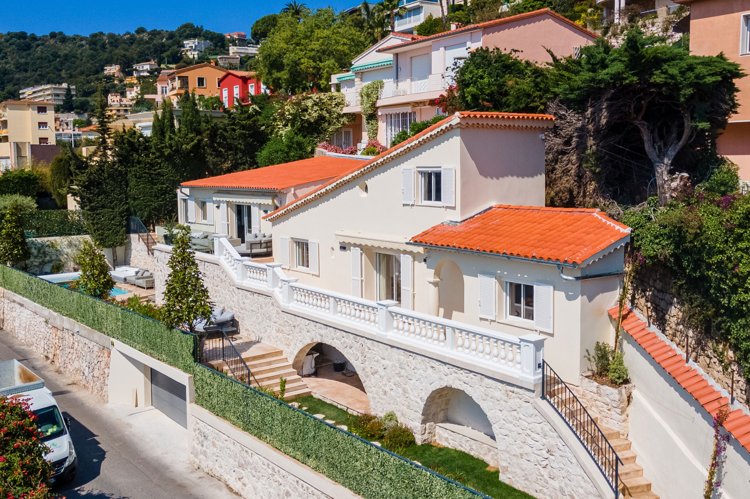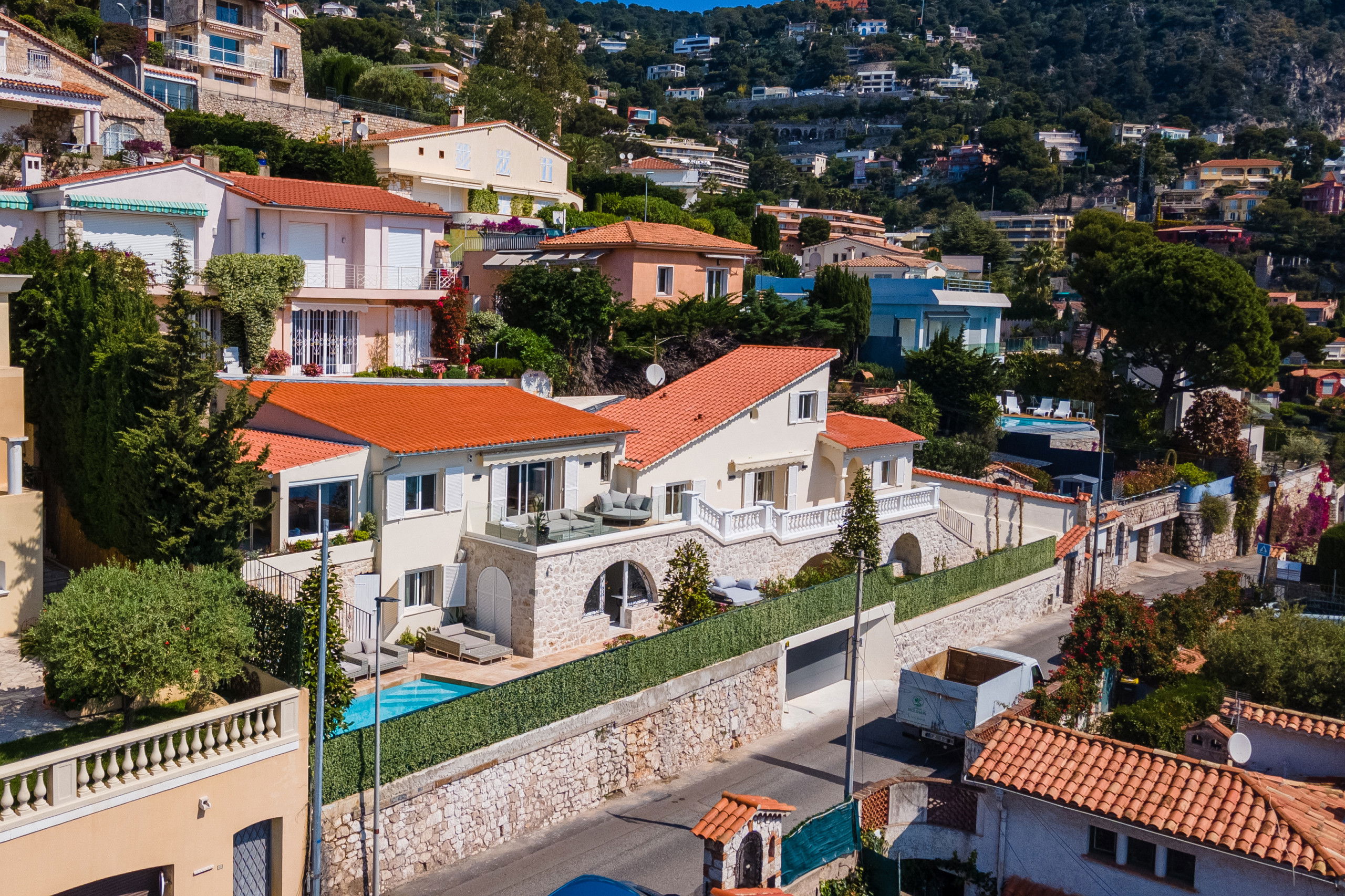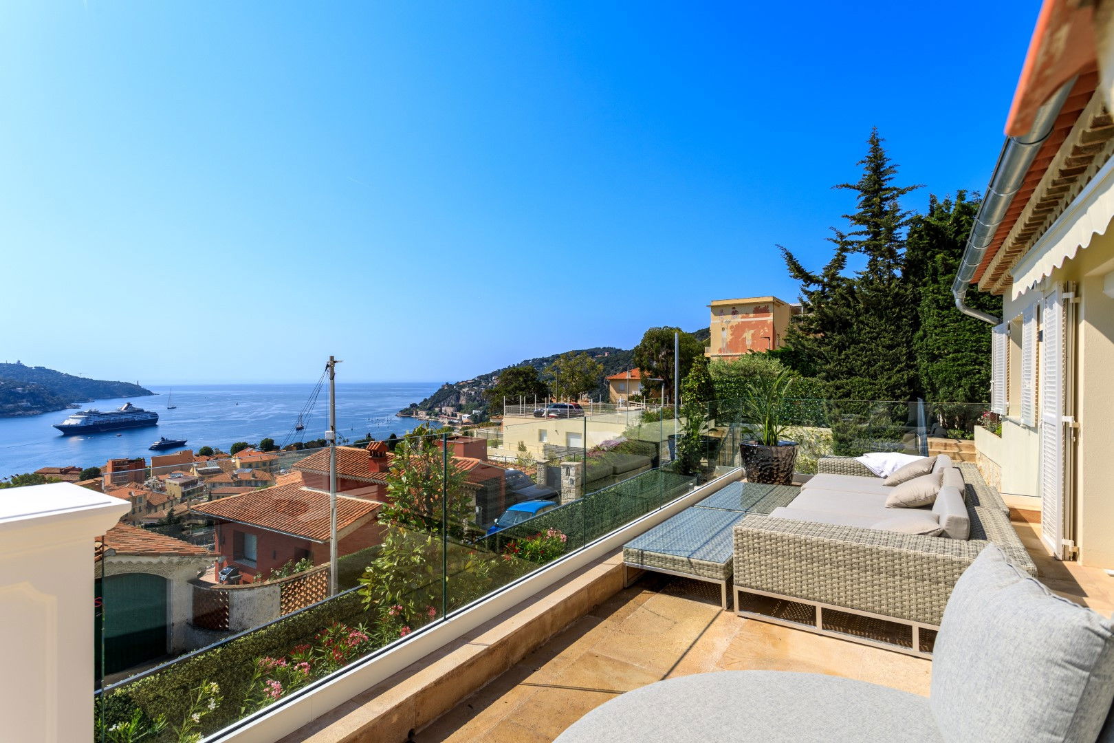 A premium vacation rental villa for those seeking a luxurious and unforgettable getaway. This superb villa is located in a privileged location, offering breathtaking panoramic views of the sparkling blue sea of the bay of Villefranche sur mer. The town center and beaches can be reached on foot in just a few minutes. For sports enthusiasts, a tennis court is located just a few meters from the villa.