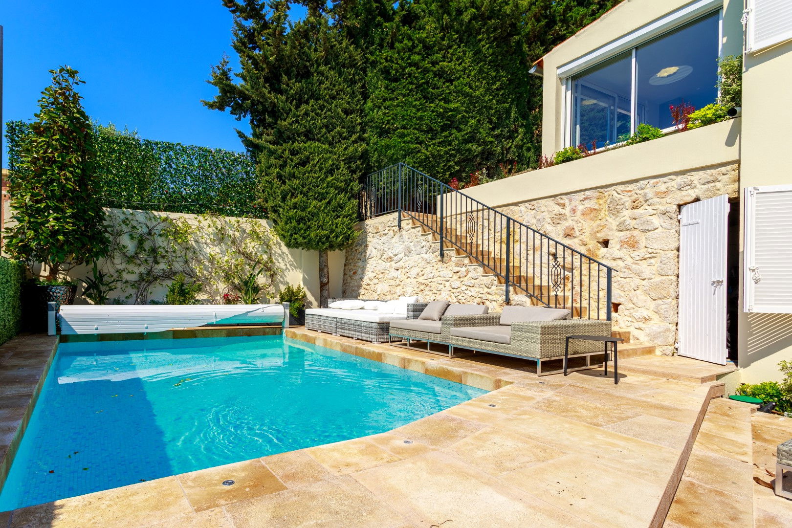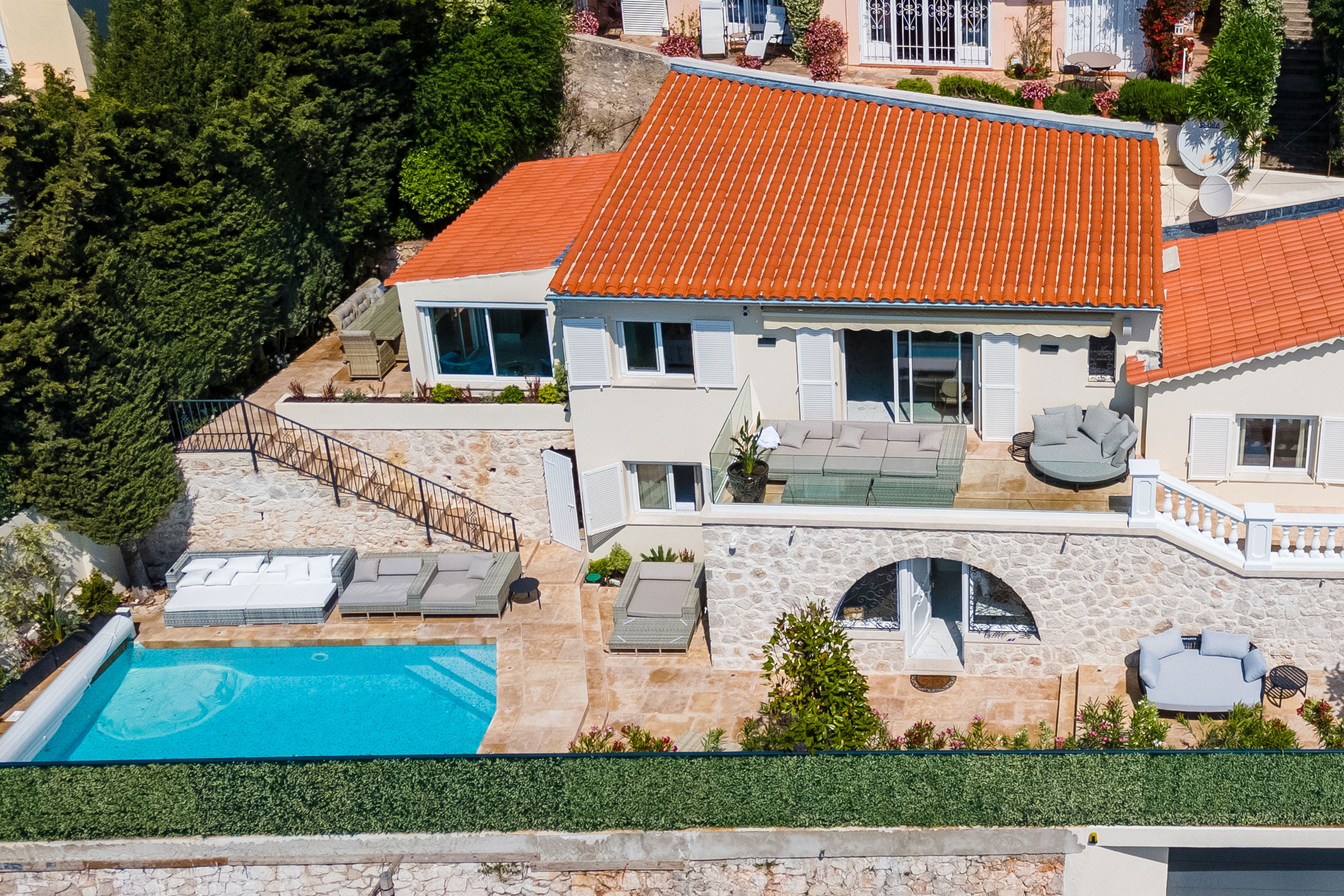 The villa was completely renovated in 2023 and has been designed with sophistication and elegance in mind. The villa has spacious rooms, modern and stylish furniture and state-of-the-art amenities.