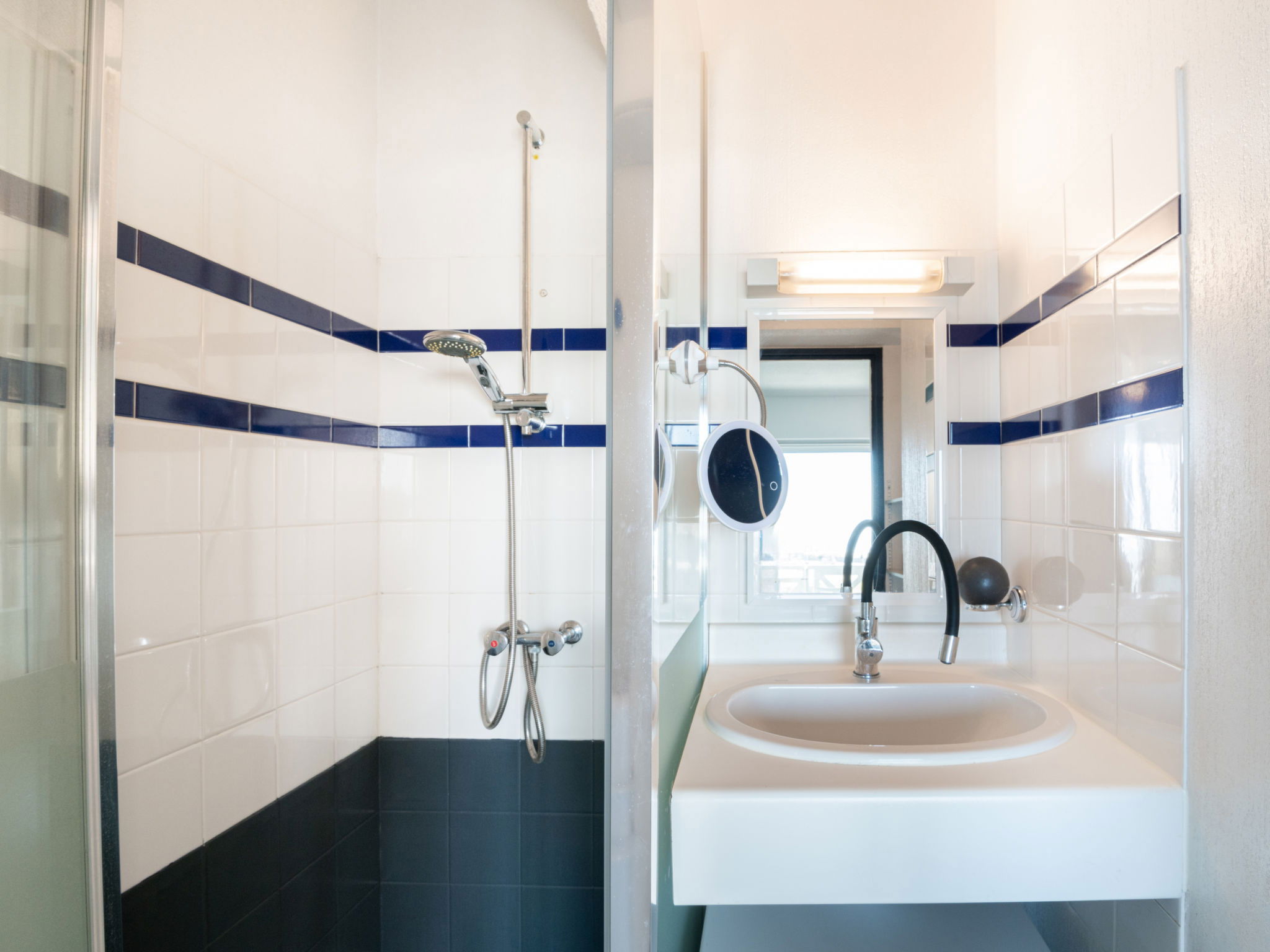 "Mon oxygène", 2-room apartment 28 m2 on 1st floor, south-west facing position. Beautiful and modern furnishings: living room with 1 sofabed (1 x 120 cm, length 190 cm), TV and flat screen. Exit to the balcony. 1 small room with 1 french bed (1 x 140 cm, length 190 cm), TV (flat screen). Kitchenette (mini-oven, dishwasher, 1 induction hot plates, 2 gas rings, toaster, kettle, microwave, electric coffee machine, Capsules for coffee machine (tassimo) extra). Shower/WC. Electric heating. Balcony 6 m2, south facing position and west facing position. Balcony furniture, electric barbecue. Beautiful view of the sea. Facilities: washing machine. Internet (WiFi, extra). Reserved parking space n 101A. Please note: non-smokers only. Smoke alarm. Offer by a private individual according to Art. 155, IV of CGI.