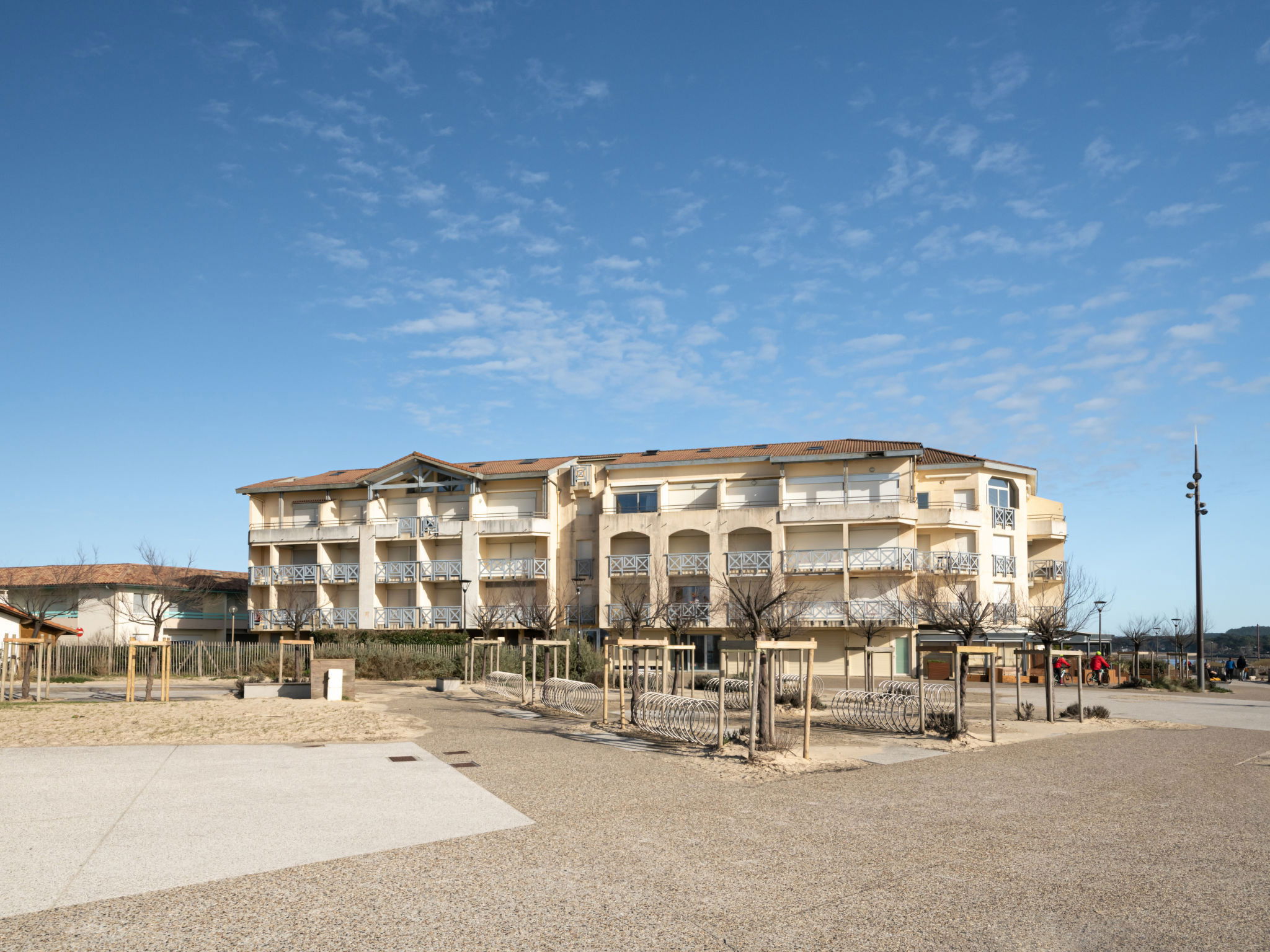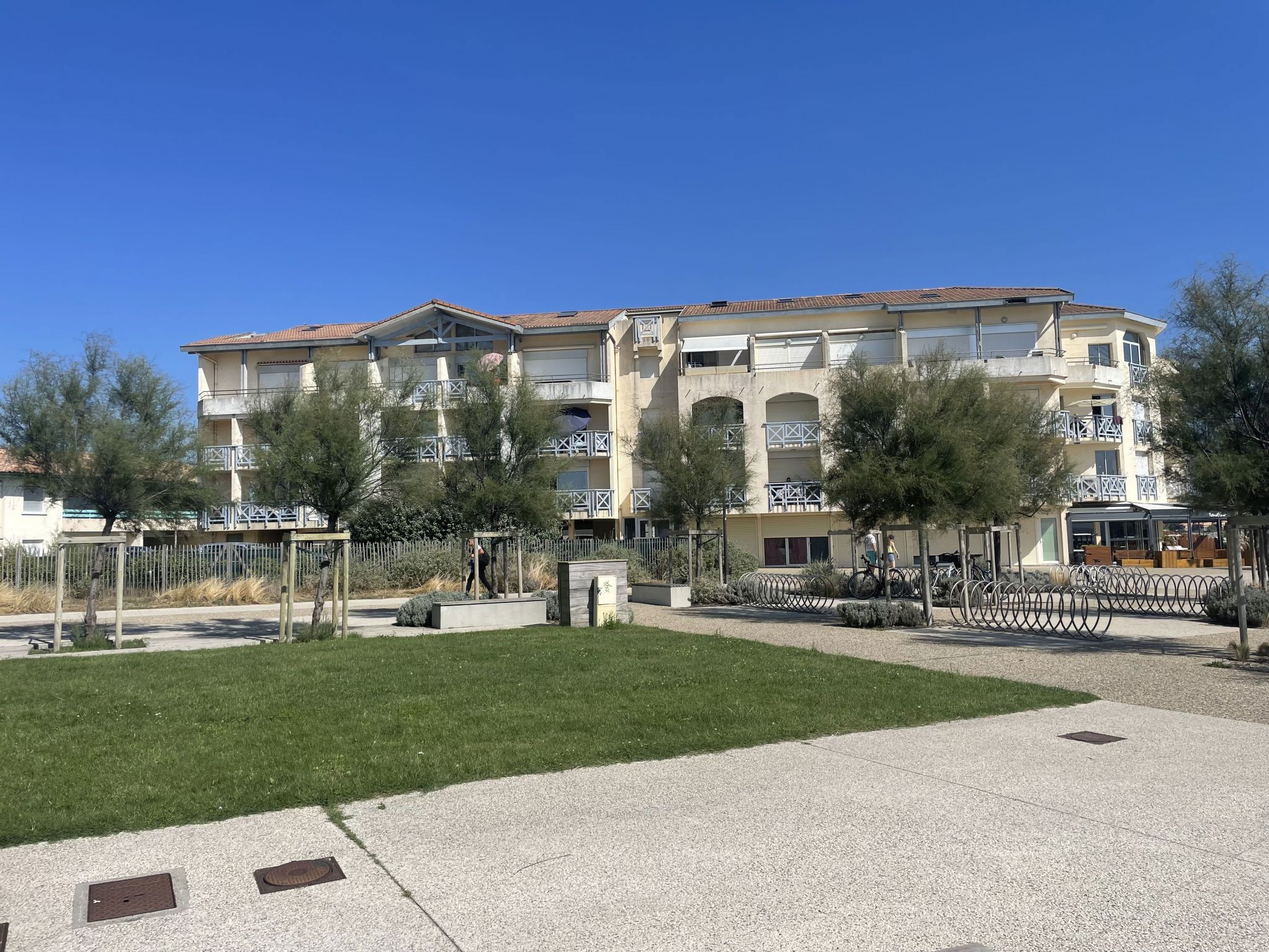 Mimizan-Plage: Residence "Grand Pavois", 3 storeys, built in 1987. In the resort 100 m from the centre of Mimizan Plage, in a central, busy position, 100 m from the sea, 10 km from the lake, 100 m from the beach, 30 m from the river. In the complex: lift. Shop 100 m, grocery 150 m, supermarket 600 m, restaurant 10 m, bar 100 m, bakery 150 m, bicycle rental 300 m, railway station "Labouheyre" 30 km, sandy beach "la garluche" 150 m, park "Landes Aventure" 6 km, indoor swimming pool 6 km, bathing lake "Aureilhan" 10 km. Golf course (9 hole) 6 km, surf school 350 m, riding stable 10 km. Nearby attractions: Bordeaux 120 km, Arcachon 70 km, Biscarrosse 40 km, Centre Nautique 7 km, Casino Mimizan Plage. Hiking paths: Parc naturel régional des Landes.