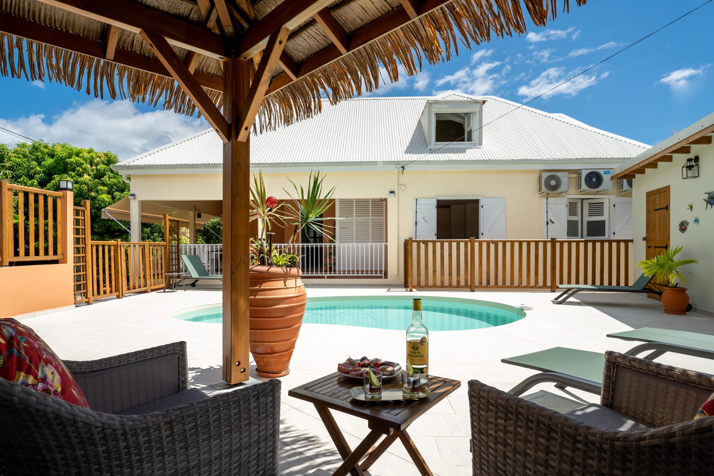 This 250m2 villa, which combines a typical Creole style with a loft feel, invites you into a warm and welcoming living space for your tropical vacations.