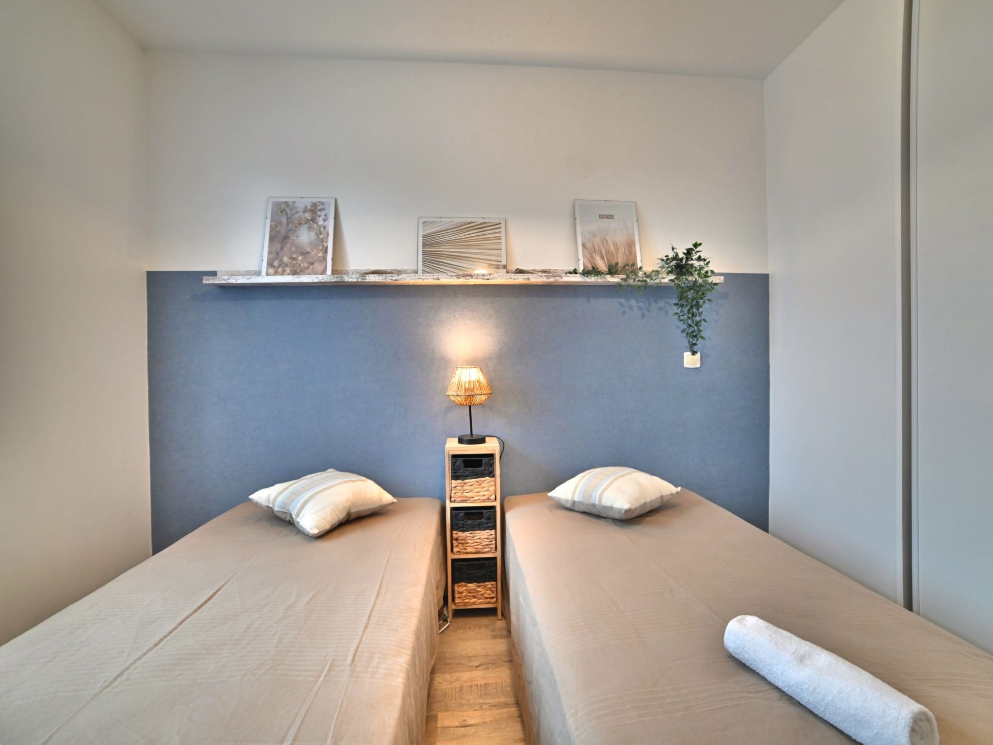 3-room house 90 m2. Bright, beautiful furnishings: living/dining room with panoramic window with TV (flat screen). Exit to the garden, to the terrace. 1 room with 2 beds (90 cm, length 190 cm). 1 room with 1 french bed (160 cm, length 200 cm). Open kitchen (oven, dishwasher, 4 ceramic glass hob hotplates, toaster, kettle, microwave, electric coffee machine). Exit to the garden, to the terrace. Bathroom, sep. WC. Electric heating. Small terrace 12 m2, east facing position, small garden 34 m2. Terrace furniture, barbecue, deck chairs. Facilities: washing machine, hair dryer. Internet (WiFi, free). Parking at the house. Please note: suitable for families. Non-smokers only. Smoke alarm. Offer by a private individual according to Art. 155, IV of CGI. 1714000005292