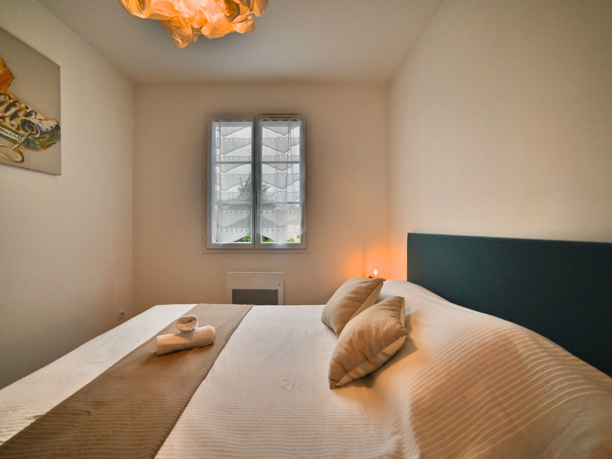 4-room terraced house 90 m2. Beautiful furnishings: living/dining room with TV (flat screen). Exit to the terrace. 1 room with 1 french bed (1 x 160 cm, length 200 cm). 1 room with 1 french bed (1 x 160 cm, length 200 cm). 1 room with 1 french bed (1 x 160 cm, length 200 cm). Open kitchen (oven, dishwasher, 4 induction hot plates, toaster, kettle, microwave, electric coffee machine). Shower, sep. WC. Electric heating. Small terrace, south facing position, small garden. Terrace furniture, barbecue, deck chairs. Facilities: washing machine, hair dryer. Internet (WiFi, free). Parking (1 car) at the house. Suitable for families. Offer by a private individual according to Art. 155, IV of CGI. 171400005922D