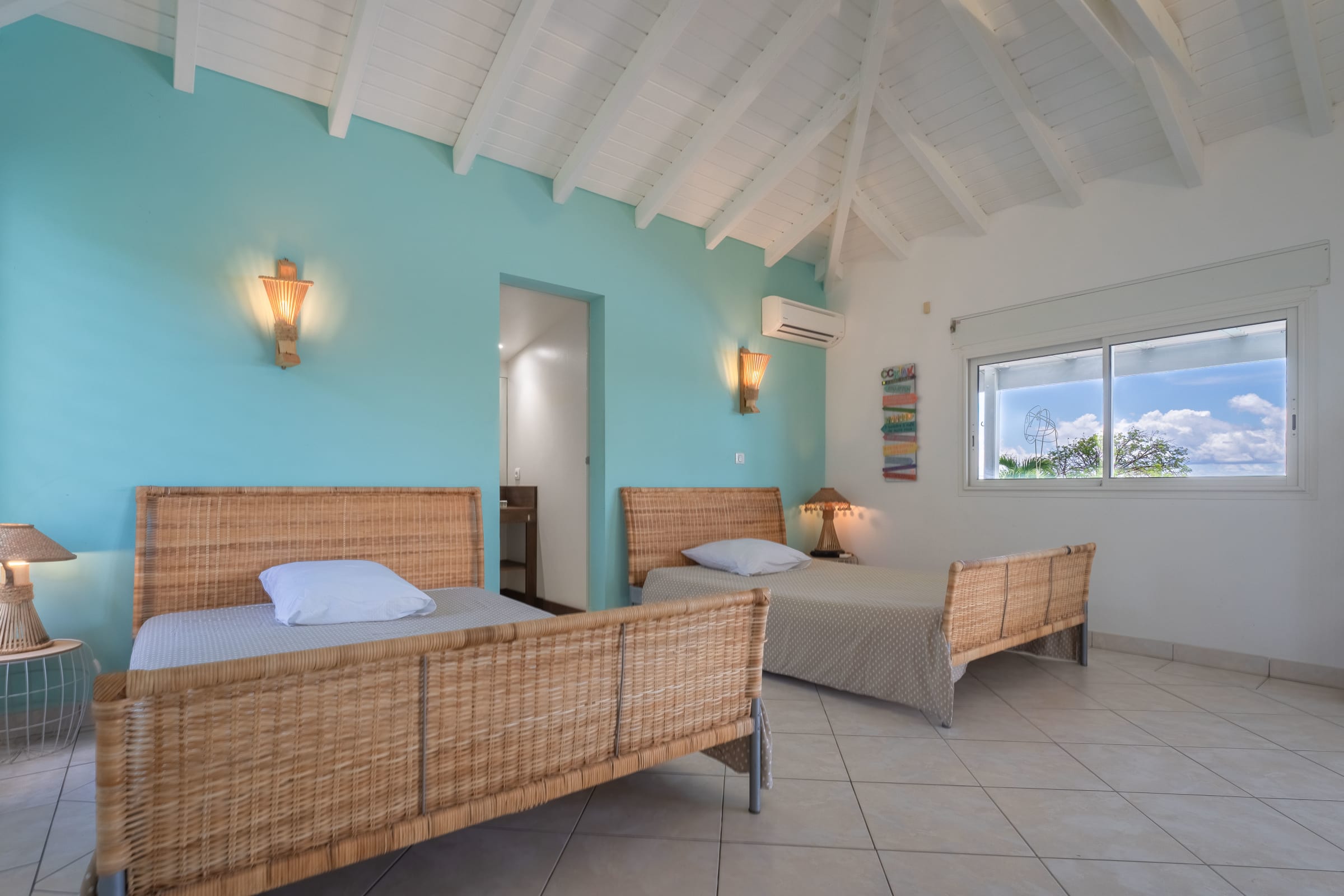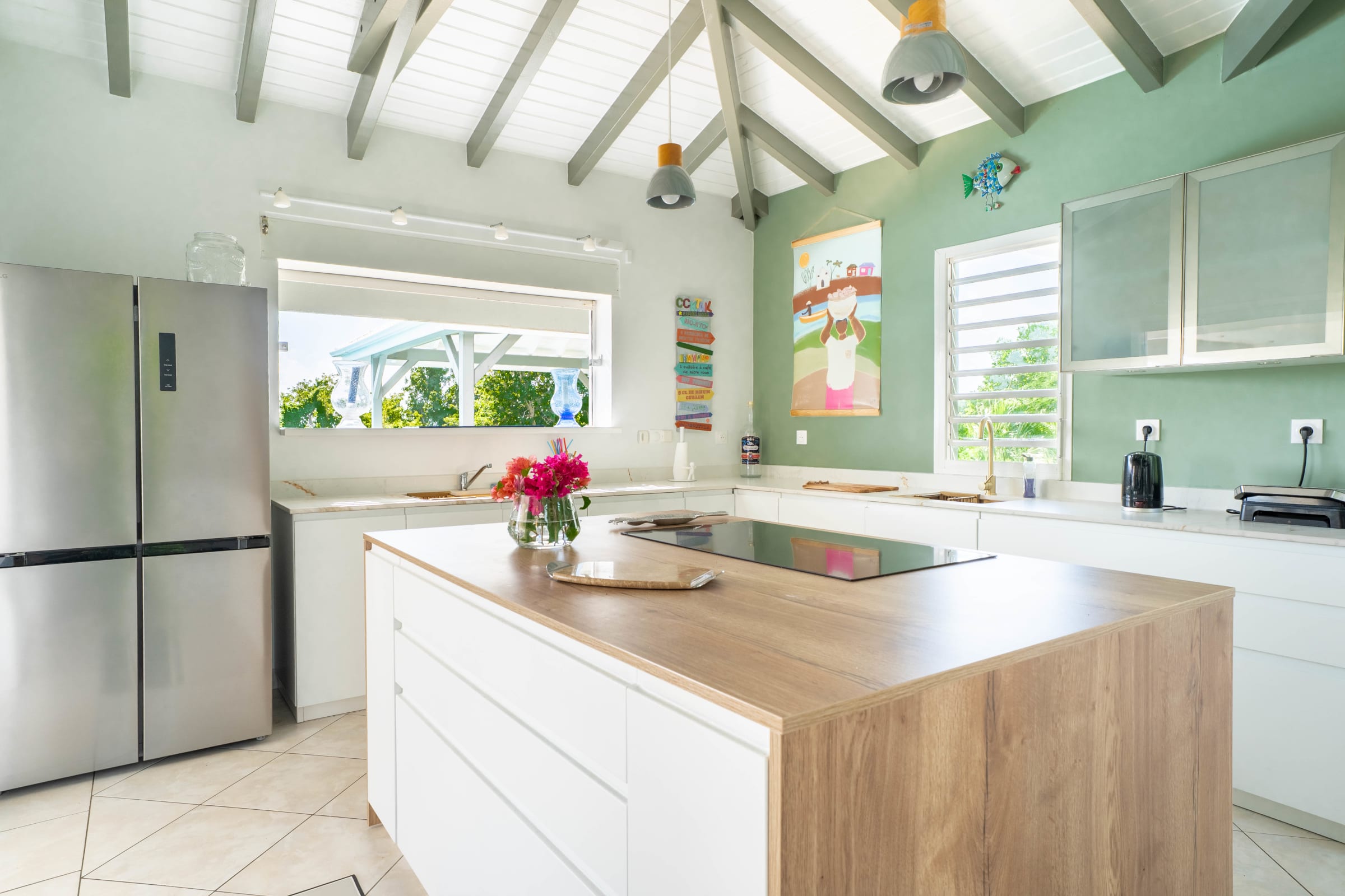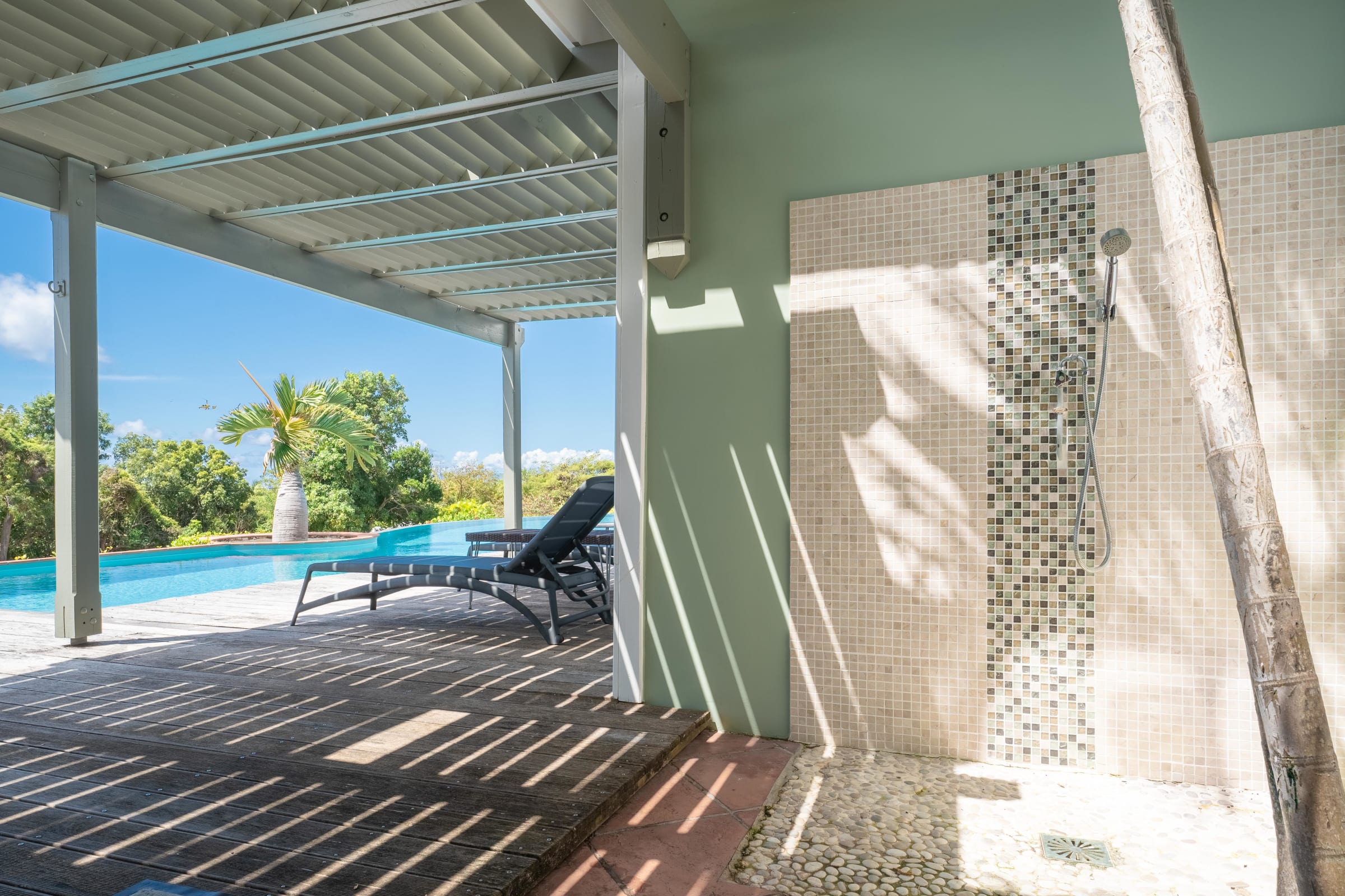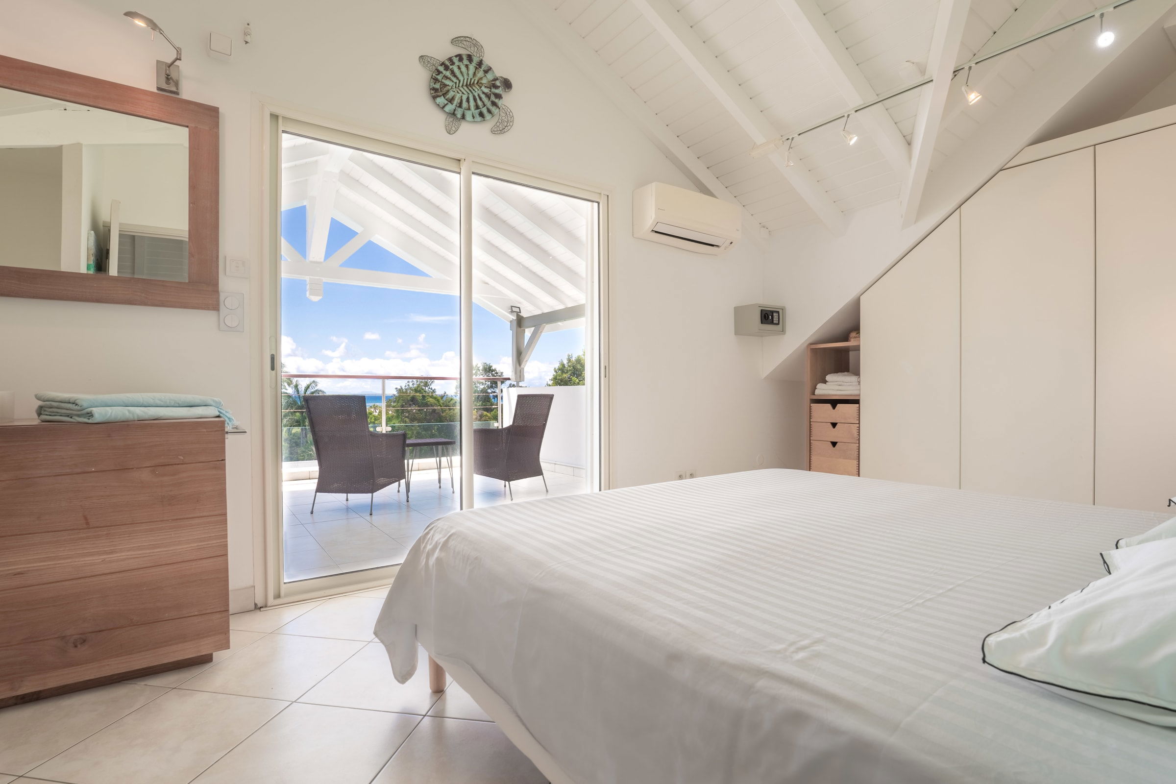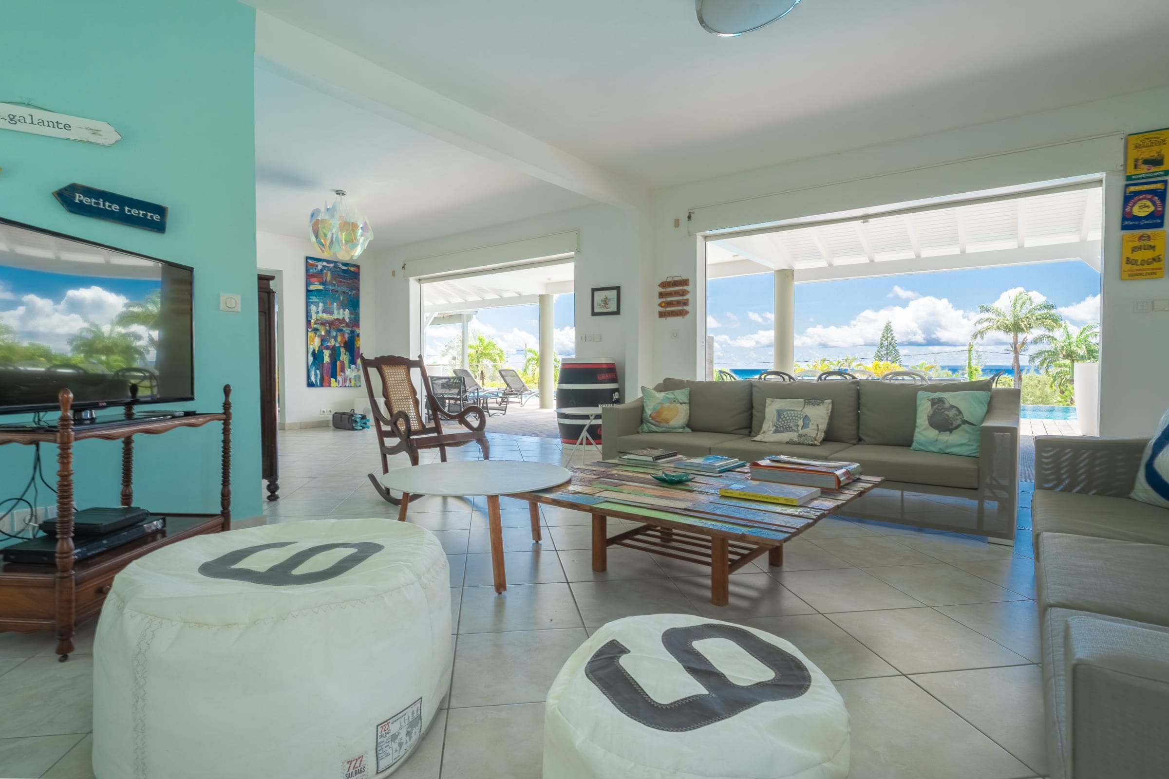 Villa Karukera welcomes you to a modern, spacious setting, ideal for large families or groups of friends. With 5 air-conditioned bedrooms, each with en-suite bathroom, you'll enjoy absolute comfort and the privacy you need for a relaxing vacation. The spacious living room opens onto the infinity pool, providing the ideal space for relaxation, while the pool table and darts add a playful touch to your stay. The fully-equipped kitchen and outdoor terrace with barbecue let you make the most of outdoor living, with breathtaking sea views. A very large garden is ideal for children to play in complete safety.