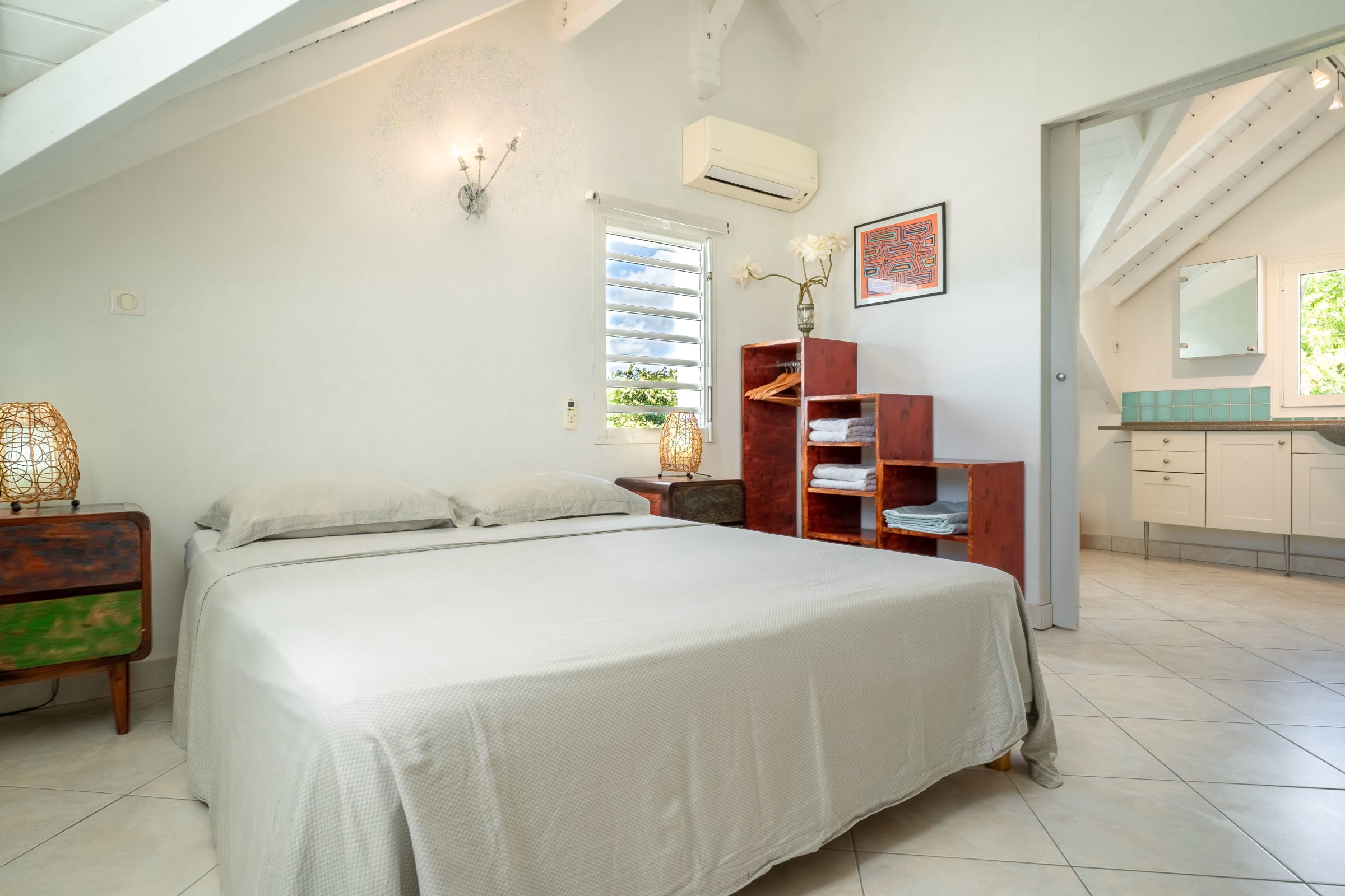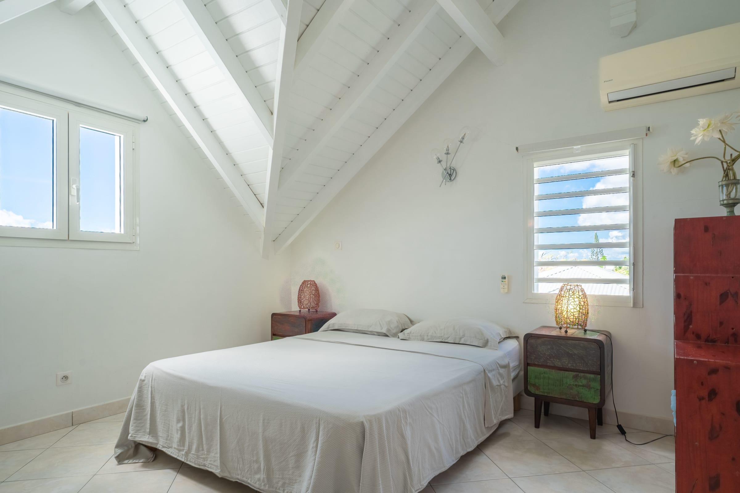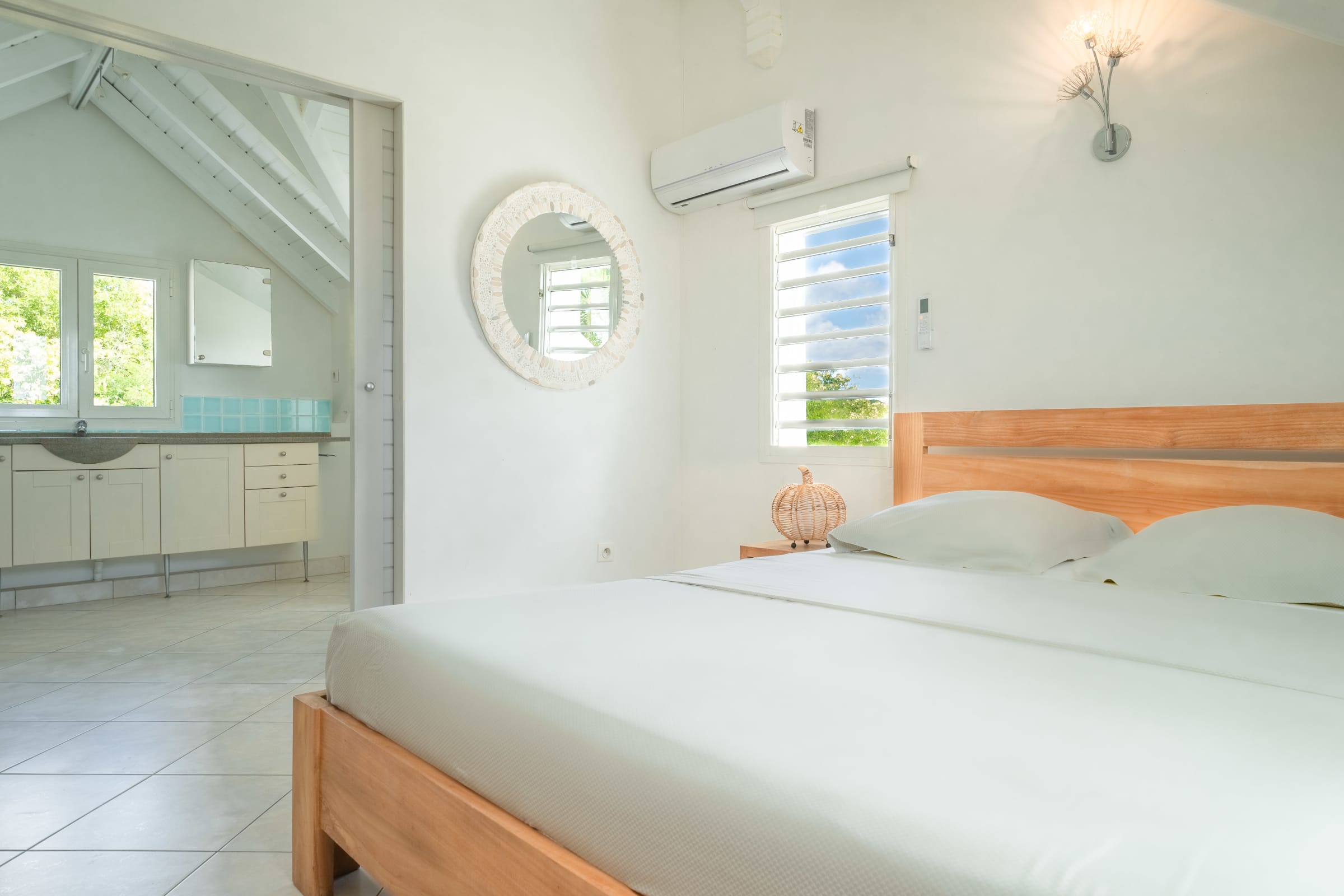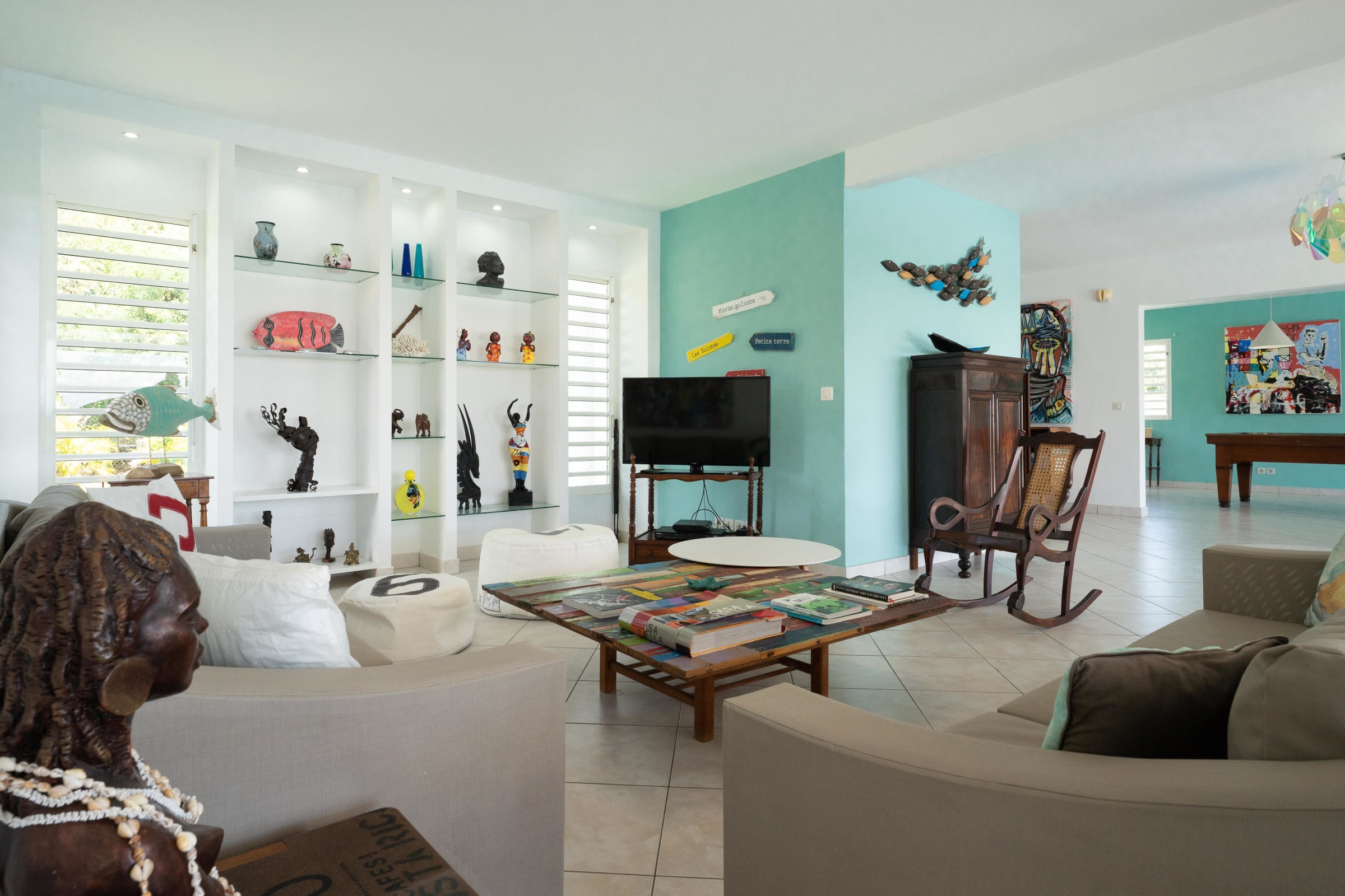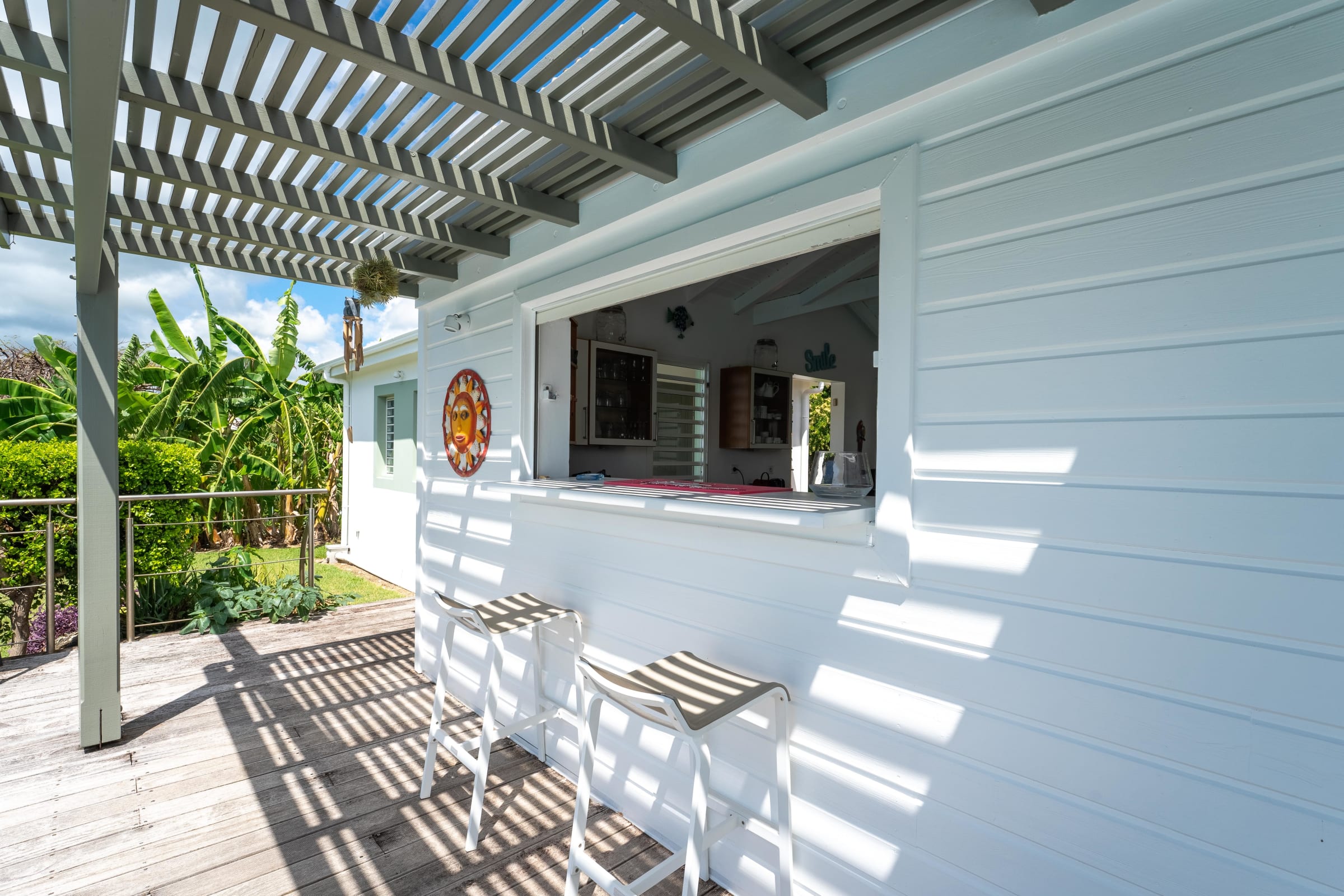 Villa Karukera welcomes you to a modern, spacious setting, ideal for large families or groups of friends. With 5 air-conditioned bedrooms, each with en-suite bathroom, you'll enjoy absolute comfort and the privacy you need for a relaxing vacation. The spacious living room opens onto the infinity pool, providing the ideal space for relaxation, while the pool table and darts add a playful touch to your stay. The fully-equipped kitchen and outdoor terrace with barbecue let you make the most of outdoor living, with breathtaking sea views. A very large garden is ideal for children to play in complete safety.