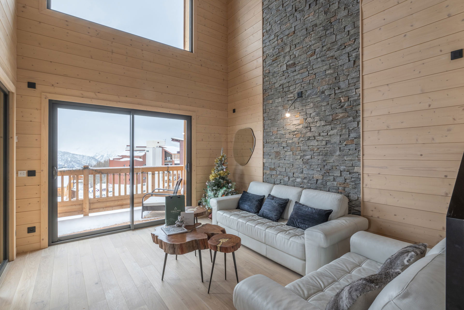 Discover this 125sqm duplex apartment on the 3rd and 4th floors of building A, in the new Chalets du Golf residence. Offering an exceptional panorama, the apartment combines mountain style with comfort and modernity, favoring its large volumes. Thanks to its privileged location, the nearest ski lift is just 300m away with a ski-in until the residence.