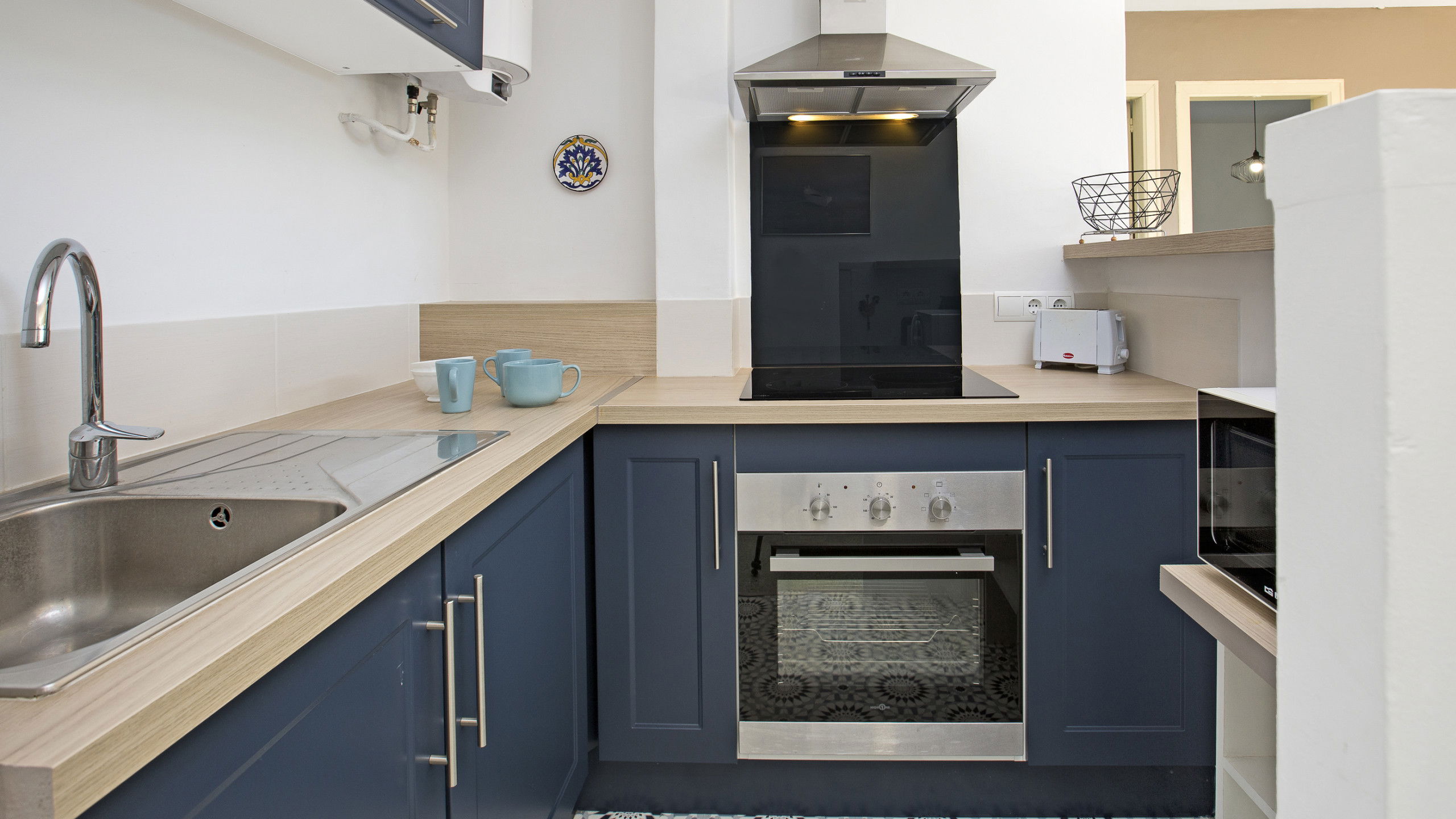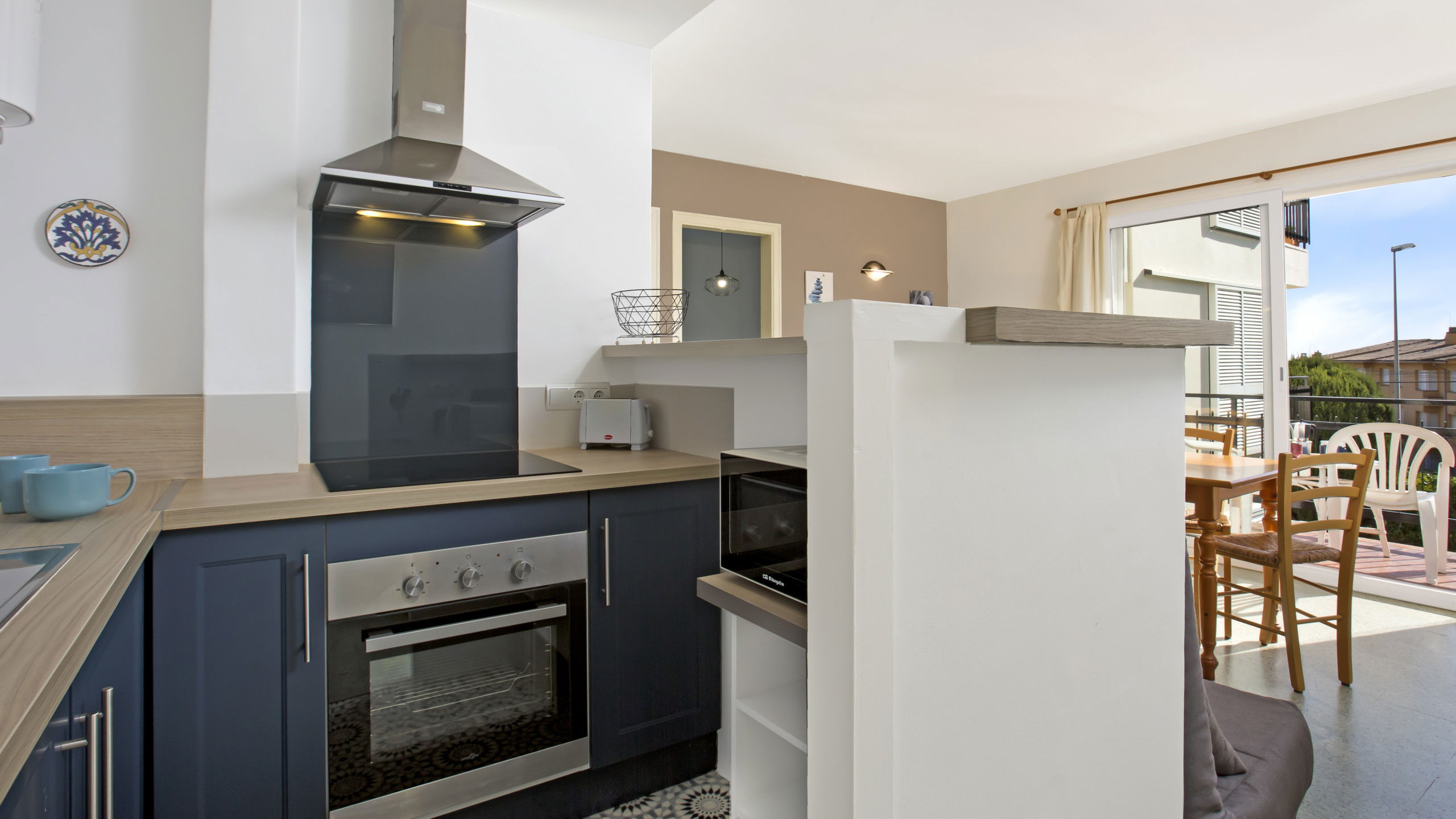 It has living room with tv and direct access to a terrace where you can enjoy breakfasts and meals in the sun, kitchen, 2 double bedrooms (1 double bed, 2 single beds) and 1 bathroom with shower.