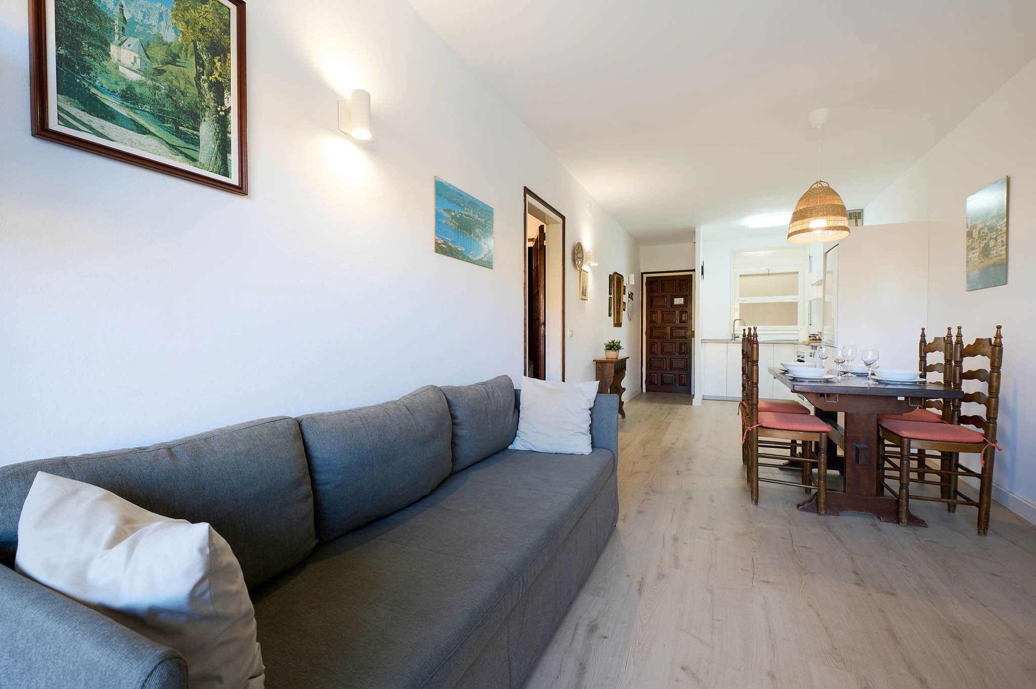 Simple apartment just a few minutes walking from the quiet beach of Calella de Palafrugell, one of the most beautiful on the Costa Brava! Close to shops, supermarkets and restaurants. Maximum capacity for 4 people. Ideal for enjoying peaceful family holidays on the Costa Brava! Outdoor area with communal swimming pool and tennis. Ground floor apartment with terrace. Living room with TV and direct access to the terrace. Small kitchen with all utensils included: cutlery, pans, gas hobs, fridge, microwave, washing machine and oven. The main bedroom has 1 double bed (135x190cm) and the second bedroom has 2 single beds (90x190cm). One bathroom with small bathtub.