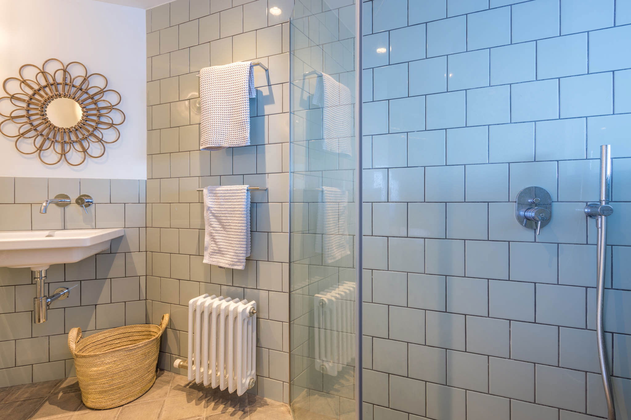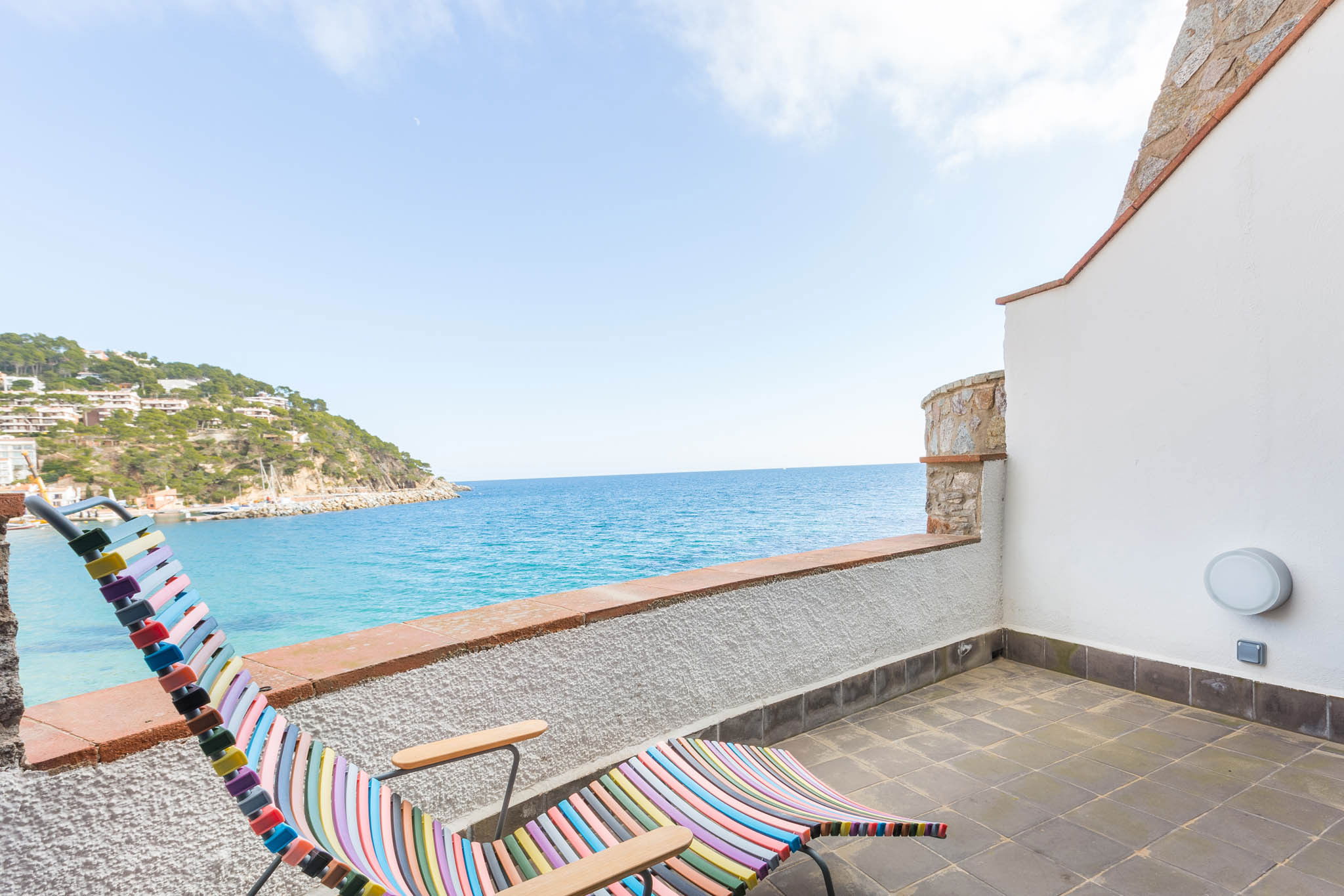 The main floor includes a tastefully furnished dining room and a spacious terrace with fantastic sea views, a large fully equipped open kitchen (gas hob, dishwasher, oven, microwave, fridge and freezer), 1 en suite with shower and double bed (180x190cm), 1 double bedroom with 2 single beds (90x190cm) and 1 bathroom with shower. On the top floor you will find a a studio attic with 2 sofa beds and a TV. On the lower floor you will find 2 en suite rooms with shower (2 double beds (180x190cm and 160x190cm) both with sea views and one of them with access to a terrace. On the lower floor there is access to is a small jetty with direct access to Llafranc beach (door access with code).