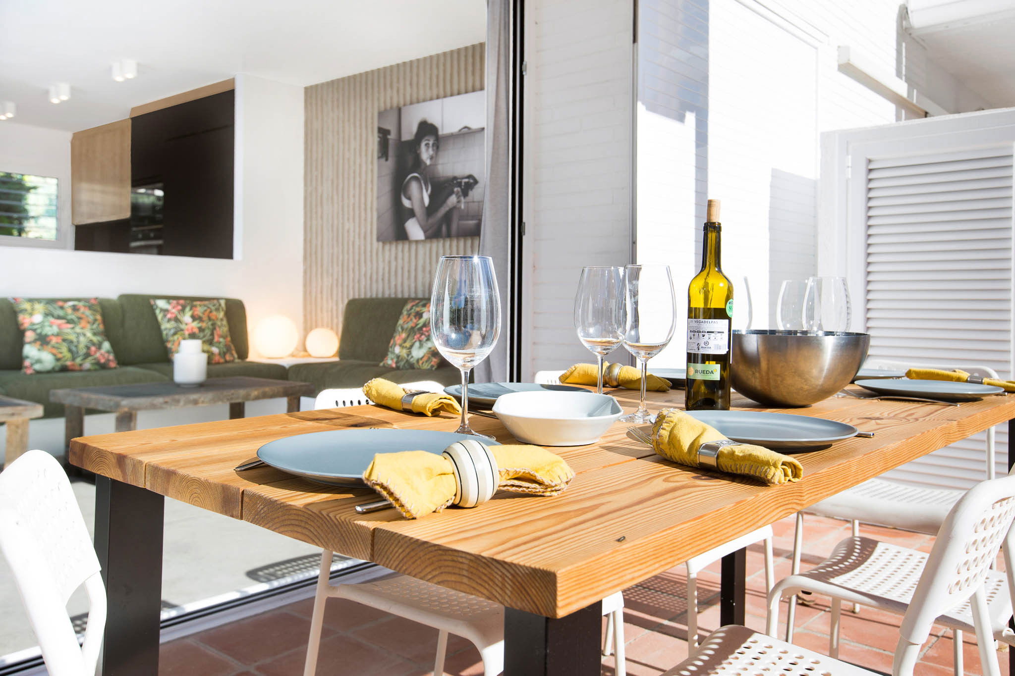 It has a nice furnished terrace where you can enjoy breakfast and meals in the sun. Living room with TV and direct access to the terrace. Fully equipped kitchen (ceramic hob, microwave, toaster, oven, dishwasher, fridge, washing machine). Living room with access to the garden