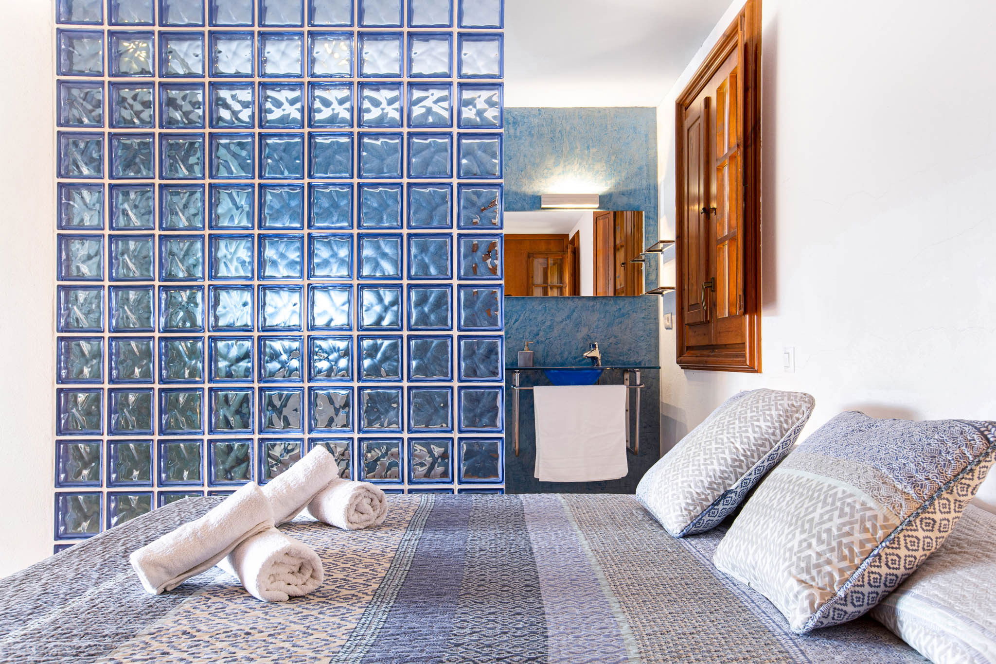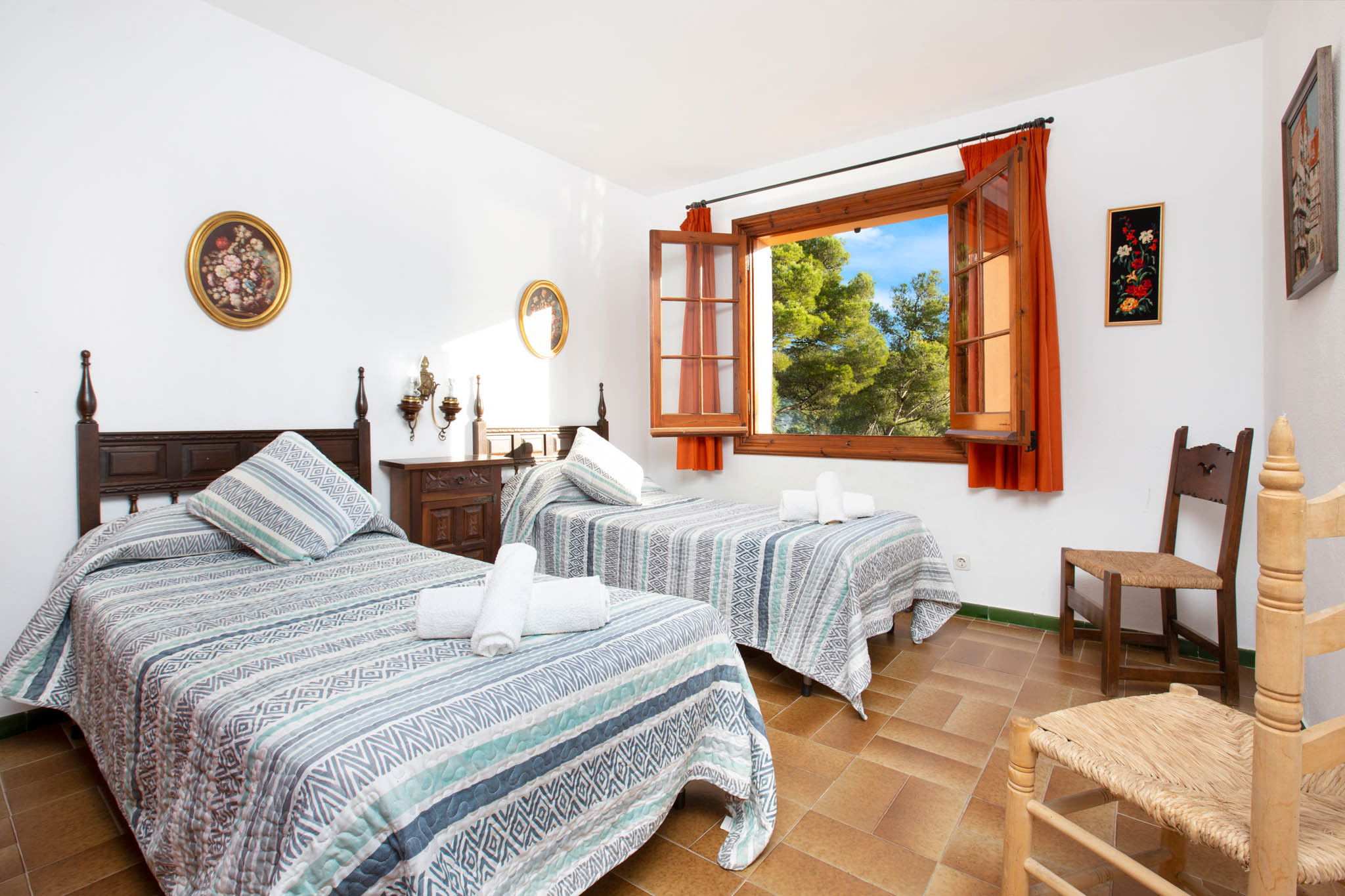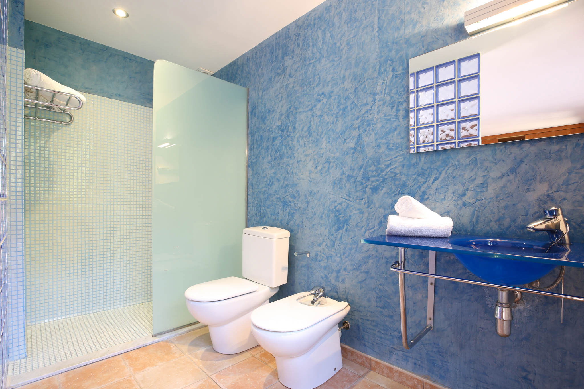It has 2 double bedrooms with bathroom en suite, 3 bedrooms with two single beds in each and 1 double room. 2 bathrooms (in total 3 bathrooms). Small studio on the ground floor where the guard lives, only for sleeping.