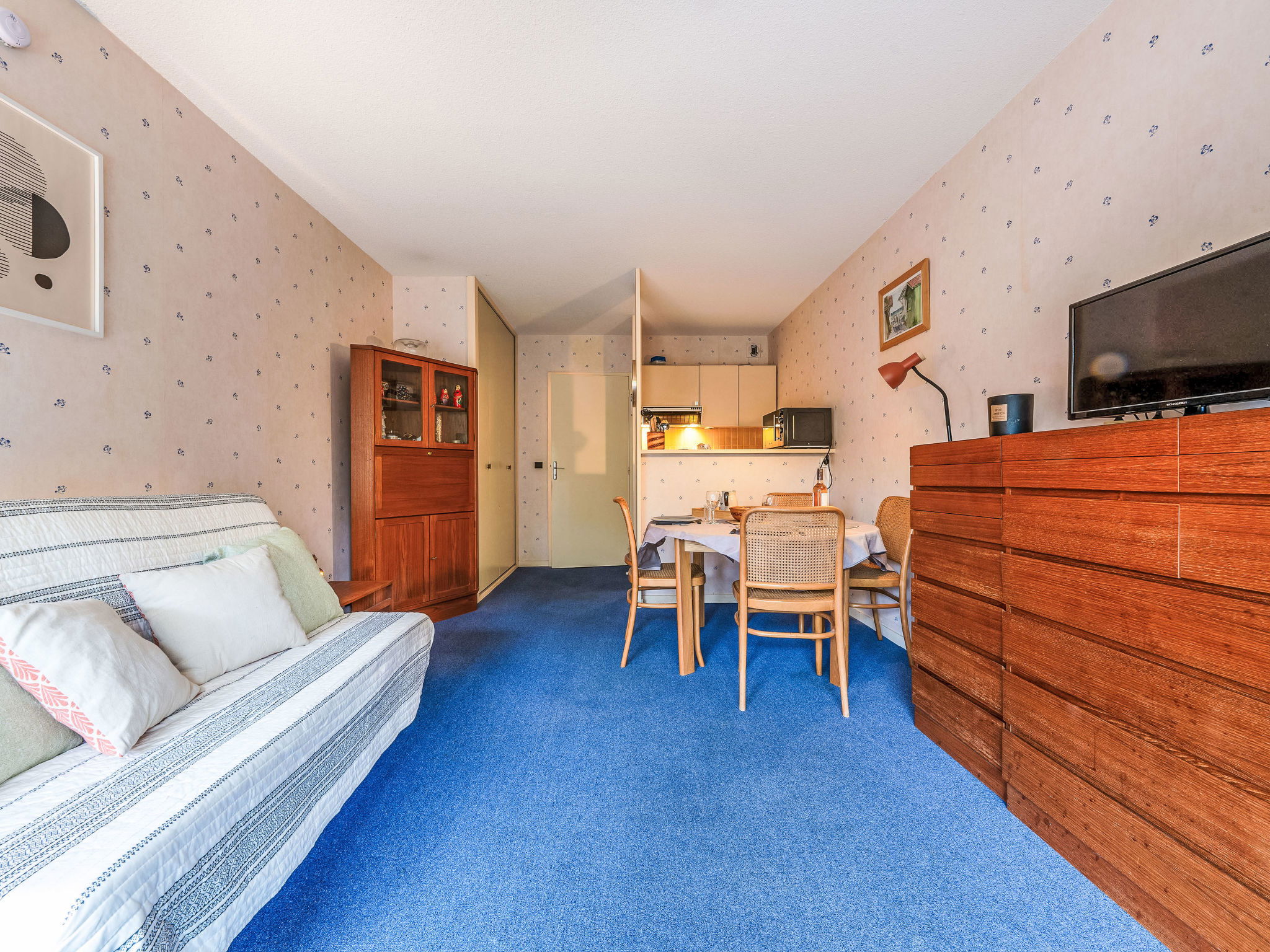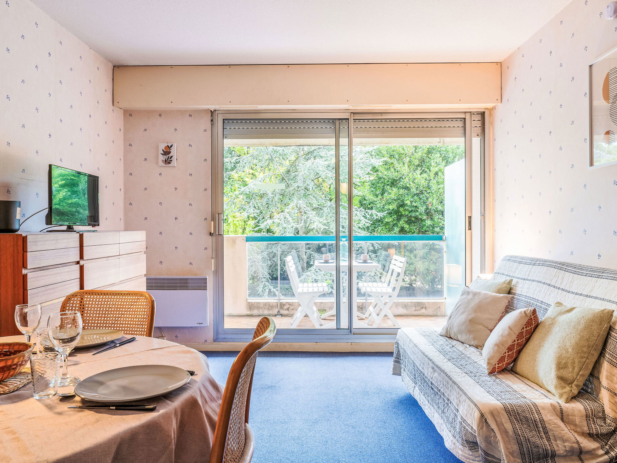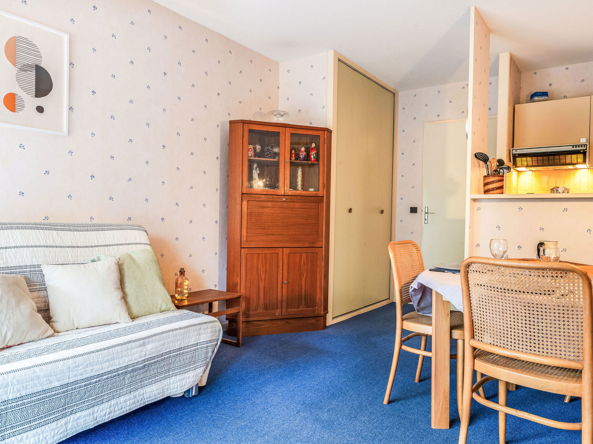1-room studio 27 m2 on 1st floor. Simple and practical furnishings: living/dining room with 1 double sofabed (140 cm, length 190 cm), TV (flat screen). Exit to the balcony. Kitchenette (2 ceramic glass hob hotplates, toaster, kettle, microwave, electric coffee machine). Bath/WC. Electric heating. Balcony 6 m2, south facing position. Balcony furniture. Facilities: iron, hair dryer. Internet (WiFi, extra). Parking space n 114 (1 car). Please note: smoke alarm. Offer by a private individual according to Art. 155, IV of CGI. 330090021172A