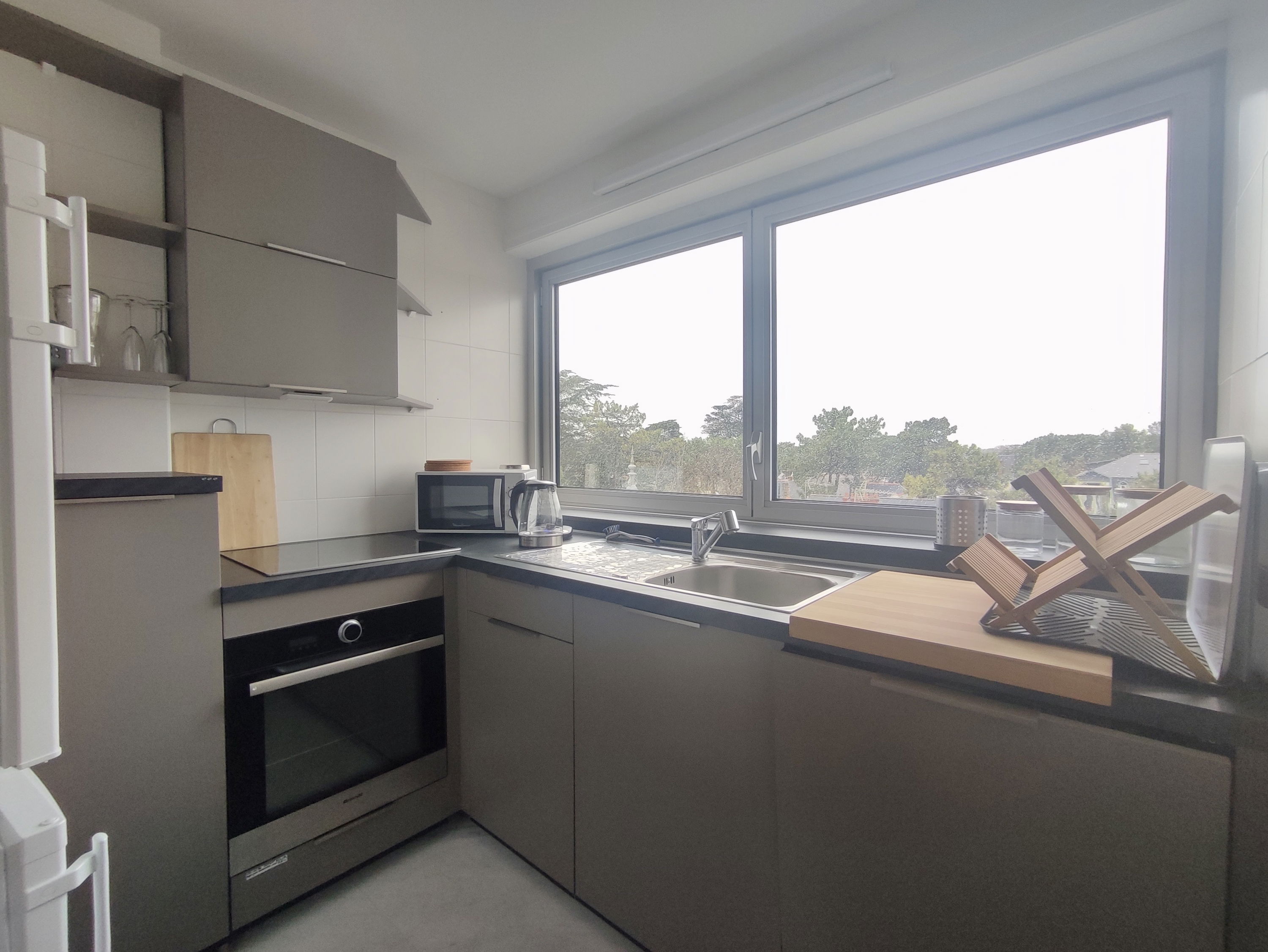 You will find: An entrance with cupboard/wardrobe - Bright living room offers a 140/190 sofa bed, the bay windows open onto a south-facing terrace, offering a breathtaking view of the ocean (awning and outdoor furniture ) - Independent kitchen, fully fitted and equipped, meets all your culinary needs. Modern induction hobs, an oven, a microwave, two refrigerators with freezers, a dishwasher, a Nespresso coffee maker as well as a filter coffee maker, a toaster and a kettle are at your disposal - The bathroom water is equipped with a large shower, a vanity unit, a washing machine and a towel dryer for optimal comfort - The room offers two 80/190 beds, which can be joined together to form a bed king-size (160/190), and has a cupboard/wardrobe. Located at the rear of the residence, it guarantees peaceful nights. - Separate WC - FIBER WIFI CONNECTION.