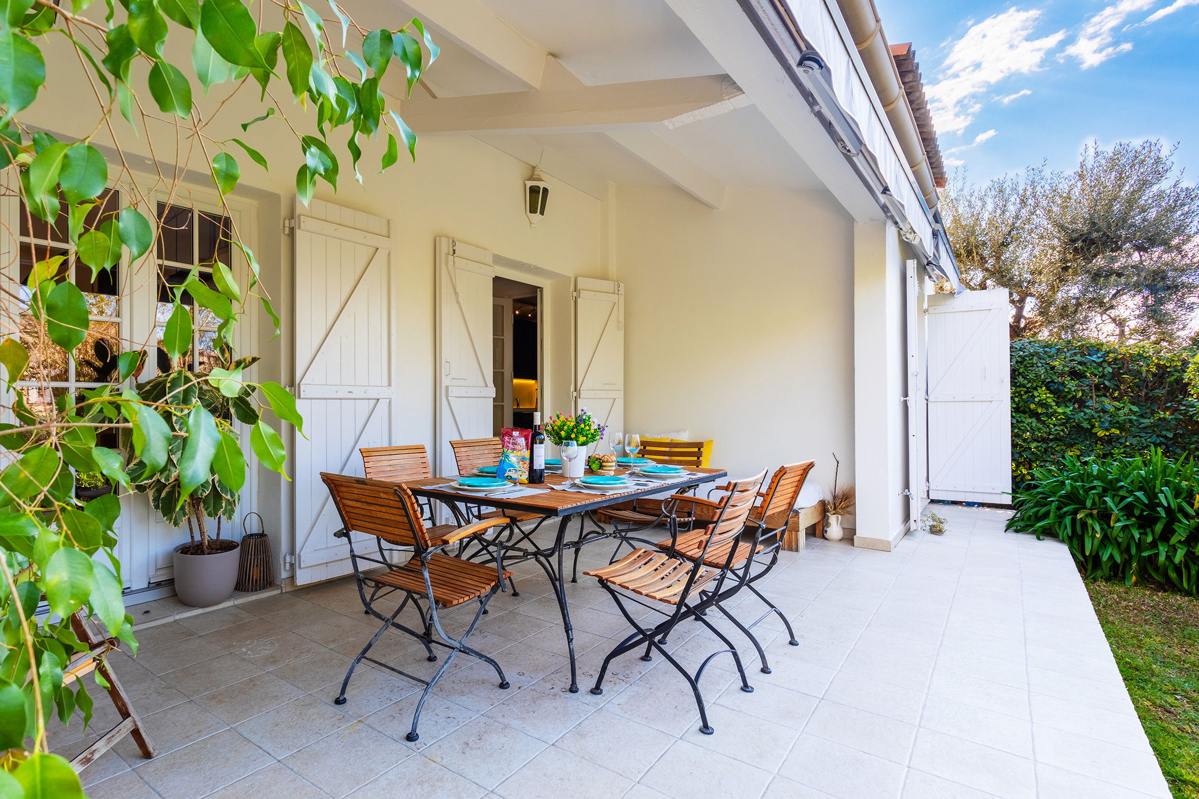 Pretty enclosed garden on either side of the villa, parking and a shared swimming pool for the entire residence.