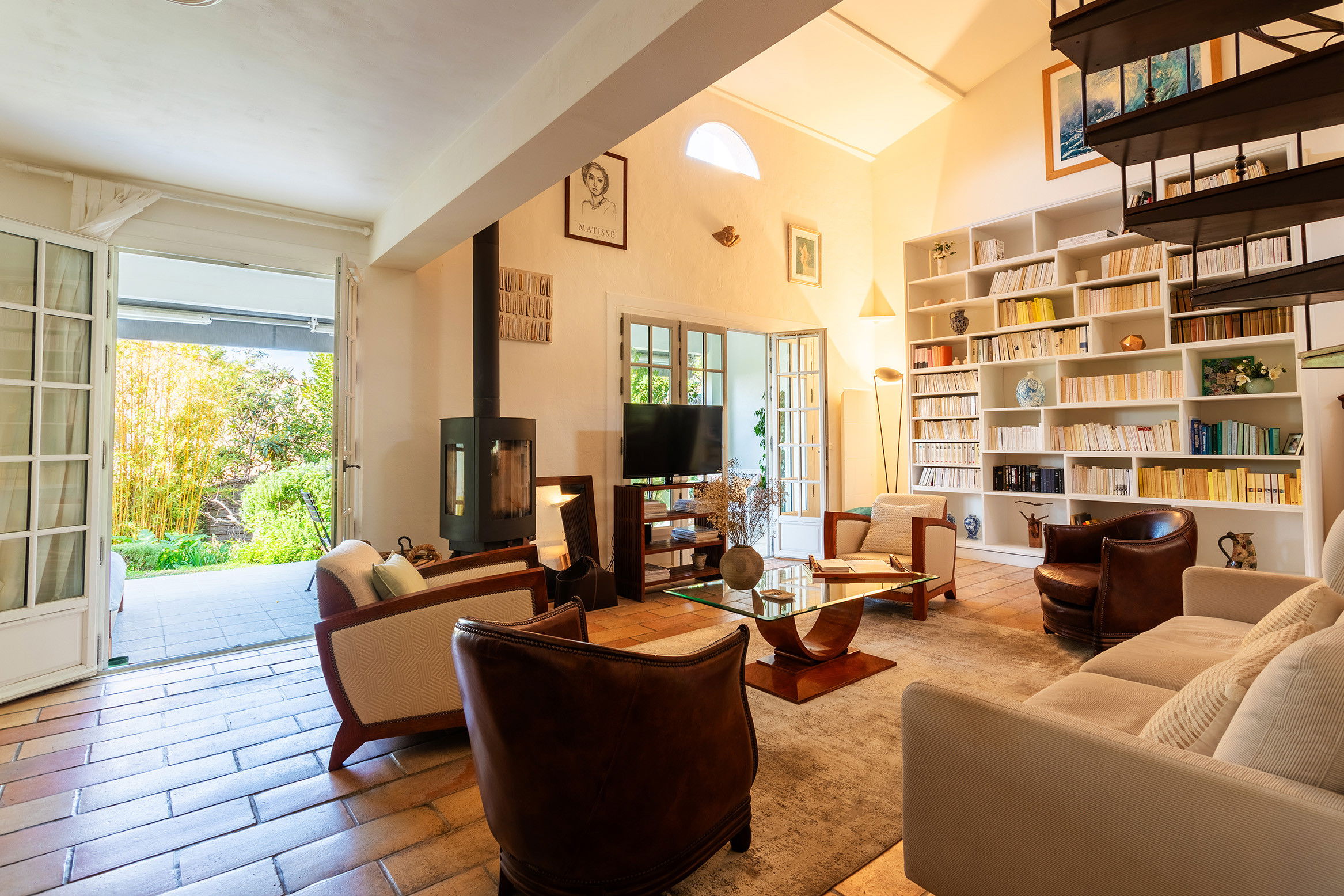 The ground floor - swimming pool floor, is the living space: a beautiful dining room with large bay windows, the living room with lounge area, benefiting from comfortable furnishings. Fully equipped independent kitchen. This sunny space opens onto a beautiful terrace towards the garden.