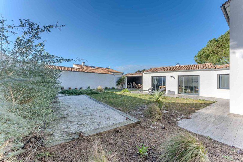 With a surface area of approximately 112m², it is made up of a living/dining room, an open kitchen, 4 bedrooms, a garden, a courtyard, a parking space.