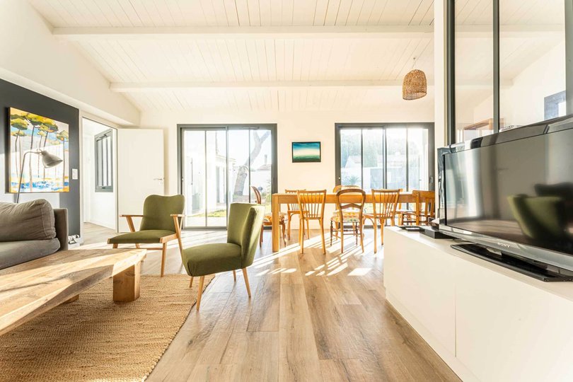 The kitchen offers all the space and equipment necessary for your meals with family or friends: induction hob, oven, microwave, fridge-freezer, dishwasher, Nespresso coffee machine, kettle.