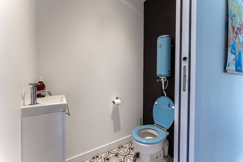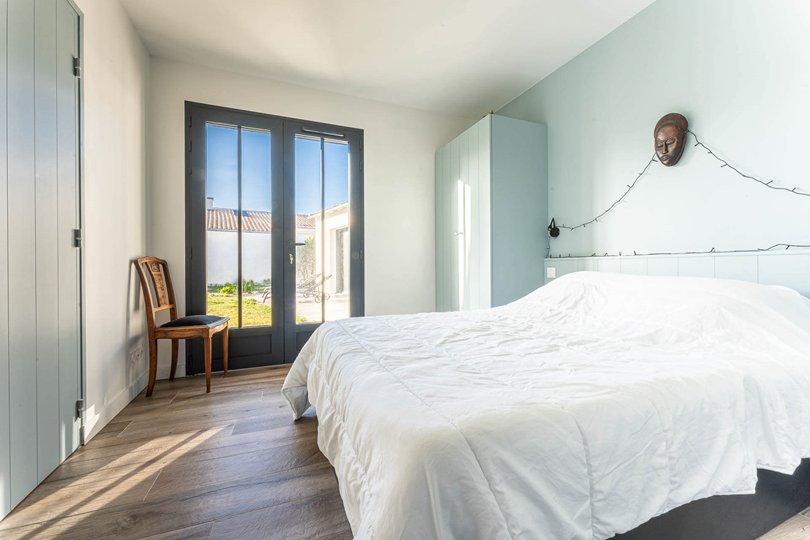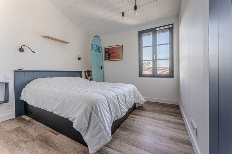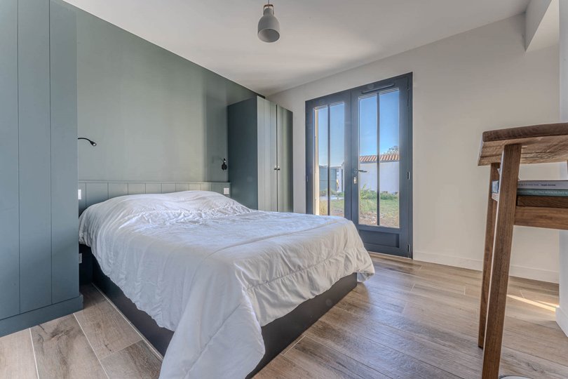 On the ground floor, the sleeping area consists of 2 double bedrooms (140 bed) with a shared bathroom (passing between the 2 bedrooms) and separate toilets.