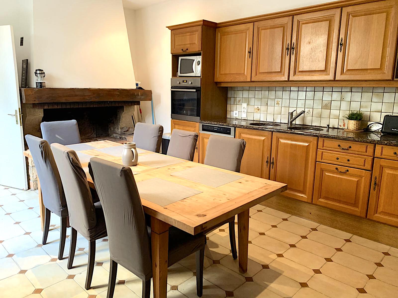 It offers on the raised ground floor: Entrance - Sleeping area with sofa bed + cupboard - Spacious living room with lounge (TV + WIFI + fireplace) and dining room with 2 tables - WC - Independent fitted kitchen (oven, microwave, dishwasher, fridge/freezer, hood, gas hob, kettle, toaster, pod coffee maker) - Access to the terrace (outdoor furniture).