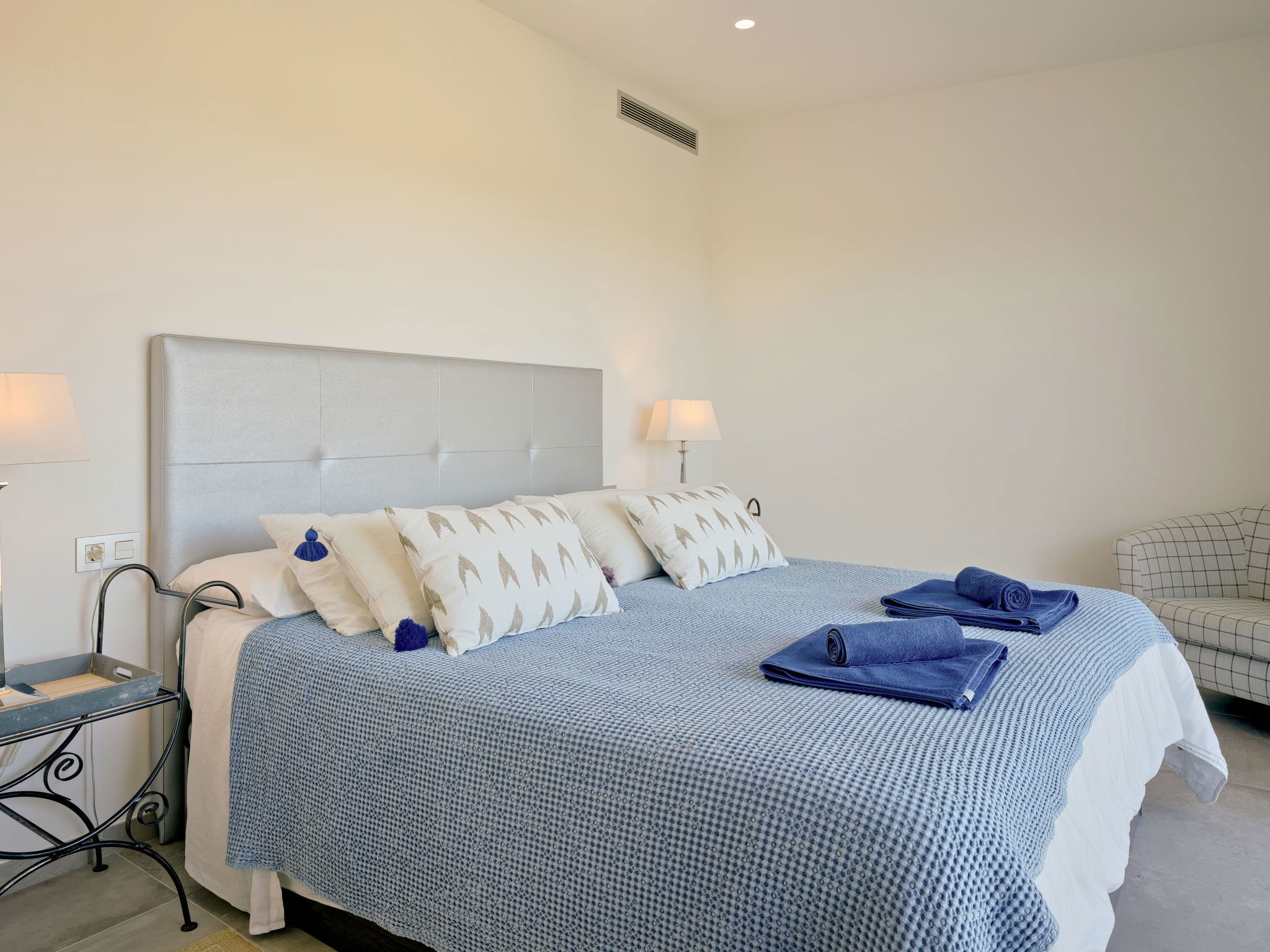 "Villa Eos", 6-room villa 300 m2 on 3 levels. Spacious and bright, very beautiful and stylish furnishings: living/dining room with satellite TV, air conditioning and forced-air heating. Exit pergola, to the patio, to the swimming pool. Large, open kitchen (oven, dishwasher, 5 induction hot plates, toaster, kettle, microwave, freezer, electric coffee machine, cooking island). Underfloor heating. On the lower ground floor: 1 room with 1 french bed (180 cm, length 200 cm), shower/WC and air conditioning. Exit to the terrace. 1 room with 1 french bed (180 cm, length 200 cm), shower/WC and air conditioning. Exit to the terrace. Shower/WC. Underfloor heating. Upper floor: 1 room with 1 french bed (180 cm, length 200 cm), air conditioning and forced-air heating. Exit to the terrace. Underfloor heating. Large terrace. Terrace furniture, barbecue, deck chairs, covered balcony, sitting area. Marvellous view of the sea, the mountains and the valley. Facilities: washing machine, dryer, iron, children's high chair, baby cot, hair dryer. Internet (WiFi, free). Parking. Please note: TV only FR, DE. VT-508481-A // Reg. Nr.: ESFCTU00000307100097577000000000000000000VT-508481-A3