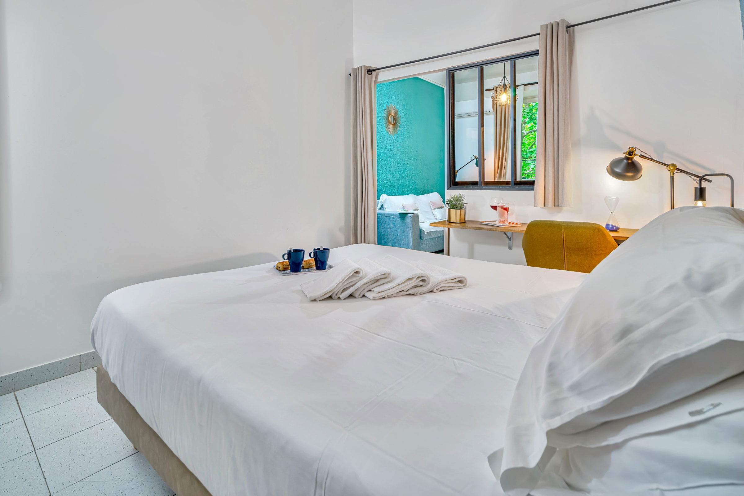 The room has a high-quality Queen-size bed (160x200cm) for a good night’s sleep with bed linen and towels, as well as a closet with hangers, ironing board and iron.