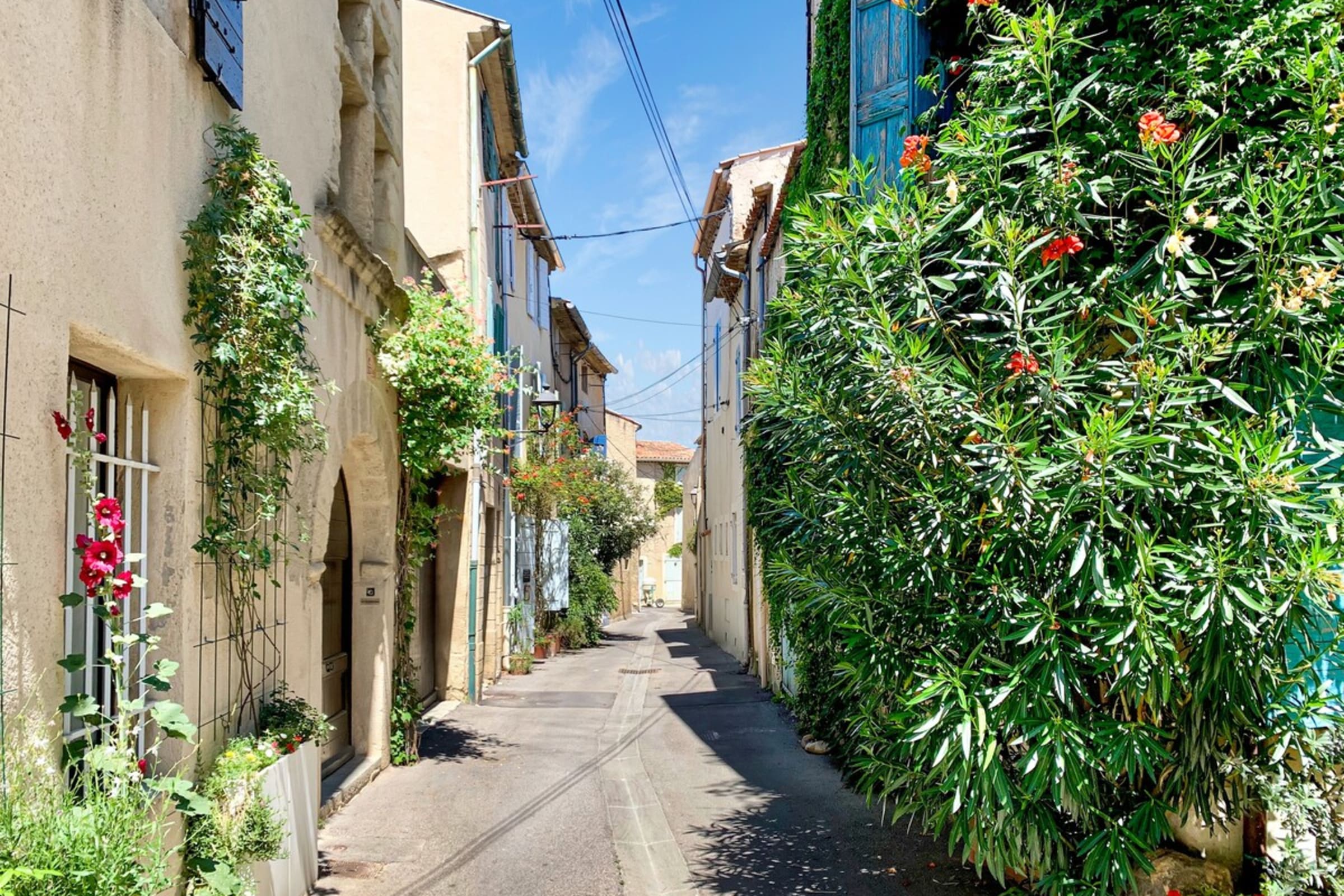 The entrance to the building is located on a Provençal pedestrian street, with public parking nearby. The apartment, located on the 1st floor without an elevator, has a window providing natural light.
