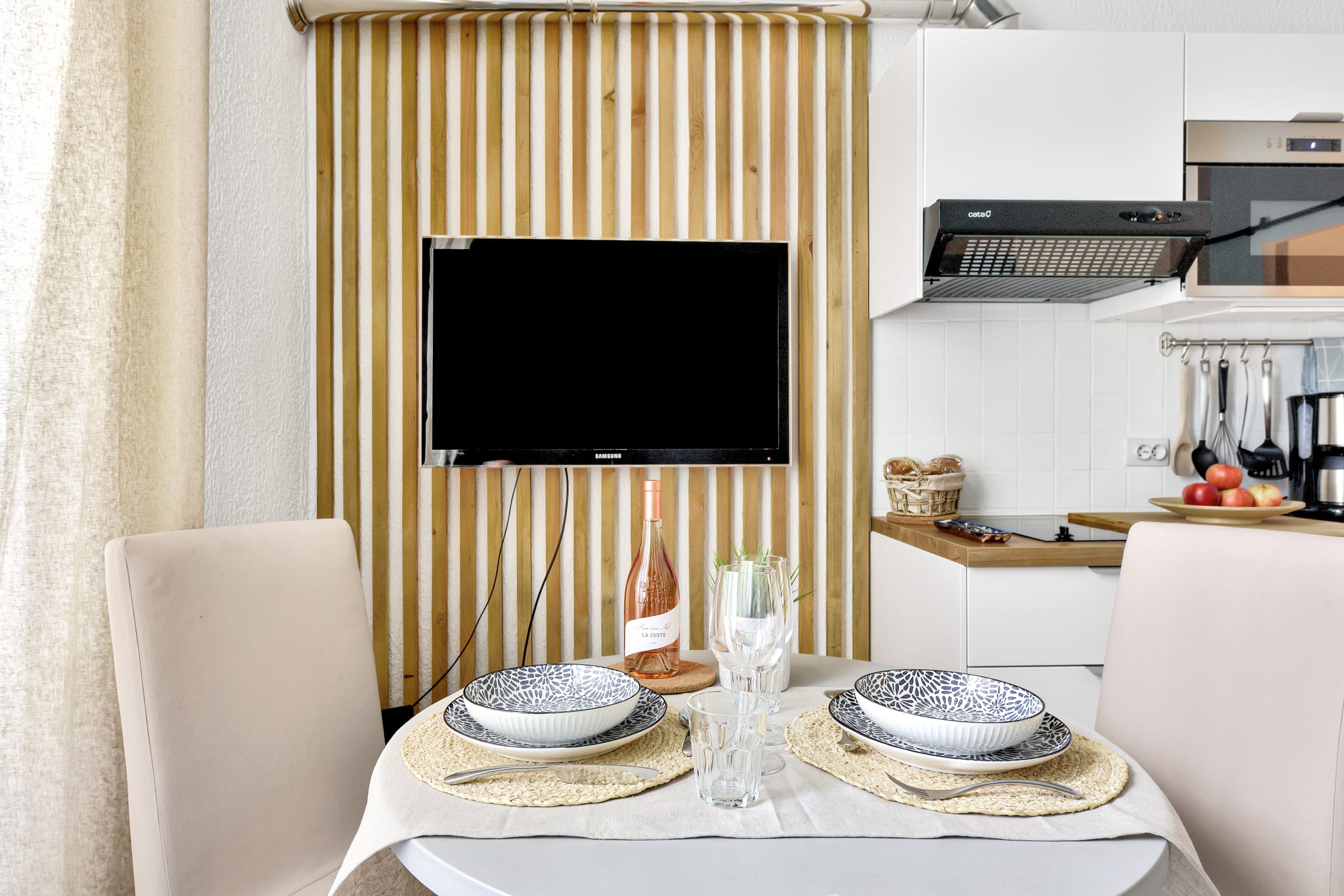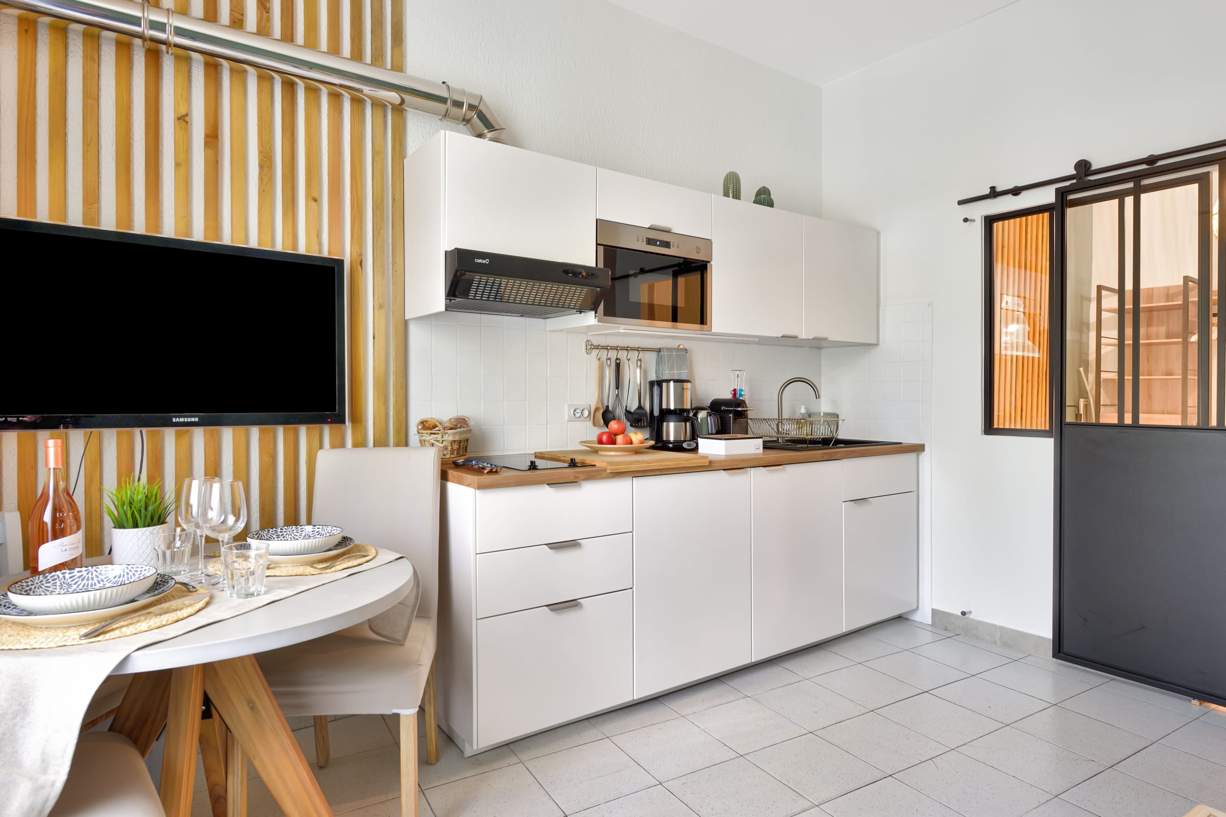 L'apartment has the latest technologies such as a powerful dual band wifi access thanks to fiber optics, a Chromecast with GoogleTV to access Netflix, Disney+ and Amazon Prime Video for a total immersion and a ceramic hob.