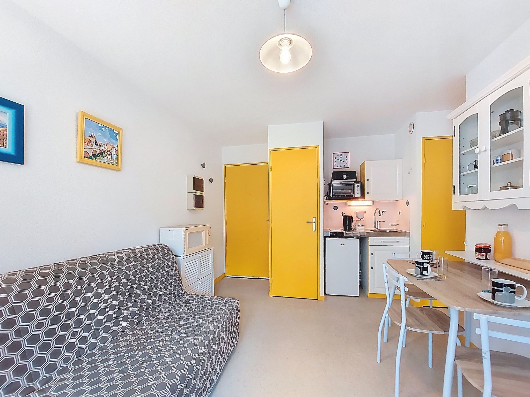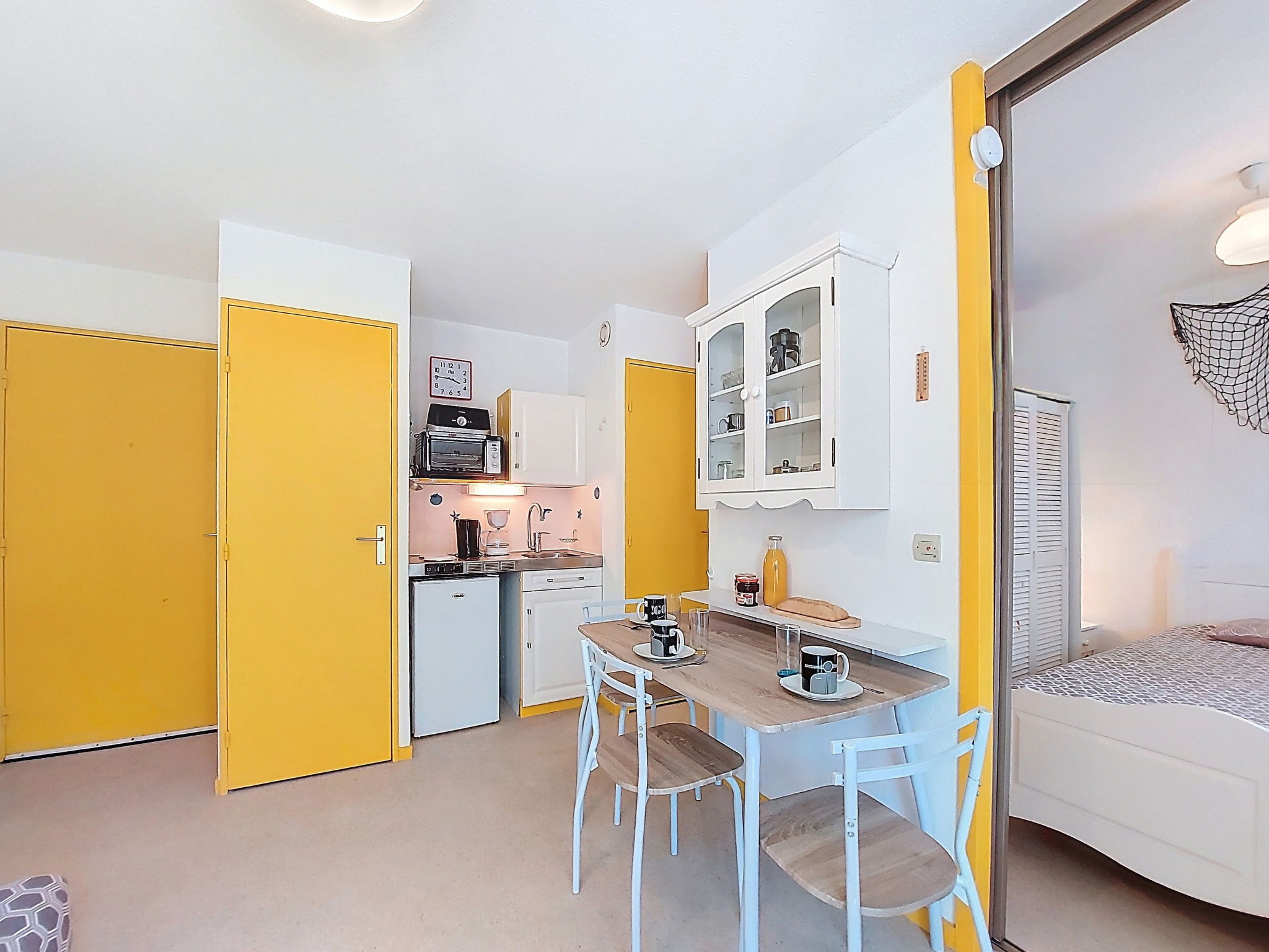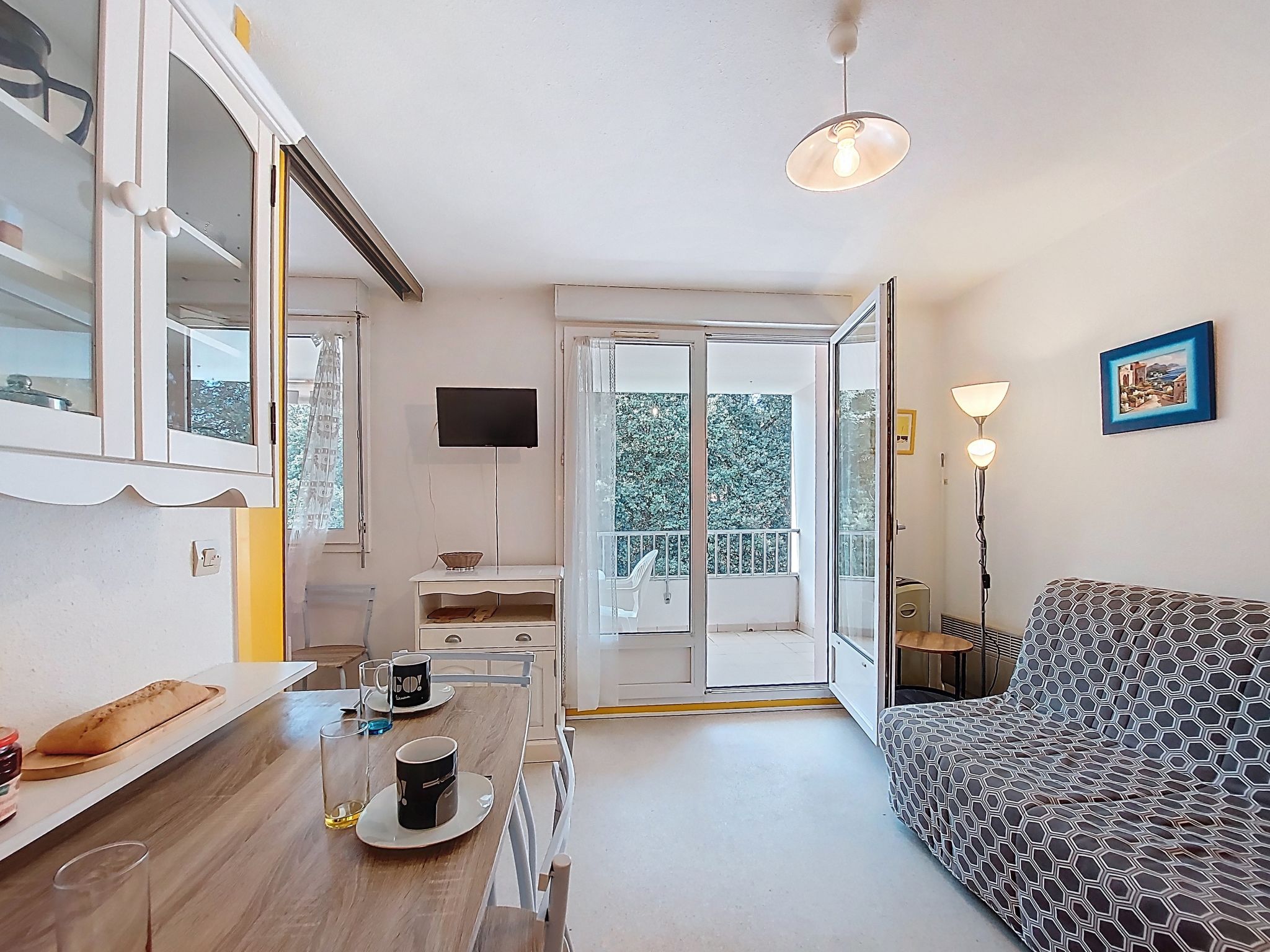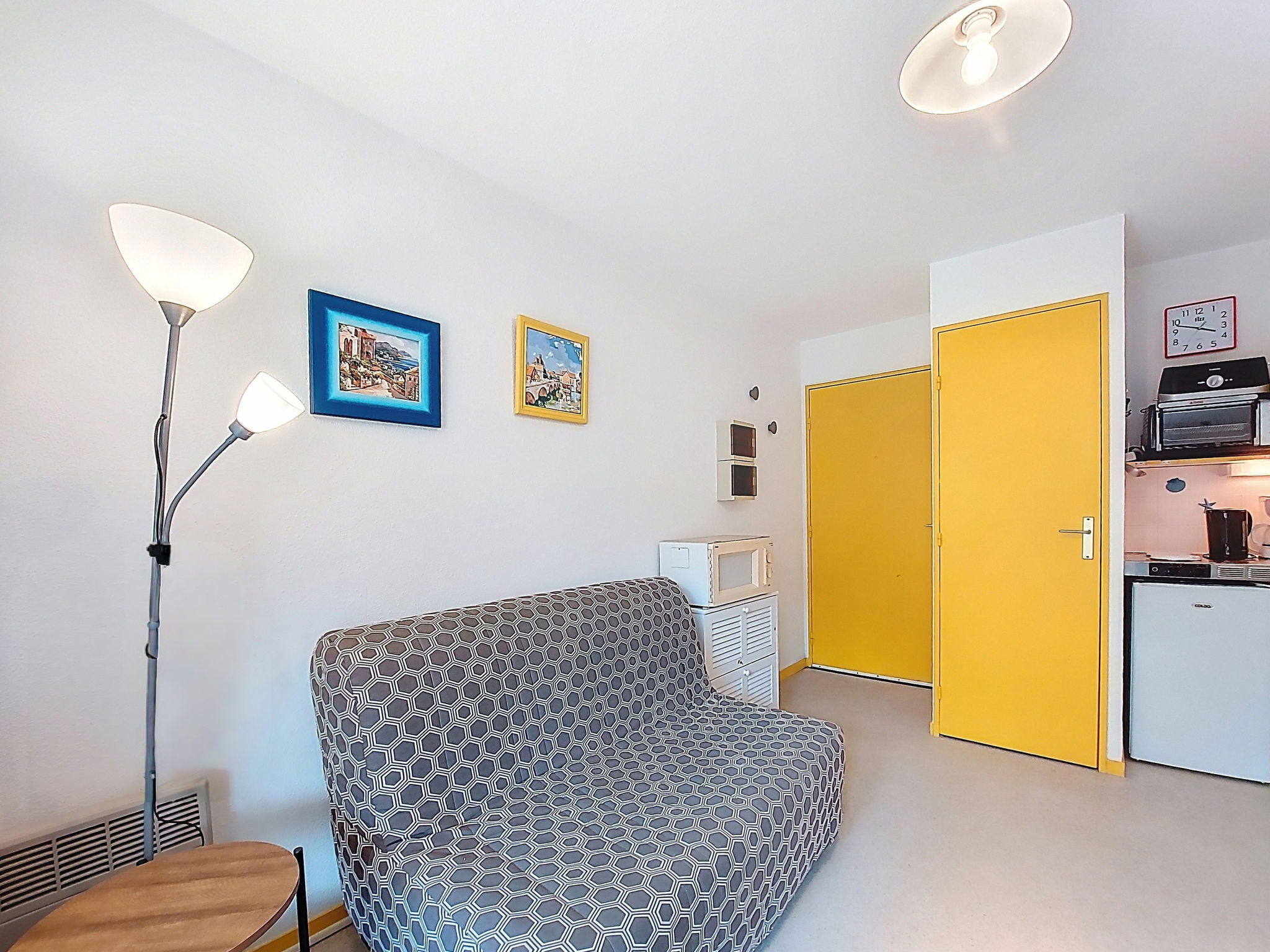 2-room apartment 23 m2 on 2nd floor, west facing position. Living room with 1 sofabed (140 cm, length 190 cm), TV (flat screen). Exit to the terrace. 1 small room with 1 french bed (1 x 140 cm, length 190 cm). Kitchenette (2 hot plates, mini-oven, toaster, kettle, microwave, electric coffee machine). Shower, sep. WC. Electric heating. Terrace 10 m2, west facing position. Terrace furniture. Facilities: washing machine. Internet (WiFi, extra). Parking space n 115. Please note: apartment street side. Smoke alarm. Offer by a private individual according to Art. 155, IV of CGI.