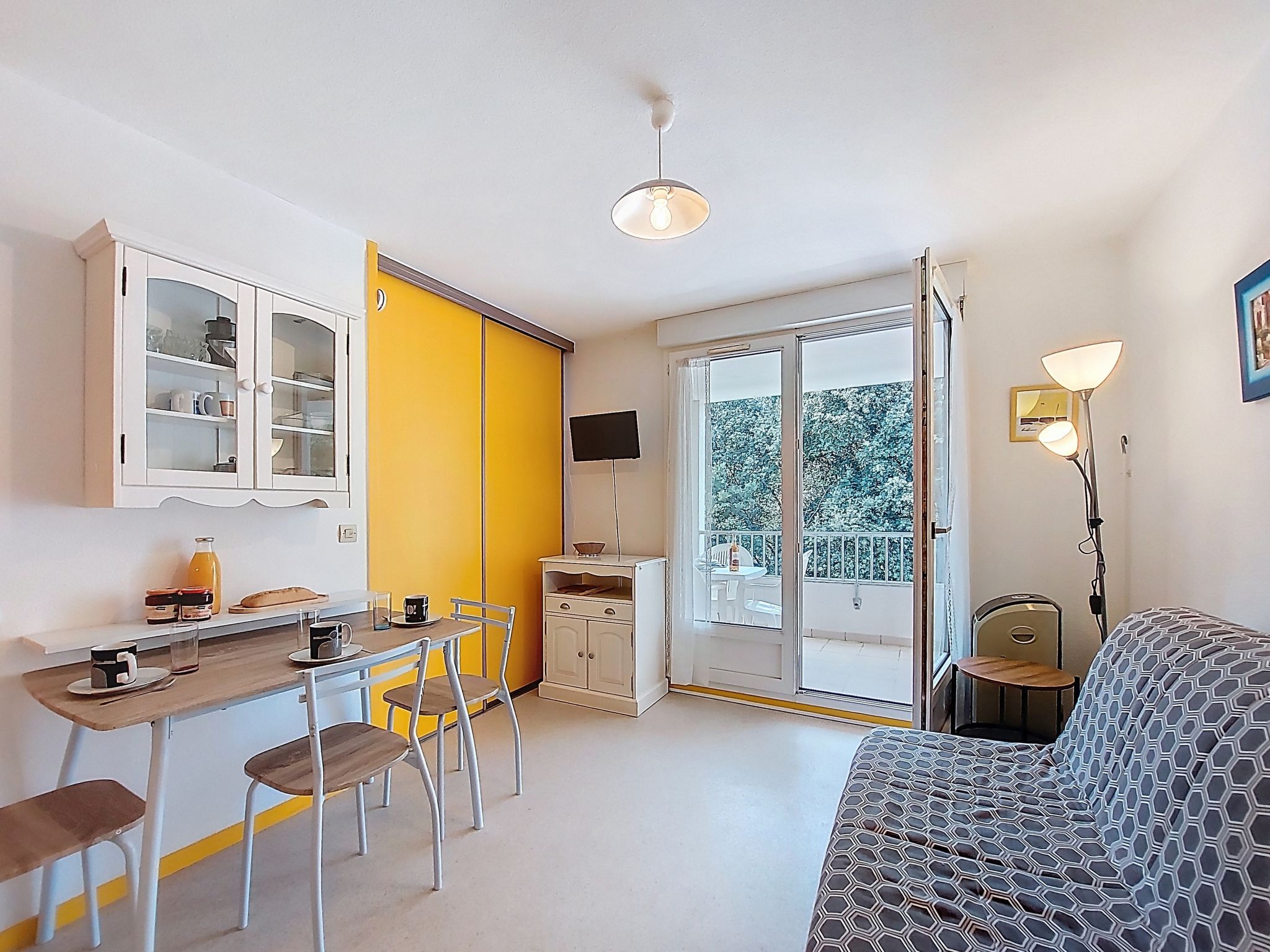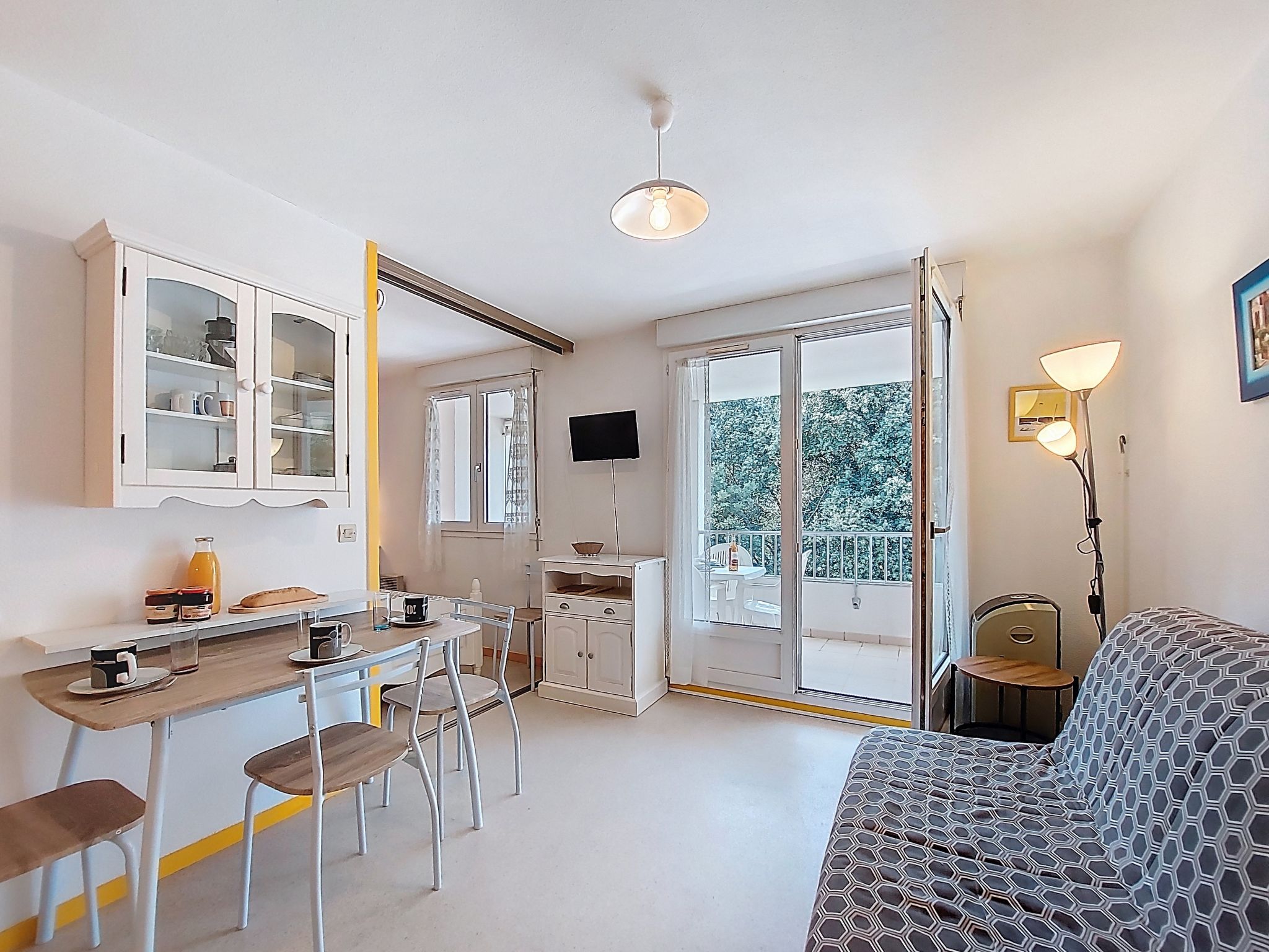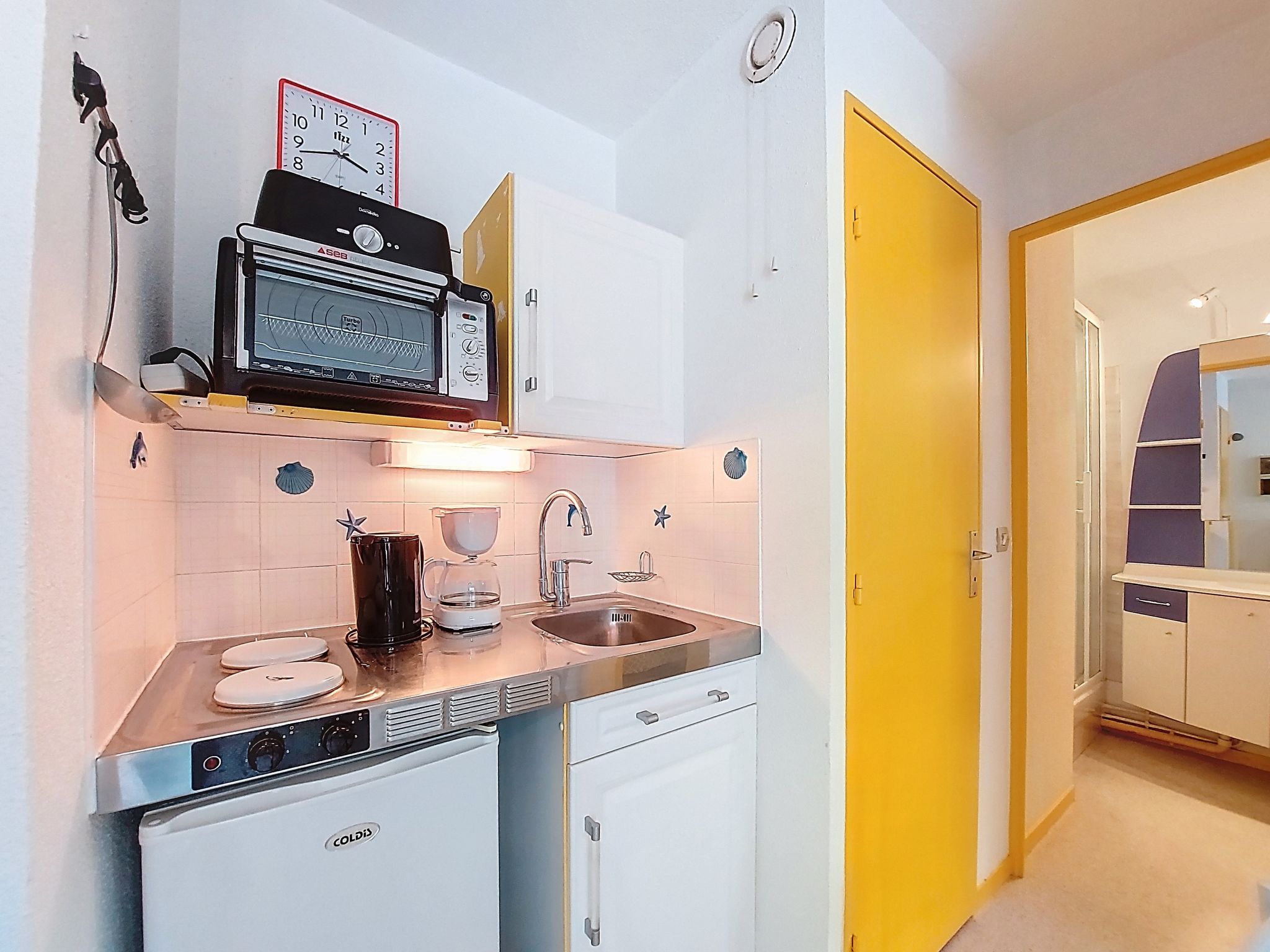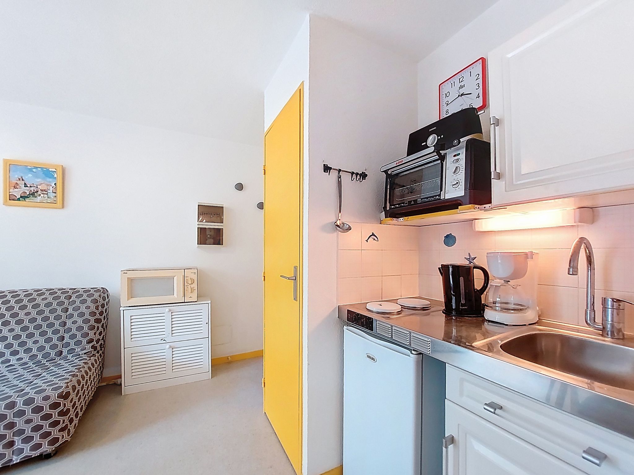 2-room apartment 23 m2 on 2nd floor, west facing position. Living room with 1 sofabed (140 cm, length 190 cm), TV (flat screen). Exit to the terrace. 1 small room with 1 french bed (1 x 140 cm, length 190 cm). Kitchenette (2 hot plates, mini-oven, toaster, kettle, microwave, electric coffee machine). Shower, sep. WC. Electric heating. Terrace 10 m2, west facing position. Terrace furniture. Facilities: washing machine. Internet (WiFi, extra). Parking space n 115. Please note: apartment street side. Smoke alarm. Offer by a private individual according to Art. 155, IV of CGI.