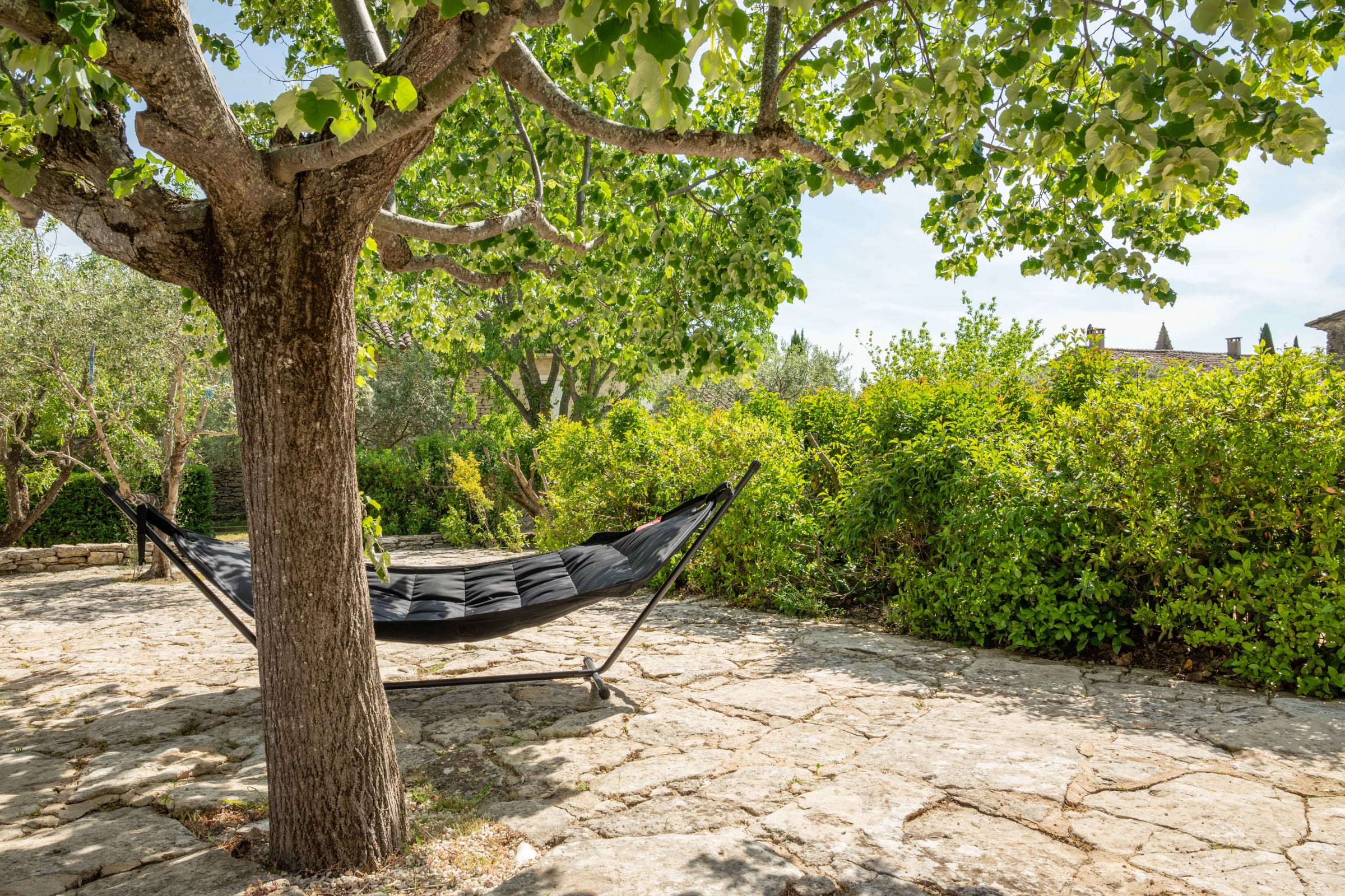 A hammock is installed in the shade of the lime tree, best place for a nap.