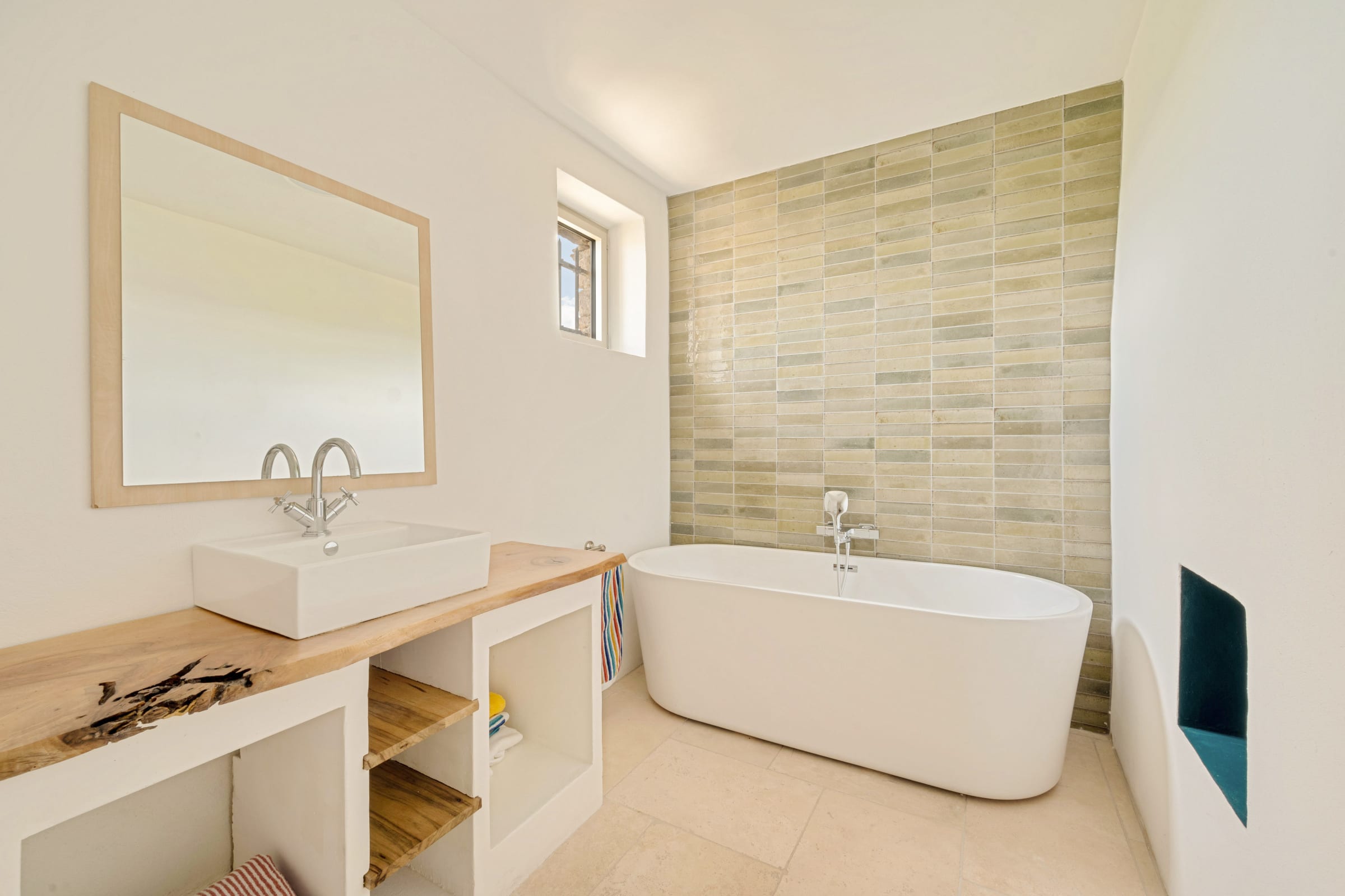 The main building is composed of 5 bedrooms with air conditioning. Each one of them has its own bathroom. Very nice decorated and cosy living areas.
