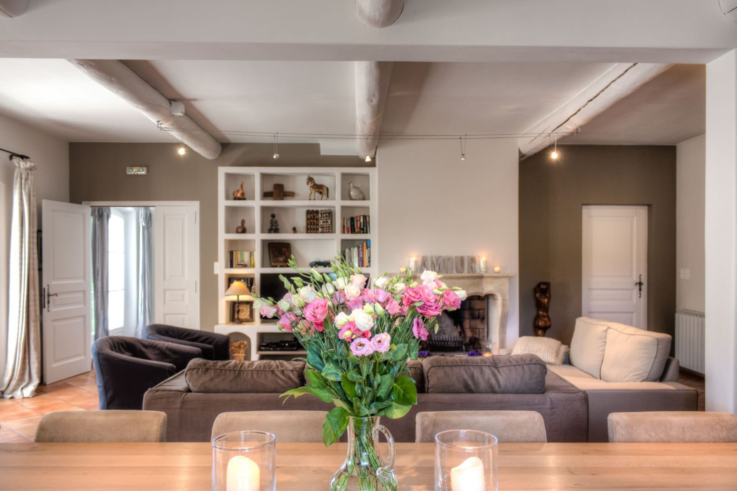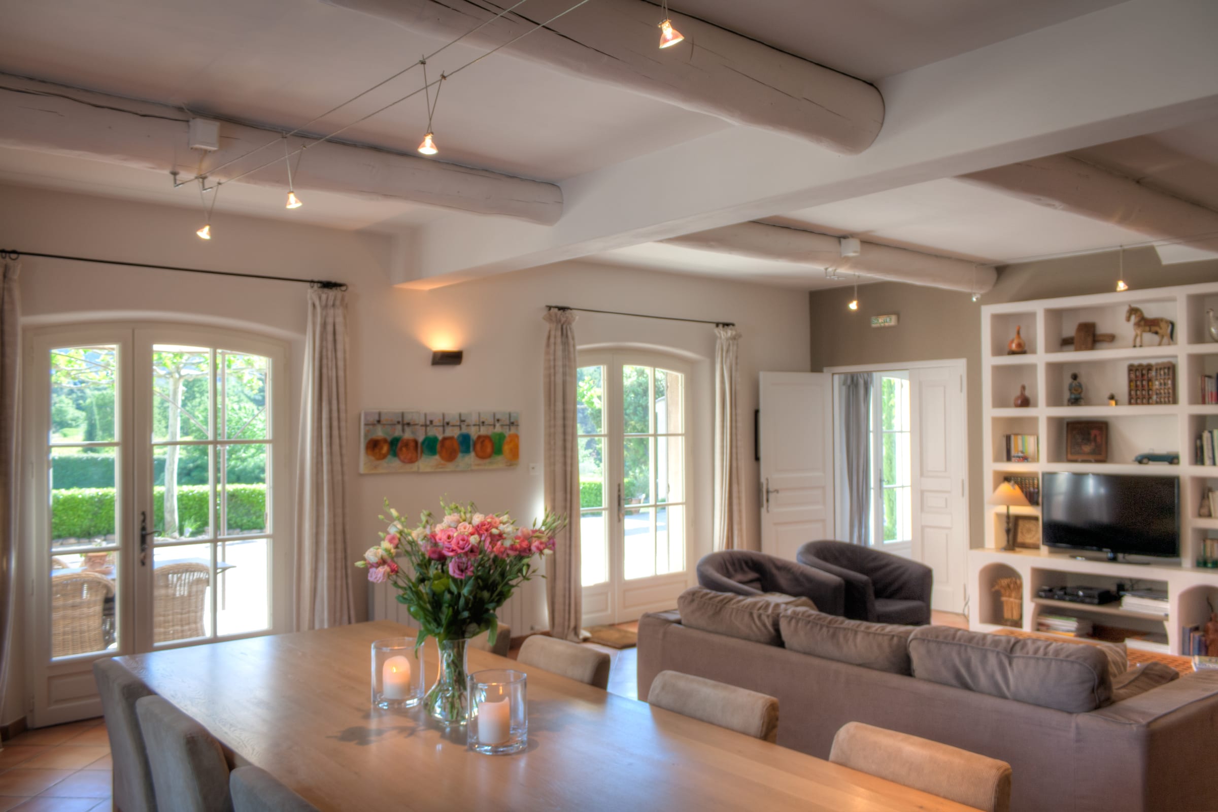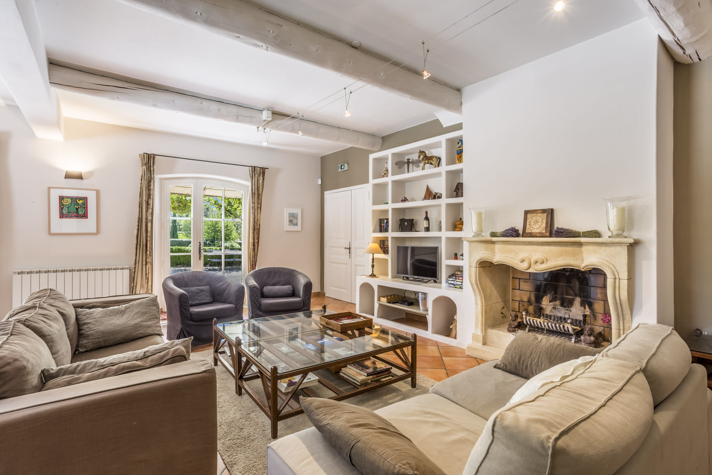 - Large living room (60 m²) with fireplace and direct access to the south terrace and garden