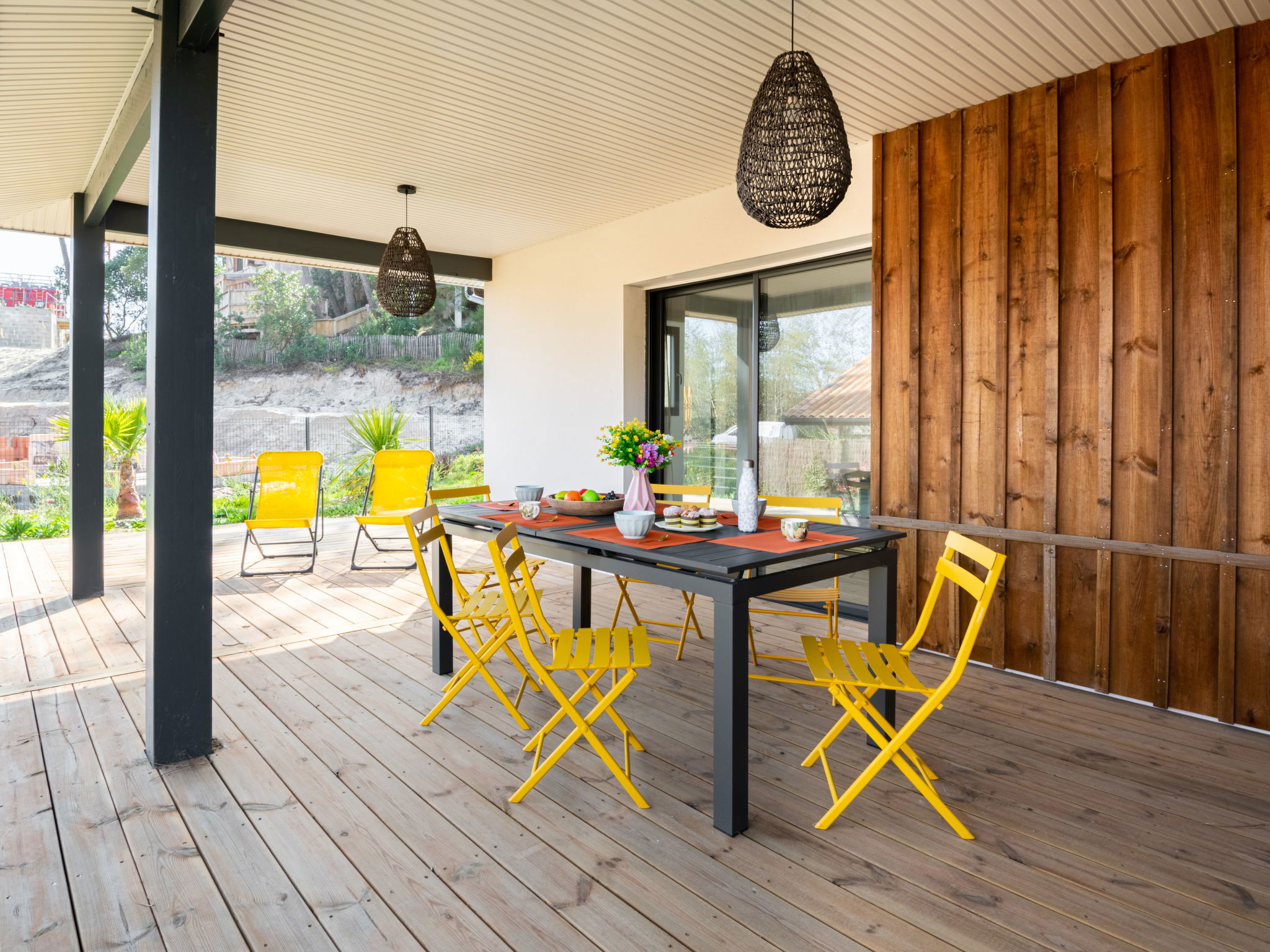 4-room house 110 m2, on the ground floor. Comfortable and modern furnishings: living/dining room with TV and international TV channels (flat screen). Exit to the terrace. 1 room with 2 x 2 bunk beds (4 x 90 cm, length 190 cm). 1 room with Dressing room with 1 french bed (1 x 160 cm, length 200 cm), hand-basin and shower. Exit to the terrace. 1 room with 2 beds (90 cm, length 200 cm). Open kitchen (dishwasher, 1 induction hot plates, 3 gas rings, toaster, kettle, freezer, electric coffee machine, Capsules for coffee machine (nespresso filtre) extra, combination microwave). Shower/WC, sep. WC. Electric heating. Wooden floors. Terrace 40 m2, east facing position and south facing position. Terrace furniture, barbecue. Facilities: washing machine, iron, hair dryer. Internet (WiFi, free). Parking (fenced 2 cars). Please note: non-smokers only. Maximum 1 pet/ dog allowed. Smoke alarm. Offer by a private individual according to Art. 155, IV of CGI.
