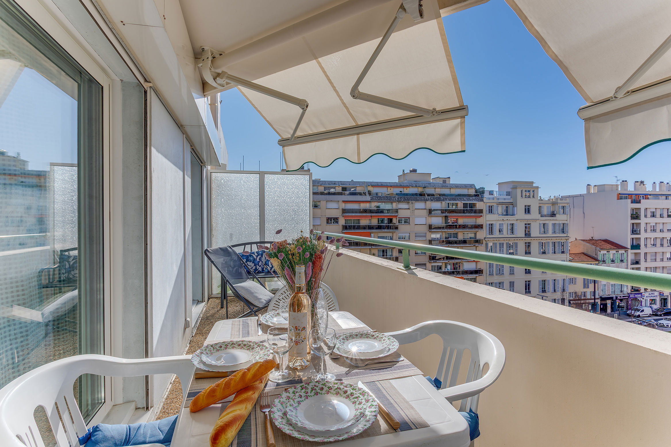 2 room seasonal rental apartment located in Nice in the city center and close to the beach, Promenade des Anglais and shops, Ideally located, it has a bedroom with 1 160cm bed, a bathroom water with shower and WC, a kitchen area equipped with table and chair, and a living room with a double sofa bed and a 10m2 terrace