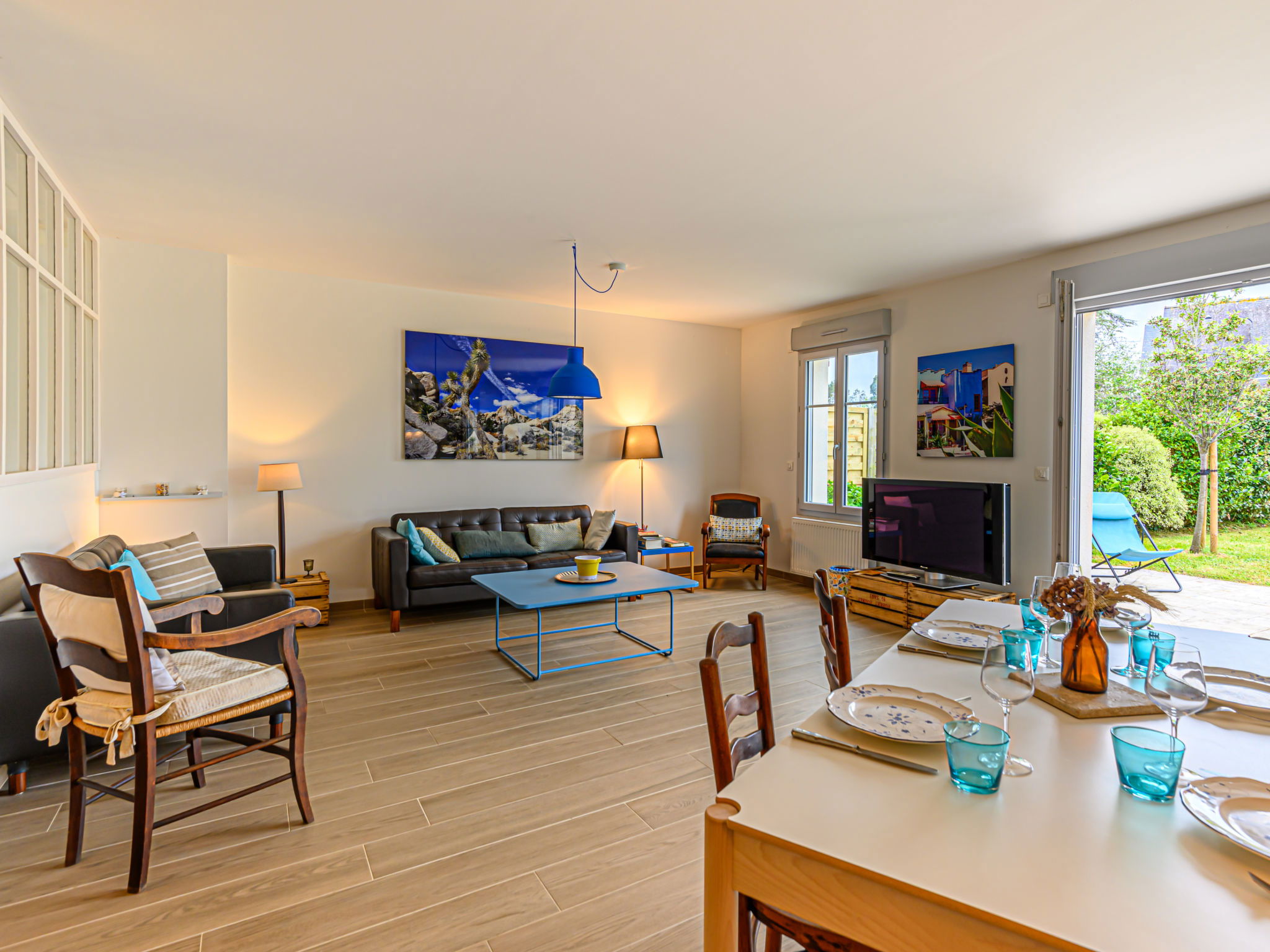 Domaine de Ranguhan: Terraced house "Ranguhan", 2 storeys. In the resort 500 m from the centre of Carnac, 1.5 km from the sea, 1.5 km from the beach, south facing position. Private: garden 150 m2 (fenced), parking at the house. Shop 500 m, grocery 200 m, supermarket 1 km, restaurant 500 m, bakery 500 m, café, sandy beach "Grande plage" 1.5 km. Sports harbour 4 km, golf course (18 hole) 15 km, surf school 7 km, sailing school 2 km, tennis 2 km. Nearby attractions: Les Alignements de Carnac 2 km, La Trinité-sur-mer 4 km, Presqu'île de Quiberon 15 km, Auray - Port de St Goustan 15 km, Vannes 25 km. Hiking paths: Golf du Morbihan 20 km.