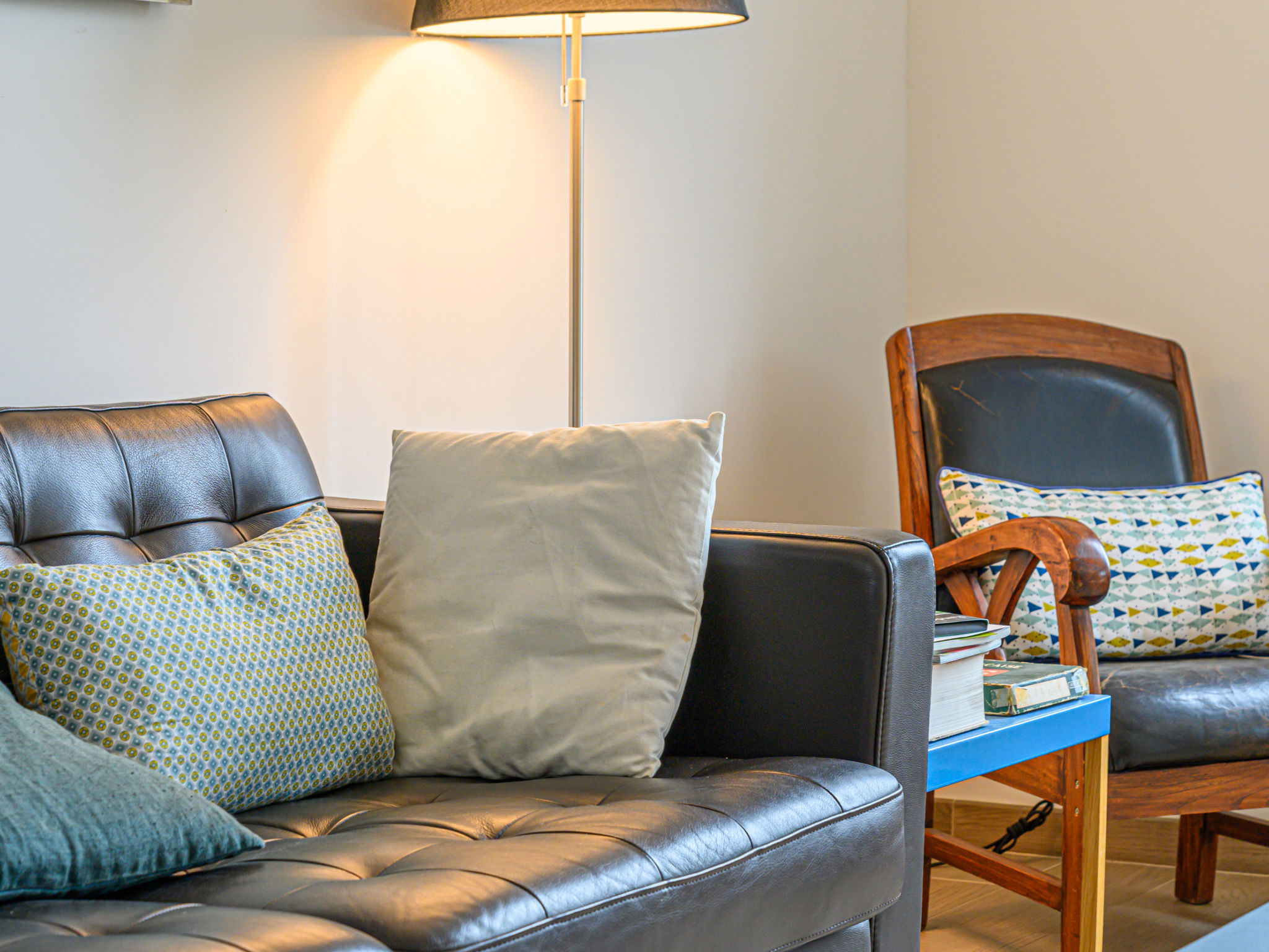 "Ranguhan", 3-room terraced house 80 m2. Living/dining room with TV (flat screen). Exit to the terrace. Office. Open kitchen (dishwasher, 3 induction hot plates, toaster, microwave, electric coffee machine). Shower/WC. Gas heating. Upper floor: 1 room with 1 french bed (1 x 160 cm, length 200 cm). 1 room with 1 bed (90 cm, length 190 cm), 1 pull-out bed (1 pers. 2 x 90 cm, length 190 cm). Bathroom, sep. WC, double hand-basin. Natural stone floors. Terrace 25 m2, west facing position. Terrace furniture. Facilities: washing machine, hair dryer. Internet (WiFi, extra). Parking at the house. Please note: smoke alarm. Offer by a private individual according to Art. 155, IV of CGI. 56034000633B3