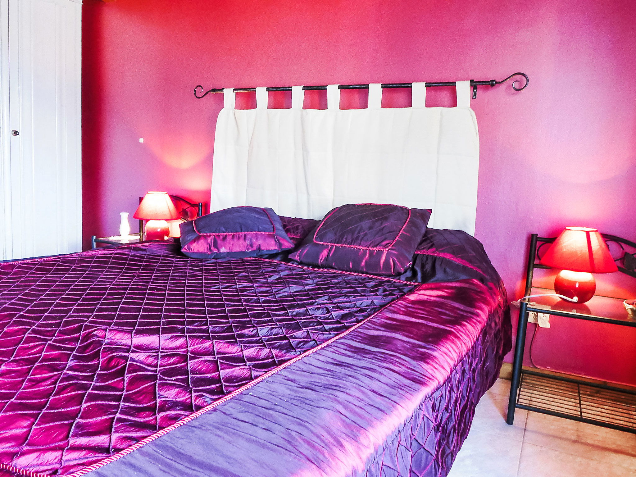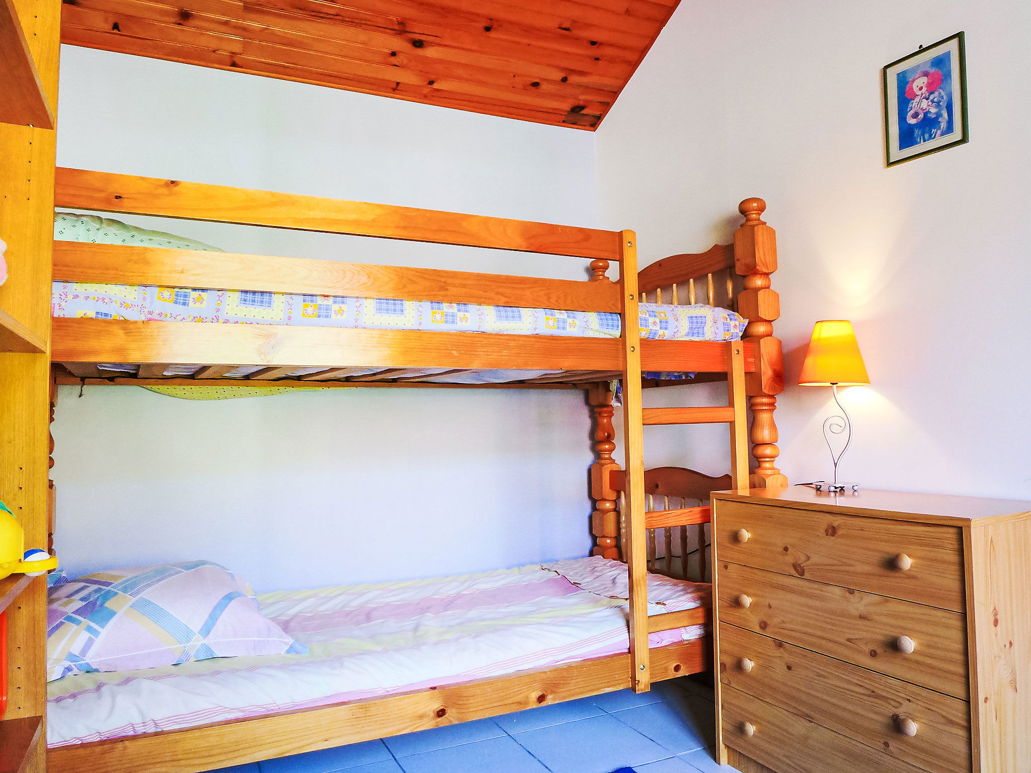 4-room house 110 m2. Object suitable for 4 adults + 2 children. Beautiful and rustic furnishings: open living/dining room with dining table and TV (flat screen), radio, CD-player, hi-fi system and DVD. 1 room with 1 french bed (140 cm), bathroom and hand-basin. 1 room with 2 beds (90 cm). 1 small children's room with 1 x 2 bunk beds (80 cm). Exit to the garden. Luggage room. Open kitchen (4 hot plates, oven, dishwasher, microwave). Shower, sep. WC. Electric heating. Terrace 25 m2, roofed, garden, lawn. Terrace furniture, barbecue, deck chairs. Beautiful view of the swimming pool, the garden and the countryside. Facilities: washing machine, children's high chair, baby cot for up to 3 year olds. Internet (WiFi, free). Parking (3 cars). Suitable for families. Maximum 1 pet/ dog allowed.