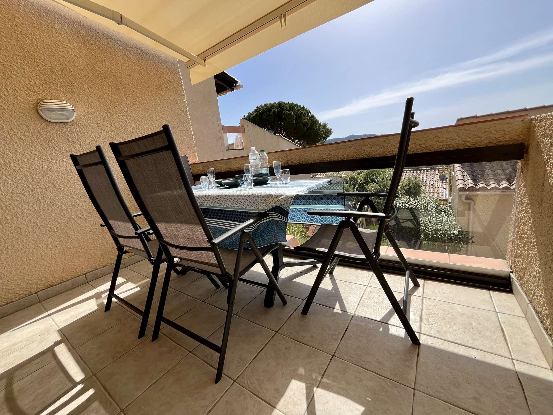 This apartment includes a living room with equipped kitchen, a living room with sofa bed for 2 people, a bedroom with a 140cm double bed, a shower room with toilet, a terrace with an electric awning.