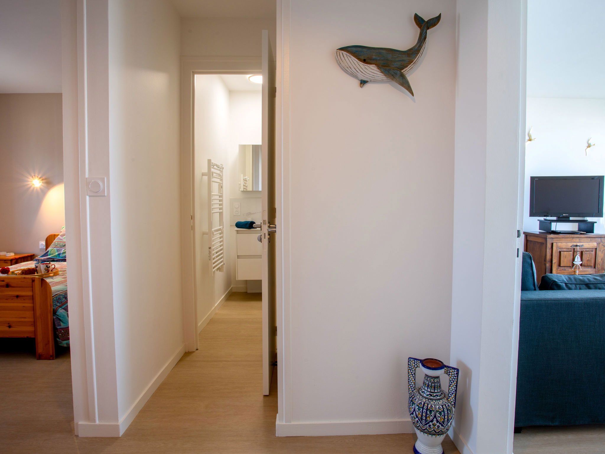 Residence "Le Bellevue", 4 storeys, built in 1970. In the district of de l'Océan, in a sunny position, excellent location: right in the centre but still quiet, 100 m from the sea, 100 m from the beach, west facing position. Parking (limited number of spaces). Shop 500 m, supermarket 600 m, restaurant, bakery, bicycle rental 500 m, 5 minute walk to the centre, bus stop "Parc du Pointeau" 100 m, railway station "Saint Nazaire" 13 km, sandy beach "Grande Plage de l'Océan" 100 m, outdoor swimming pool 2 km, thermal baths "Casino JOA Hôtel Spa et Thalasso" 500 m. Marina 50 m, surf school, sailing school. Nearby attractions: Base nautique 50 m, Serpent d'Océan 6 km, Visite chantiers navals Saint Nazaire 13 km, Pornic 17 km, La Baule 29 km, Les Machines de l'Ile de Nantes 66 km. Well-known lakes can easily be reached: Lac de Saint Viaud 20 km. Please note: no lift. Baby equipment on request (extra). The keys‘ handover takes place by the agency in Pornic, 17 km.