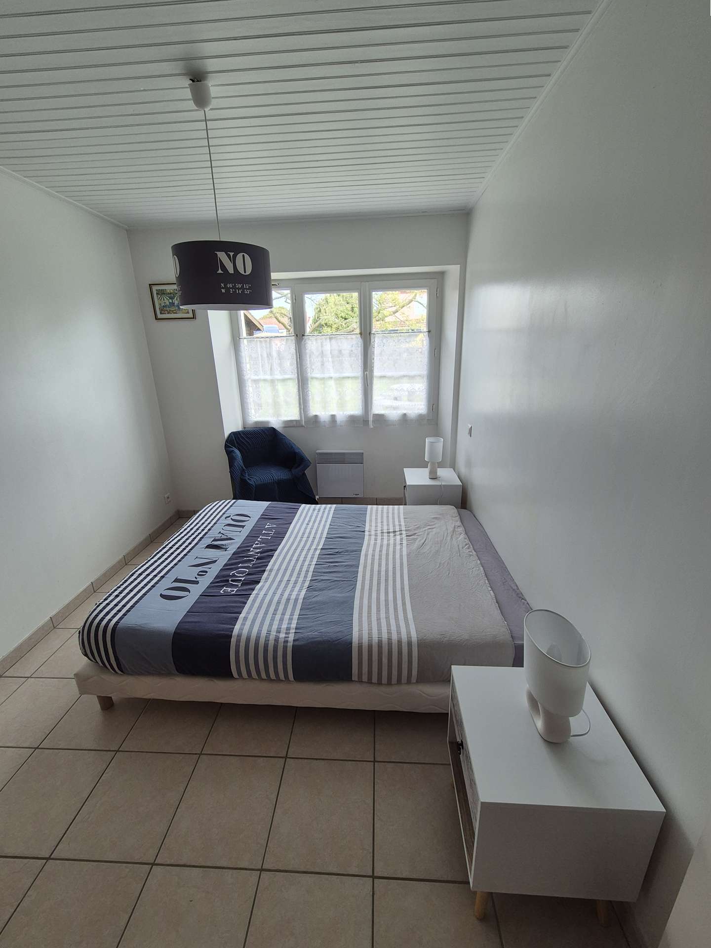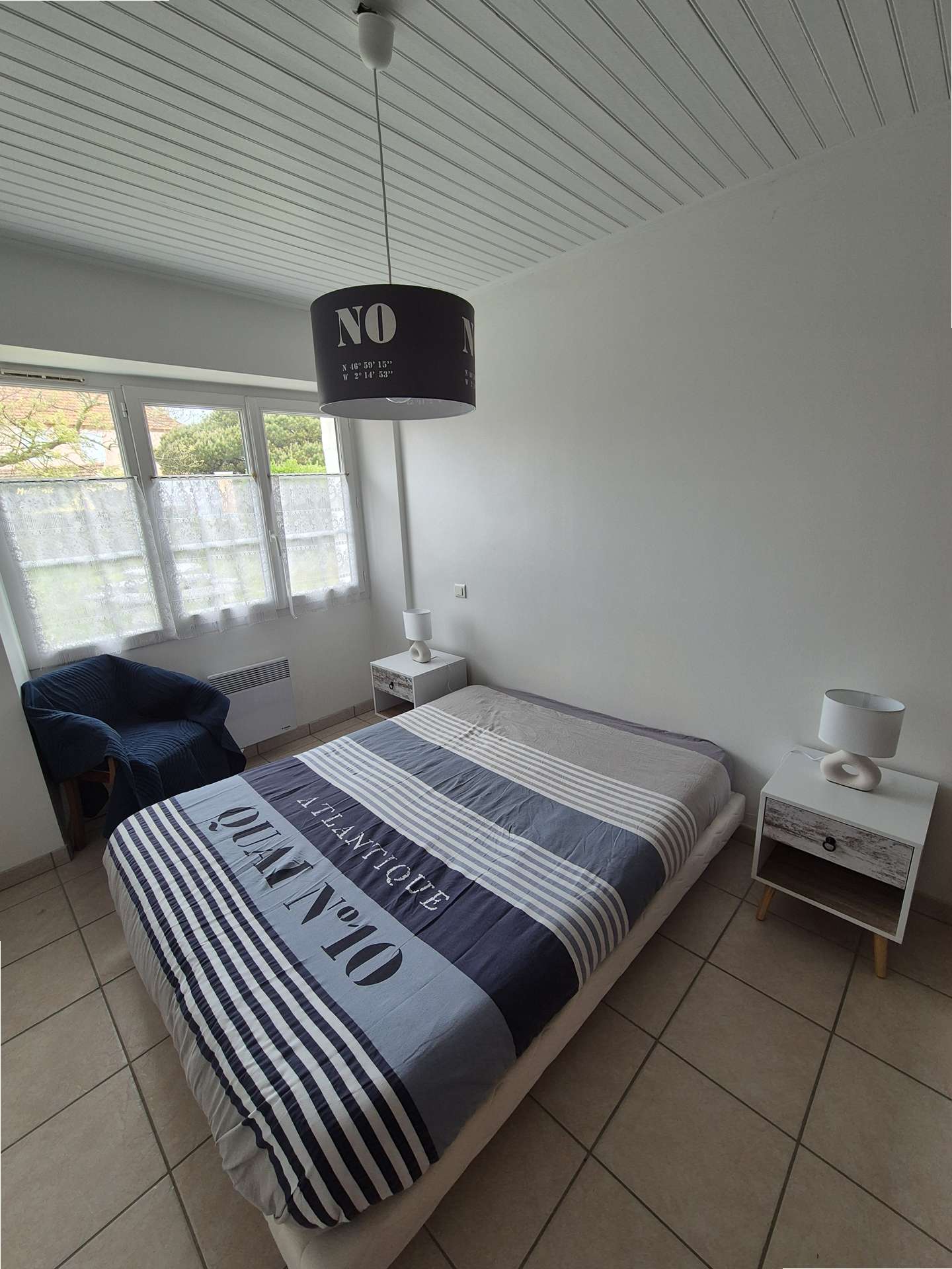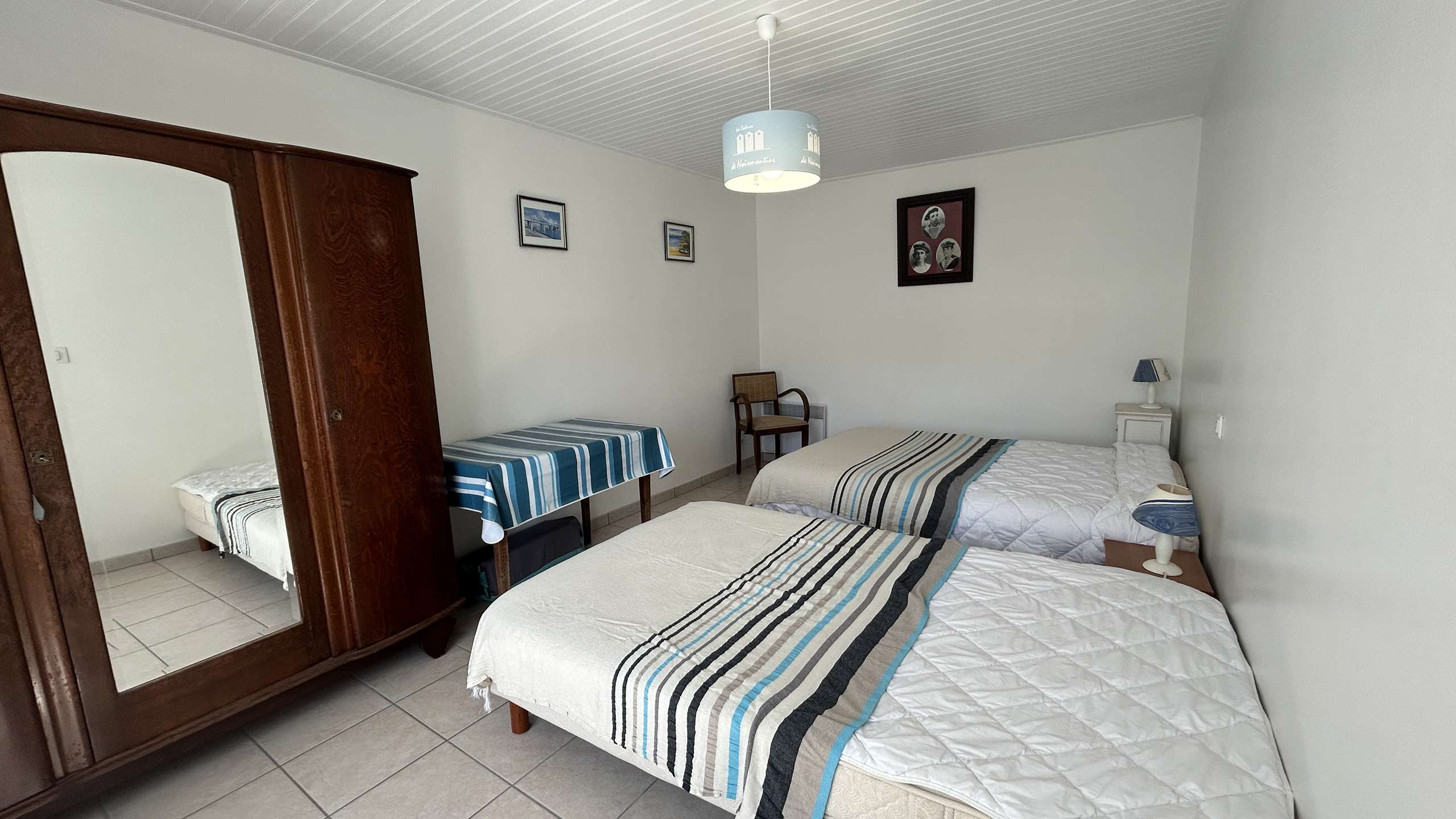 This country house located in a quiet area and 300 m from the beach includes an entrance hall, an equipped kitchen, a living room with television, a large bedroom with a double bed and a 120 cm bed, another bedroom with a double bed, a bathroom water, a toilet.