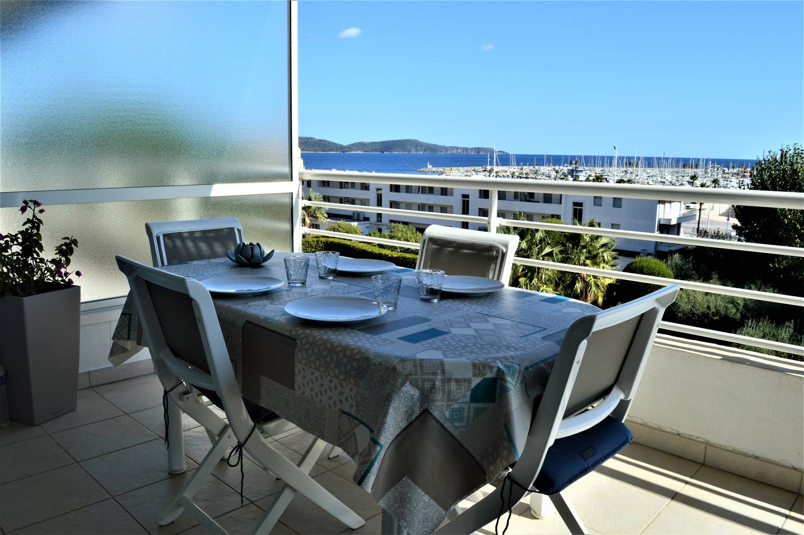 This air-conditioned apartment features a beautiful living room opening onto a large terrace with sea and harbor views, a fully equipped kitchen, a bedroom with a 160 cm bed, a second bedroom with two single beds, a bathroom and separate toilet.